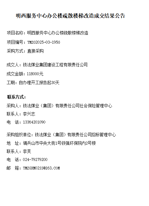 明西服务中心办公楼疏散楼梯改造成交结果公告