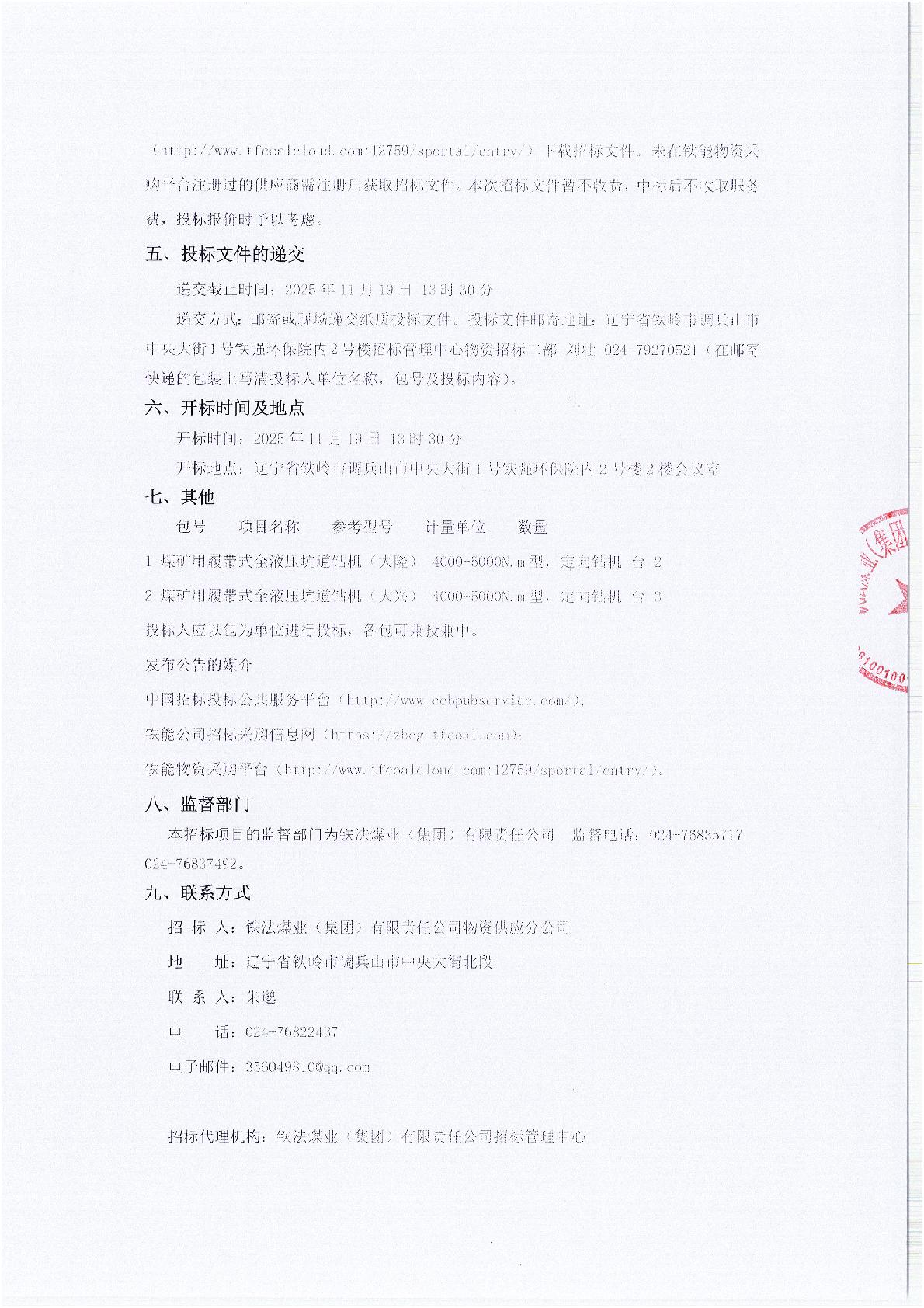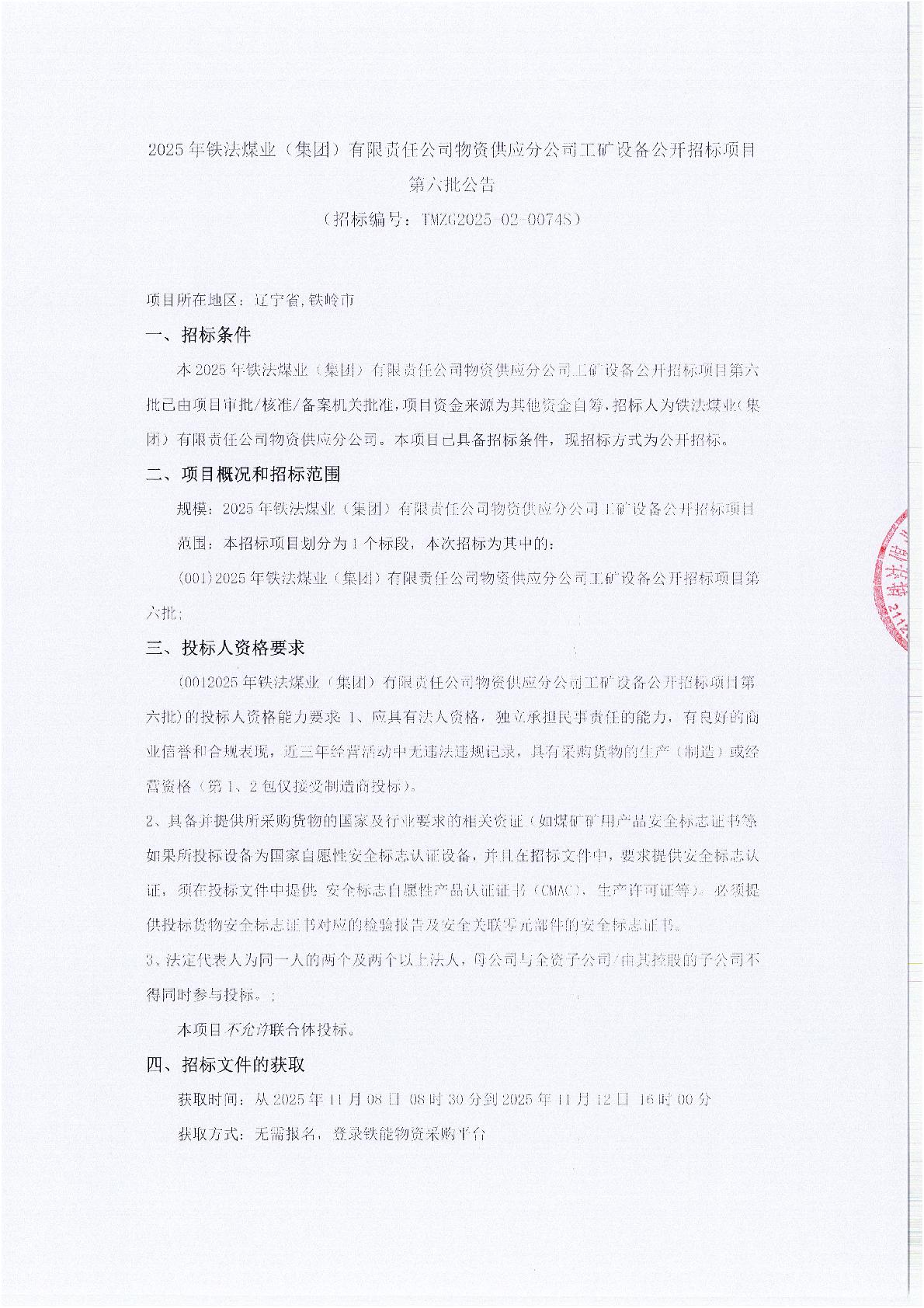 2025年11月19日工矿设备公开招标项目公告(0074S)