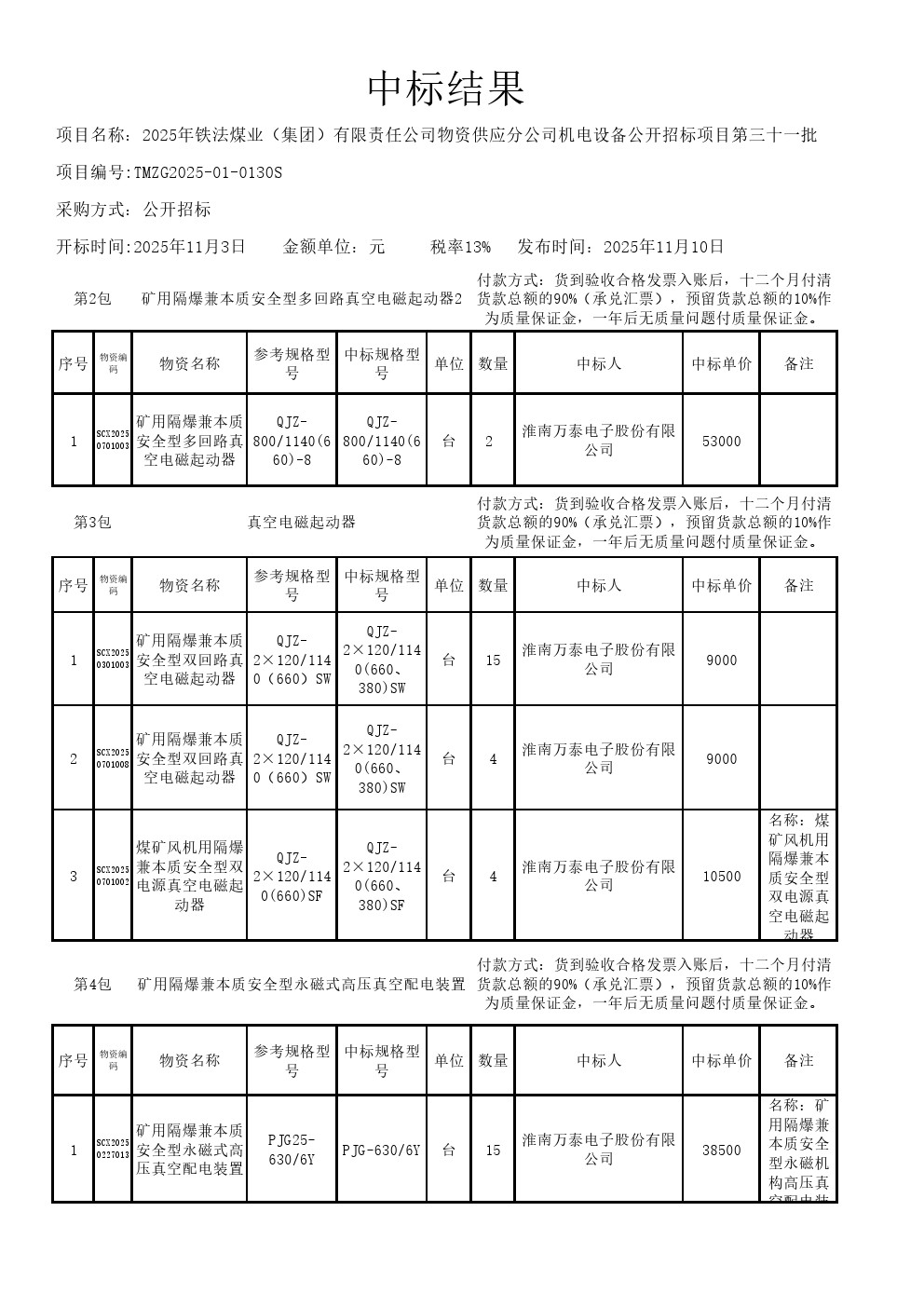 2025年11月3日机电设备公开招标中标结果公示(0130S)