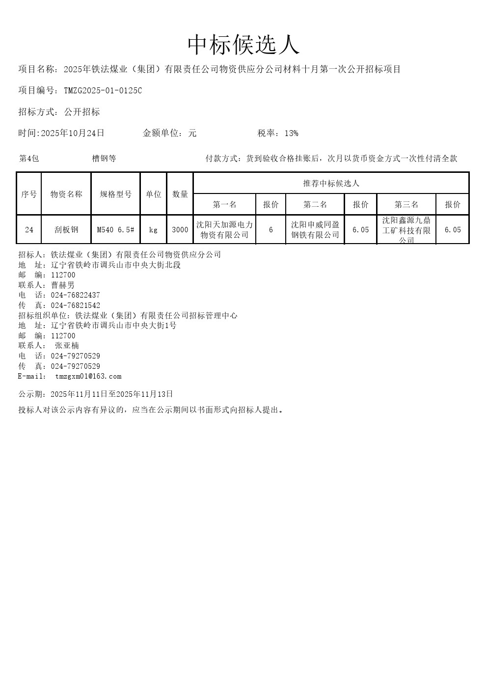 2025年10月24日材料公开招标中标候选人公示(0125C)-3