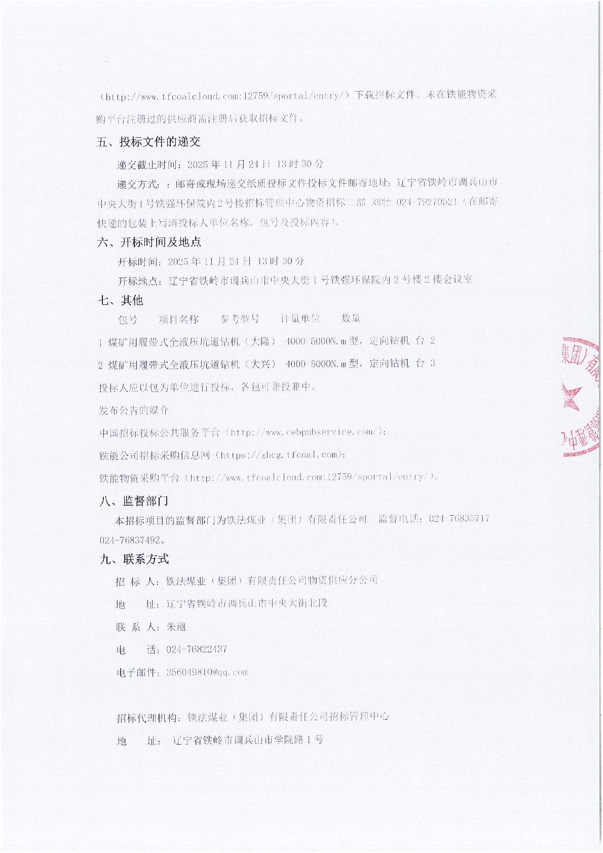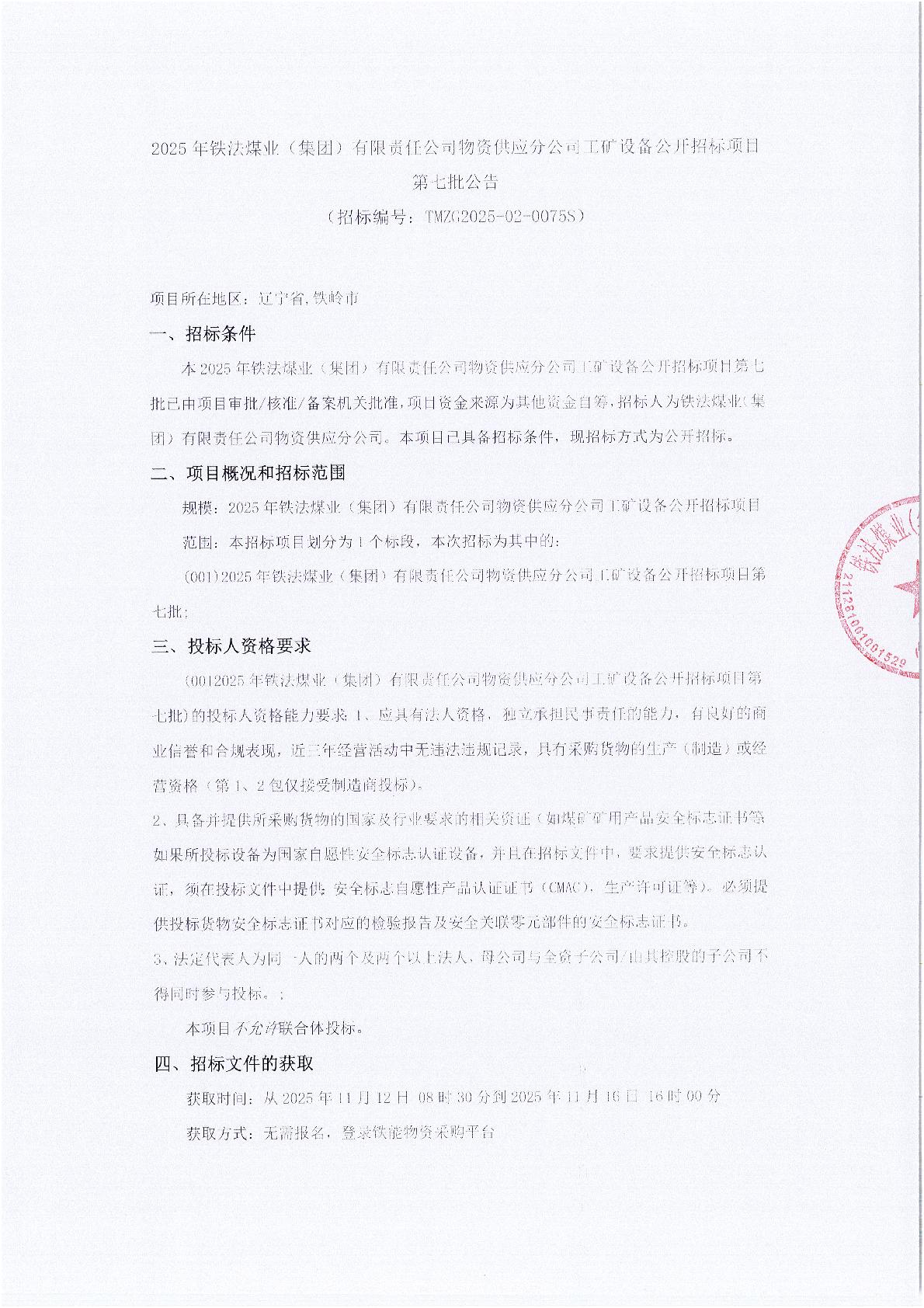 2025年11月24日工矿设备公开招标项目公告(0075S)