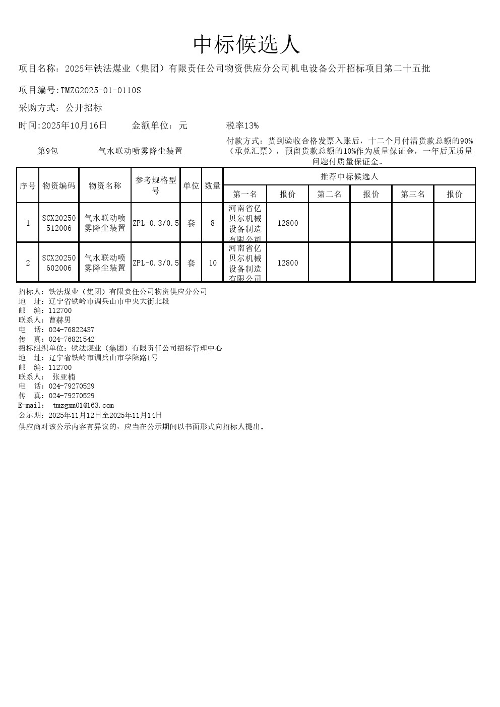 2025年10月16日机电设备公开招标中标候选人公示(0110S)-2