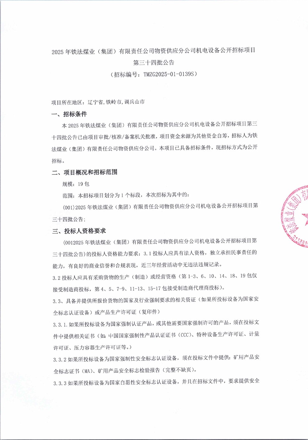 2025年11月25日设备第三十四批公开招标公告(0139S)