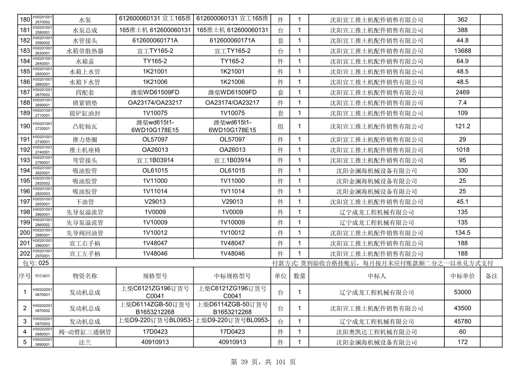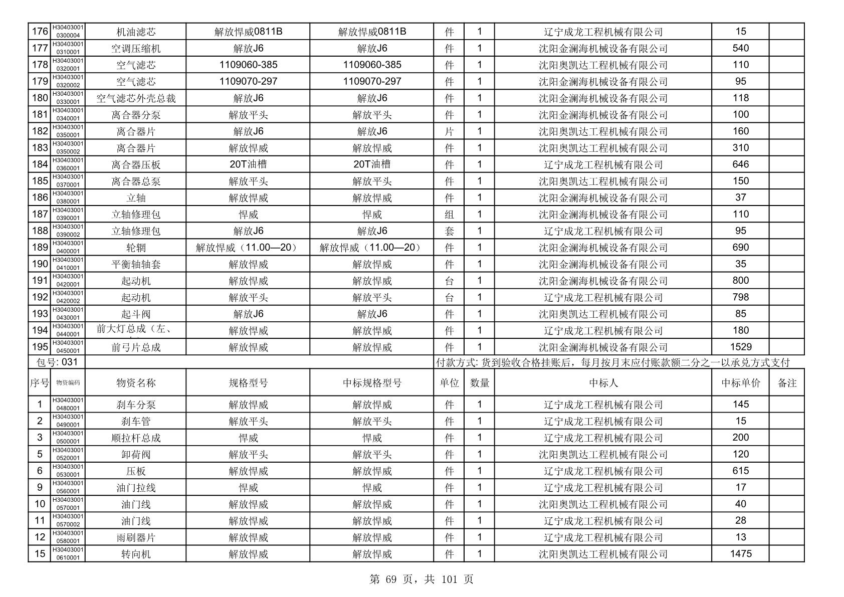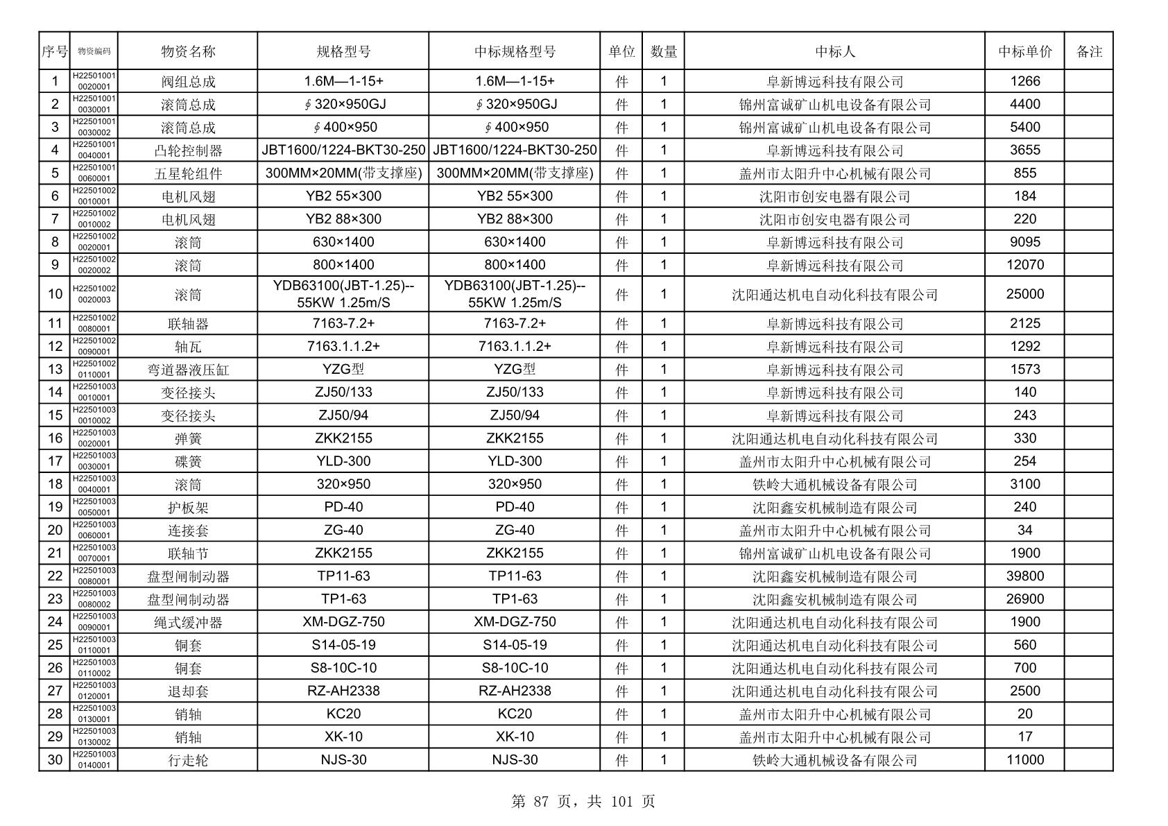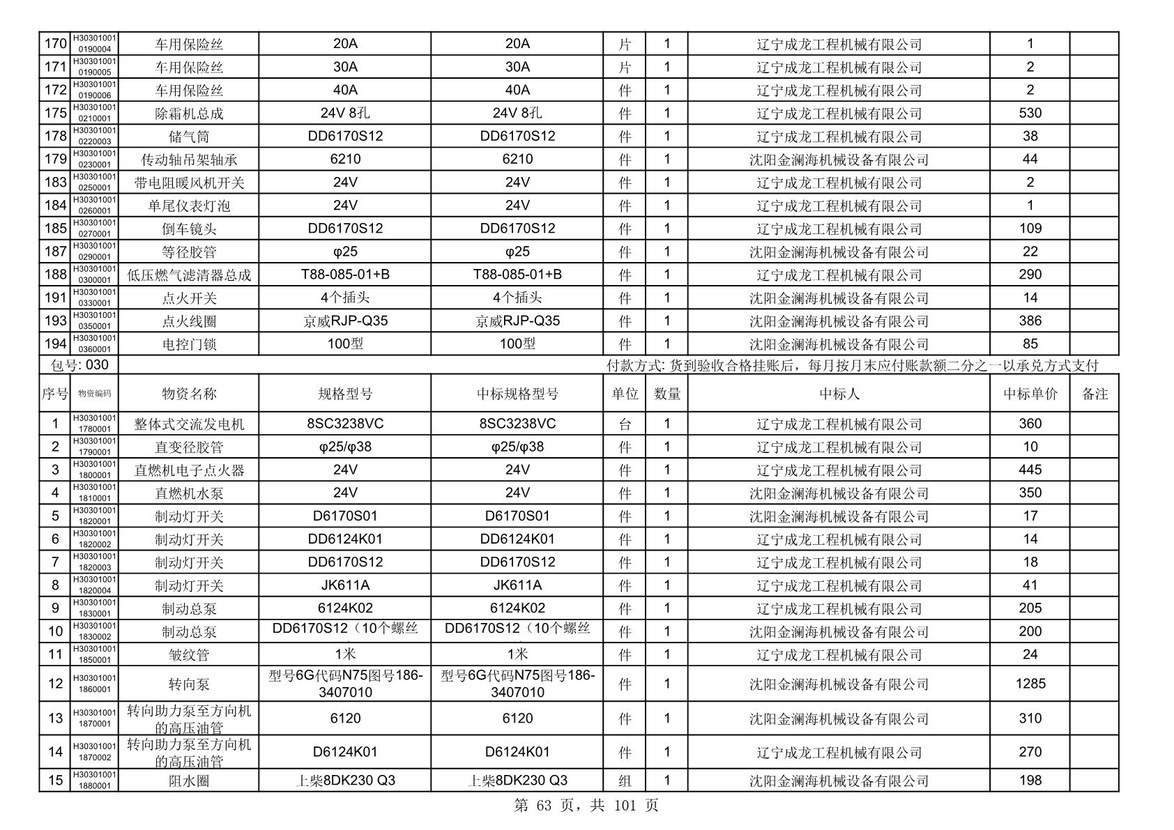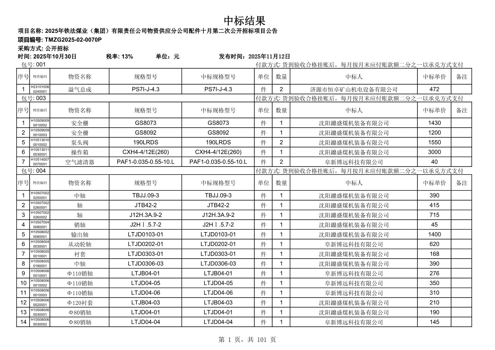 2025年10月30日配件中标结果公告(0070P)