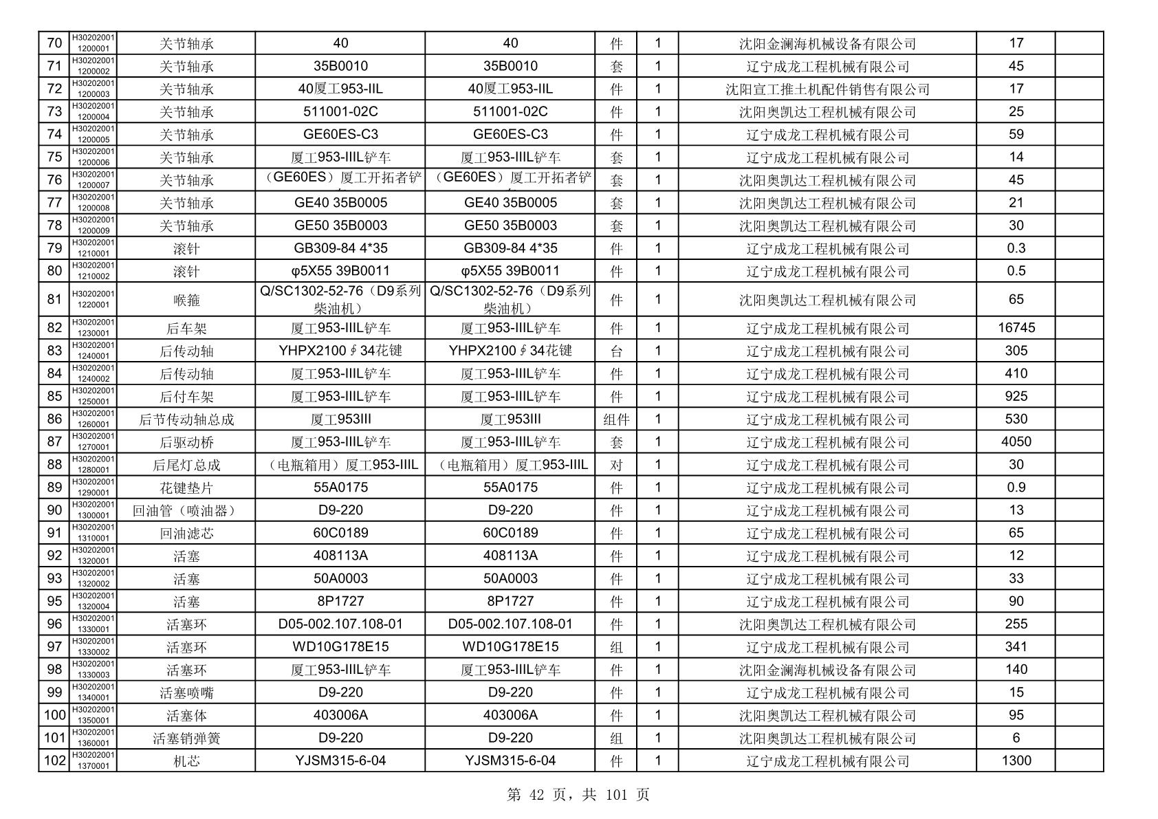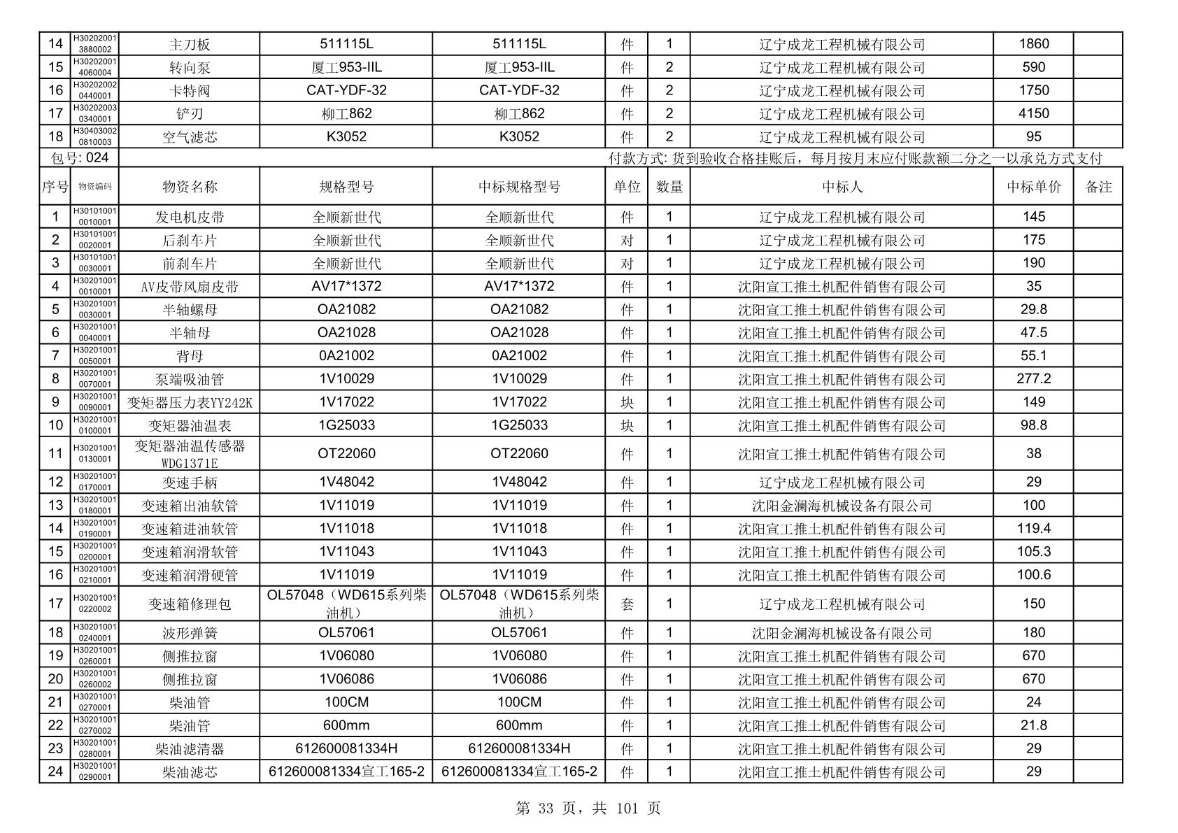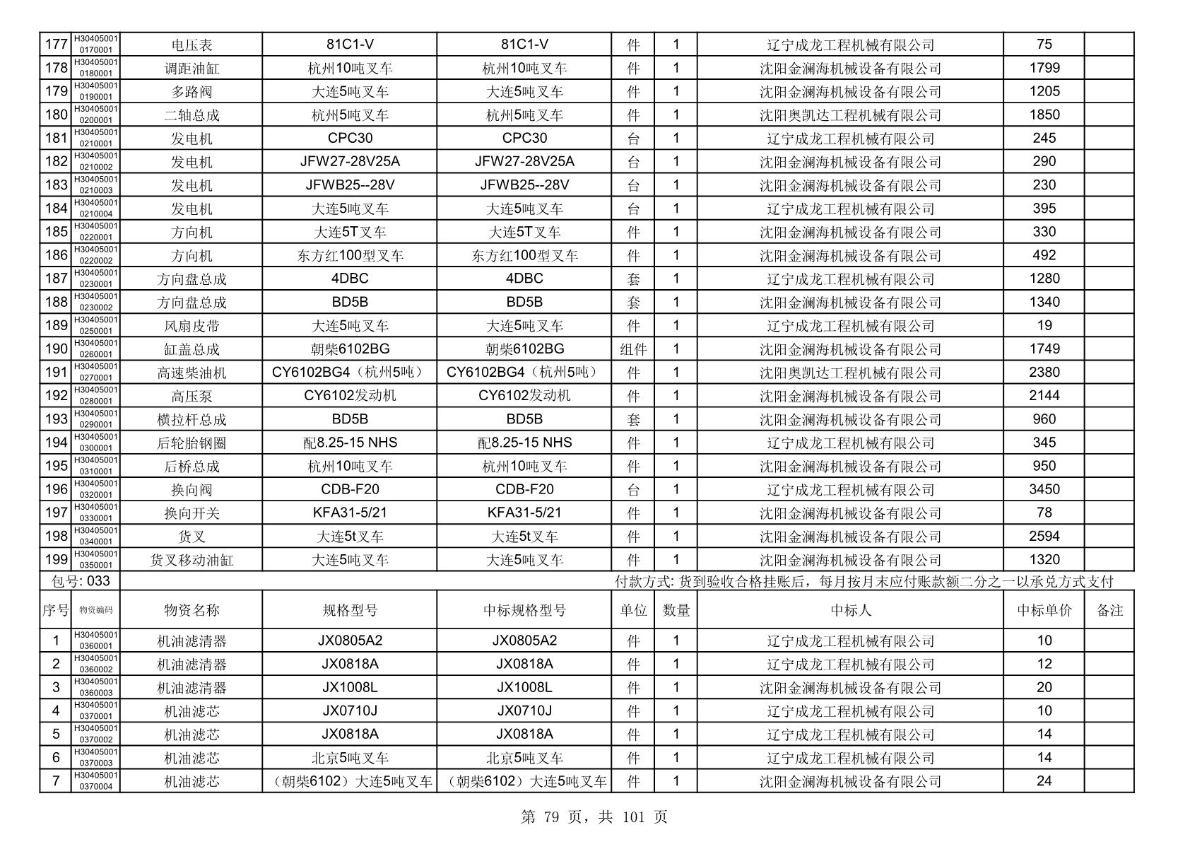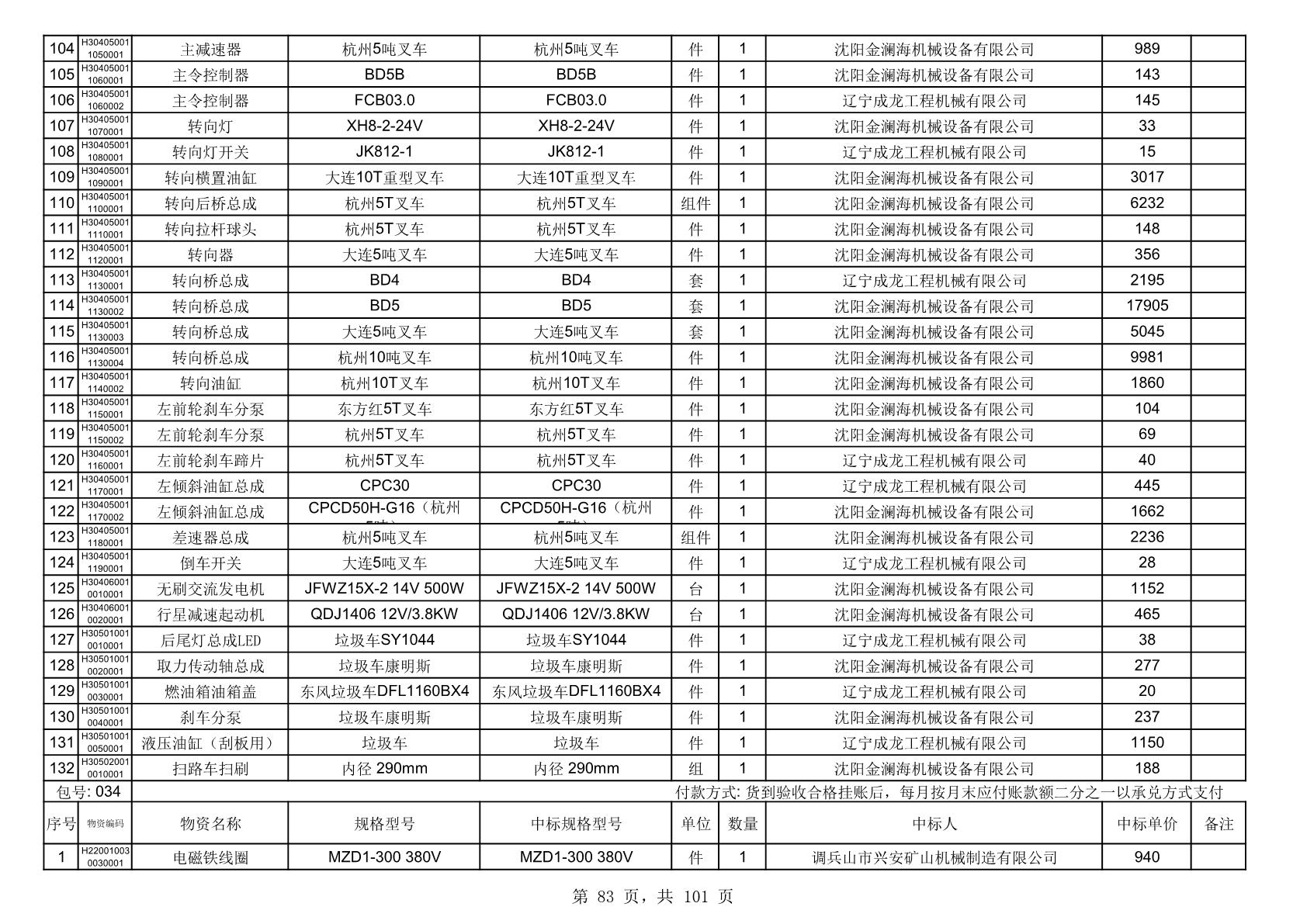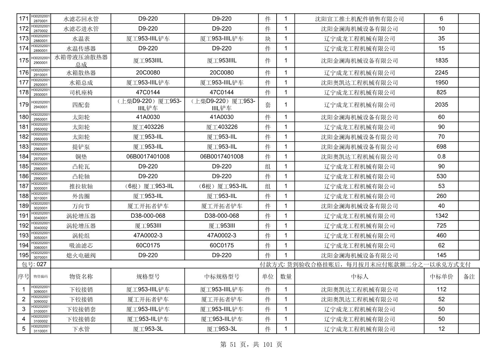 2025年10月30日配件中标结果公告(0070P)