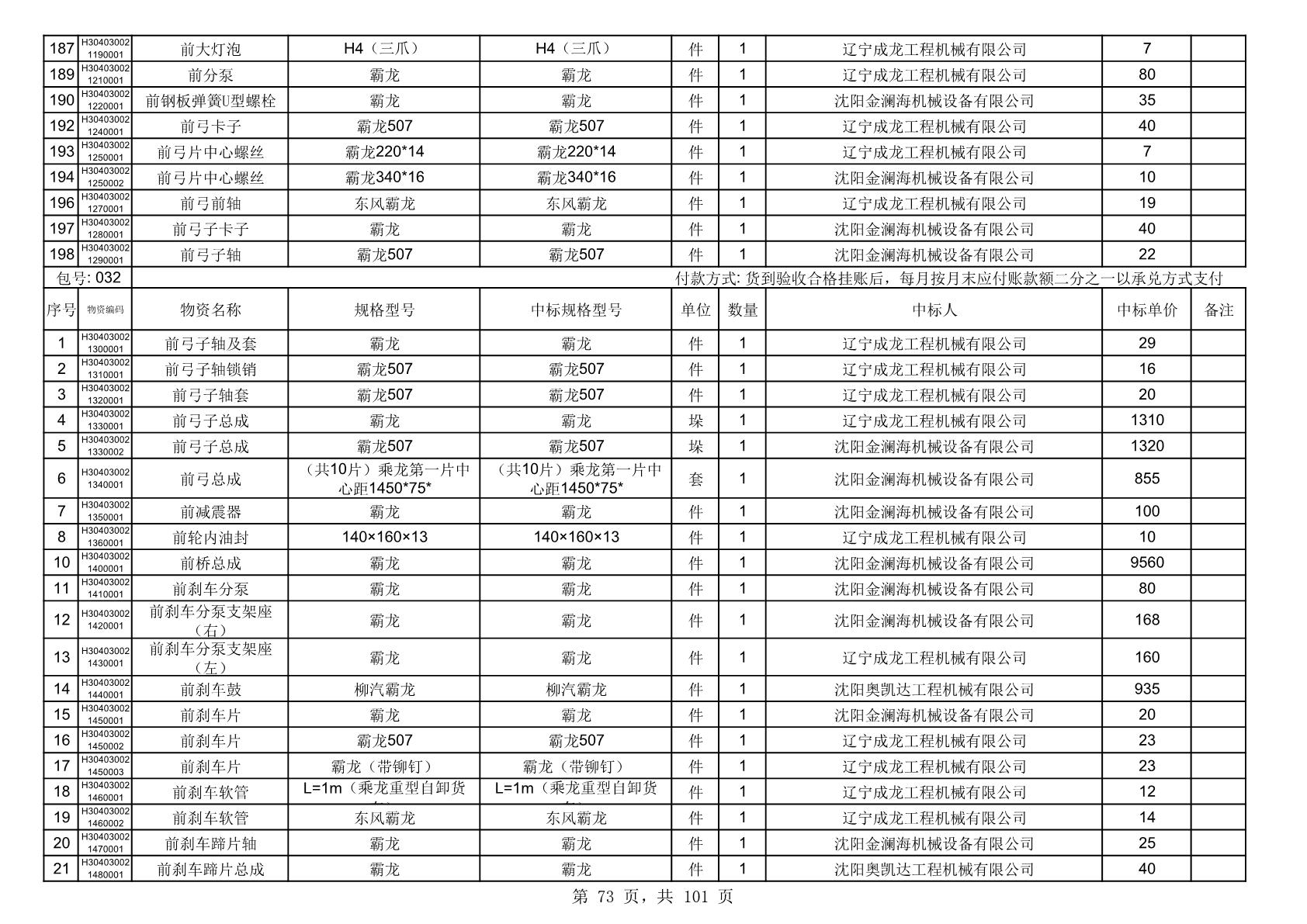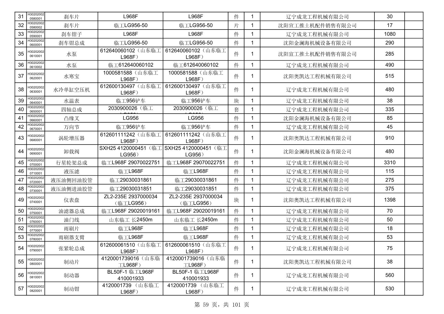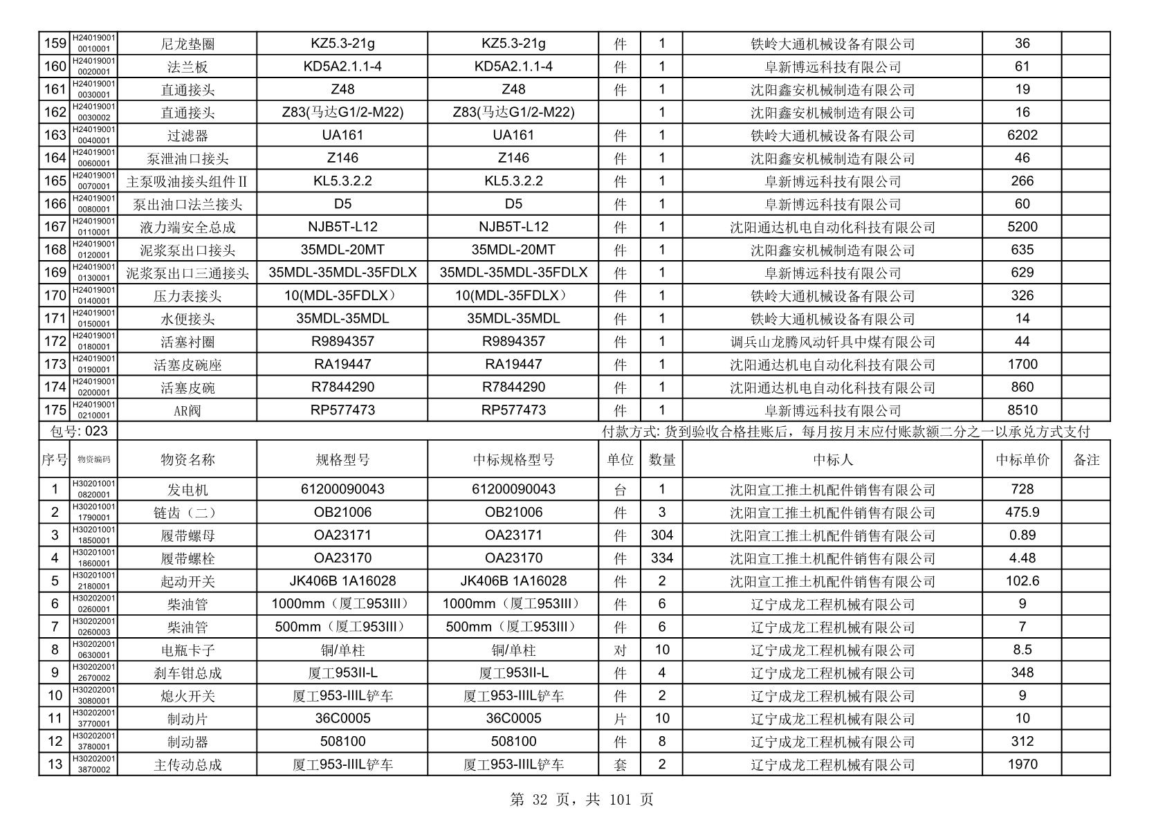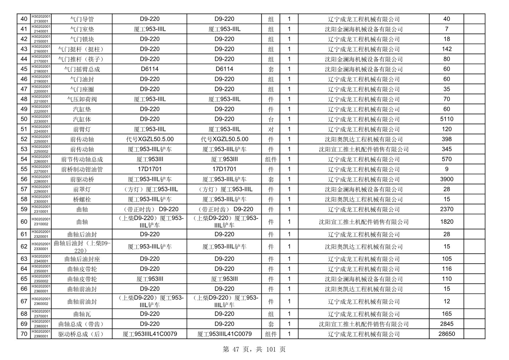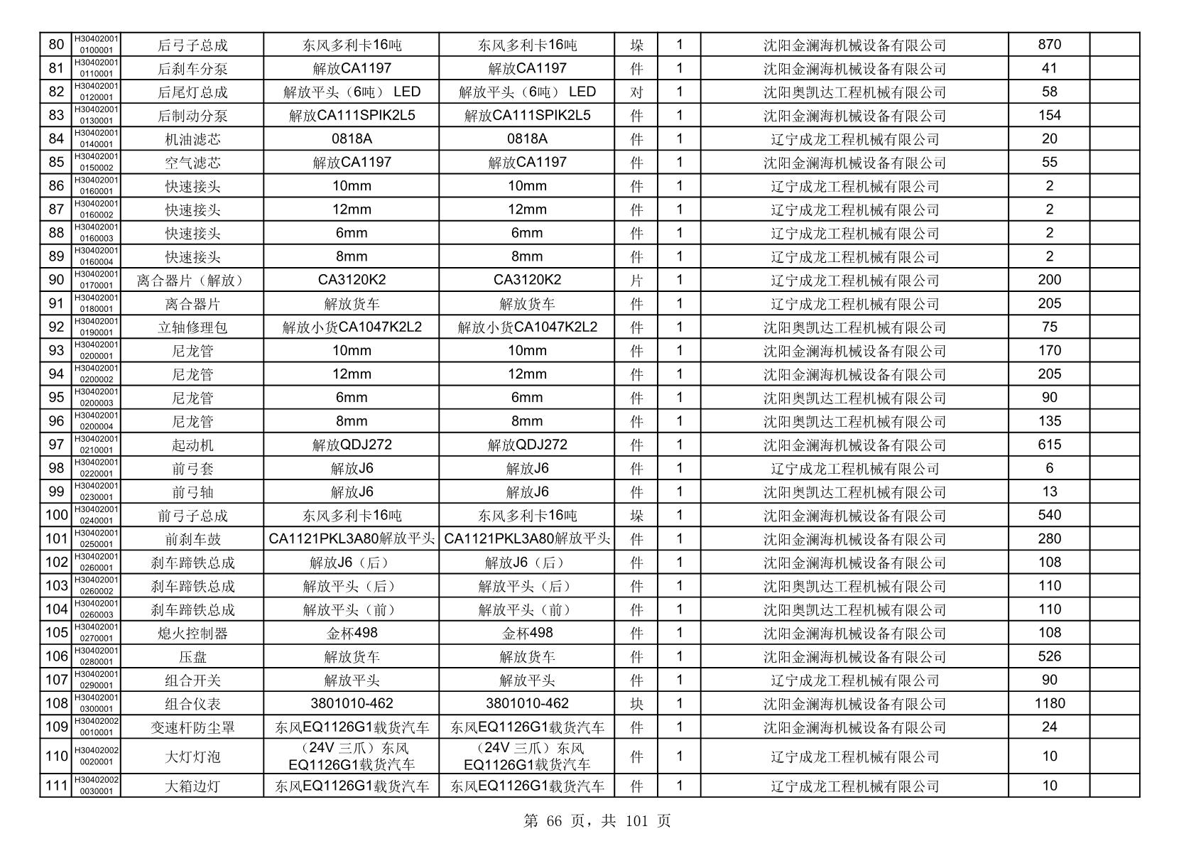 2025年10月30日配件中标结果公告(0070P)