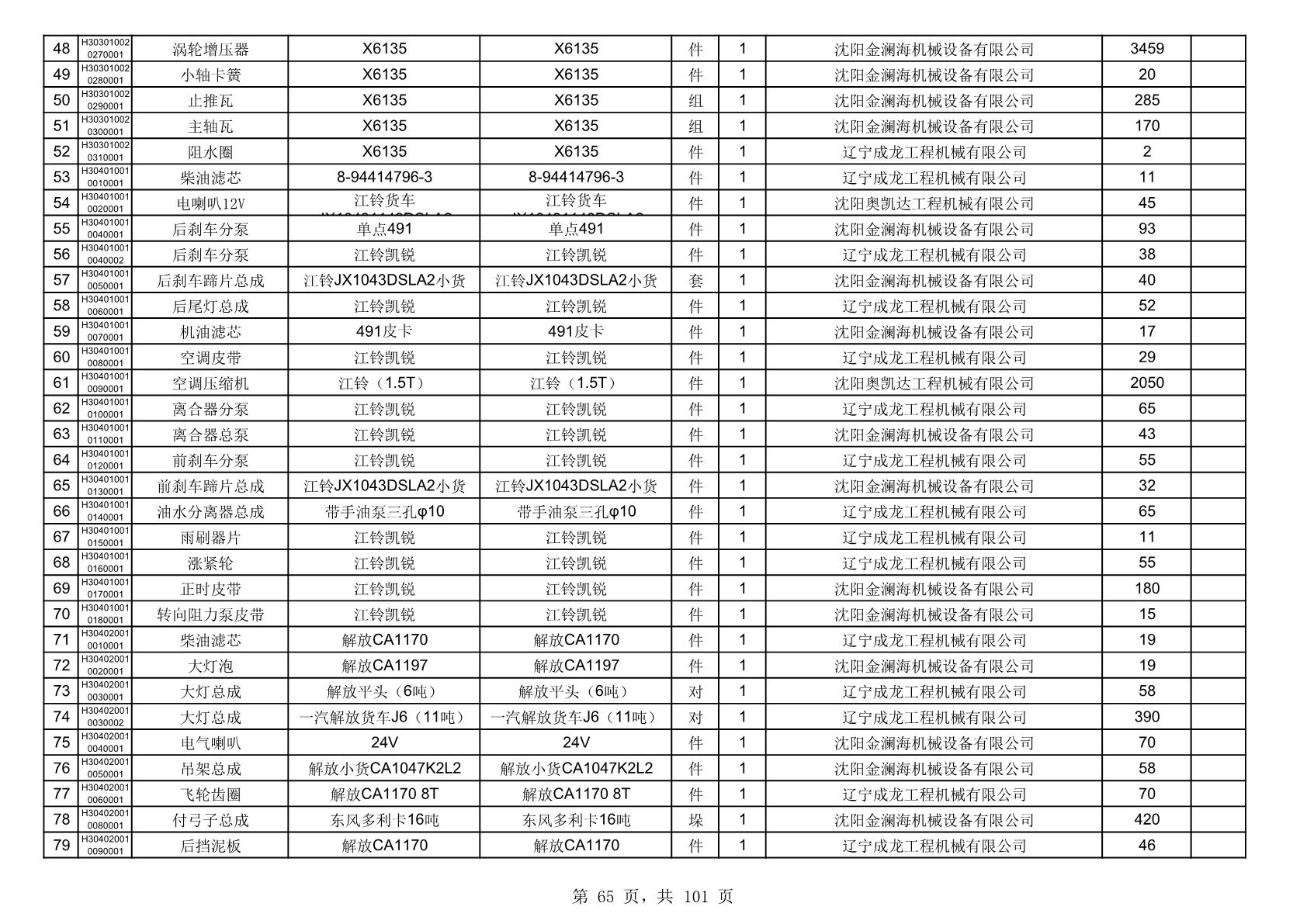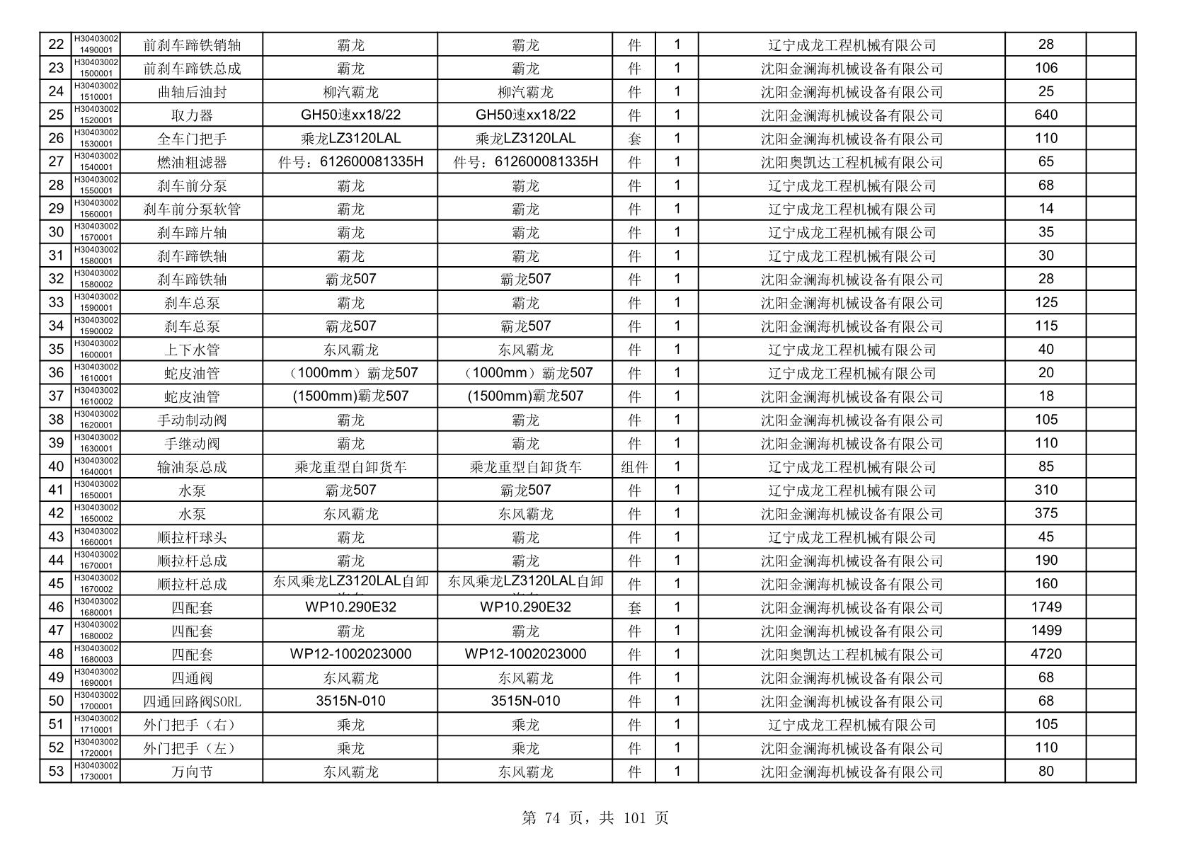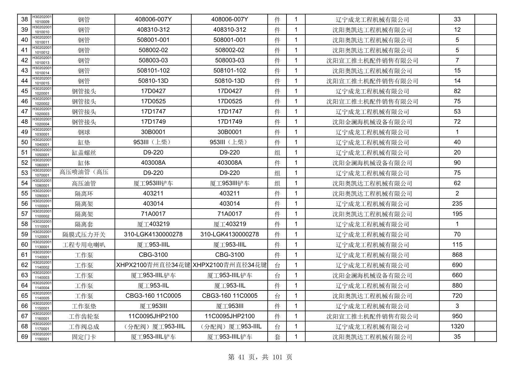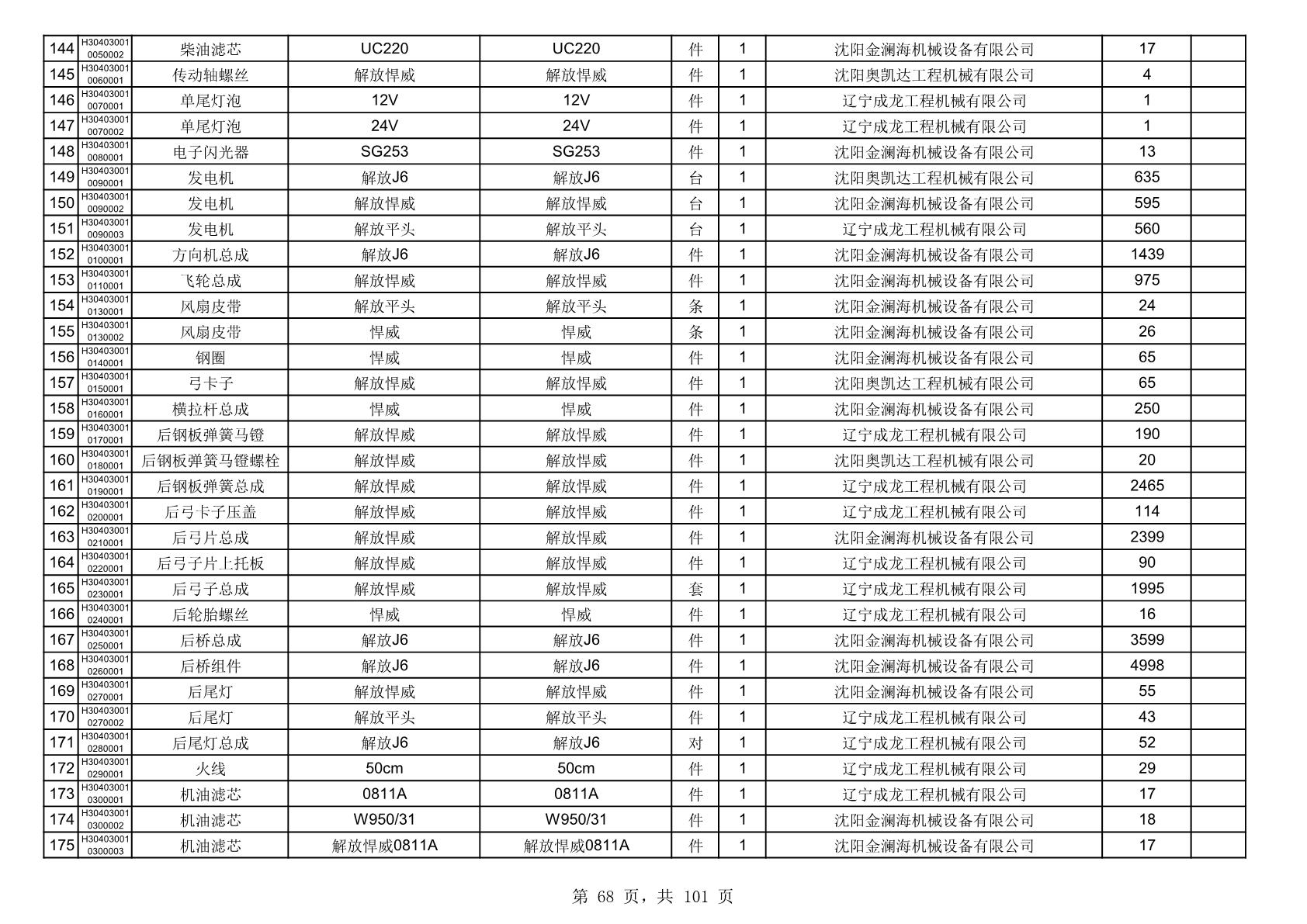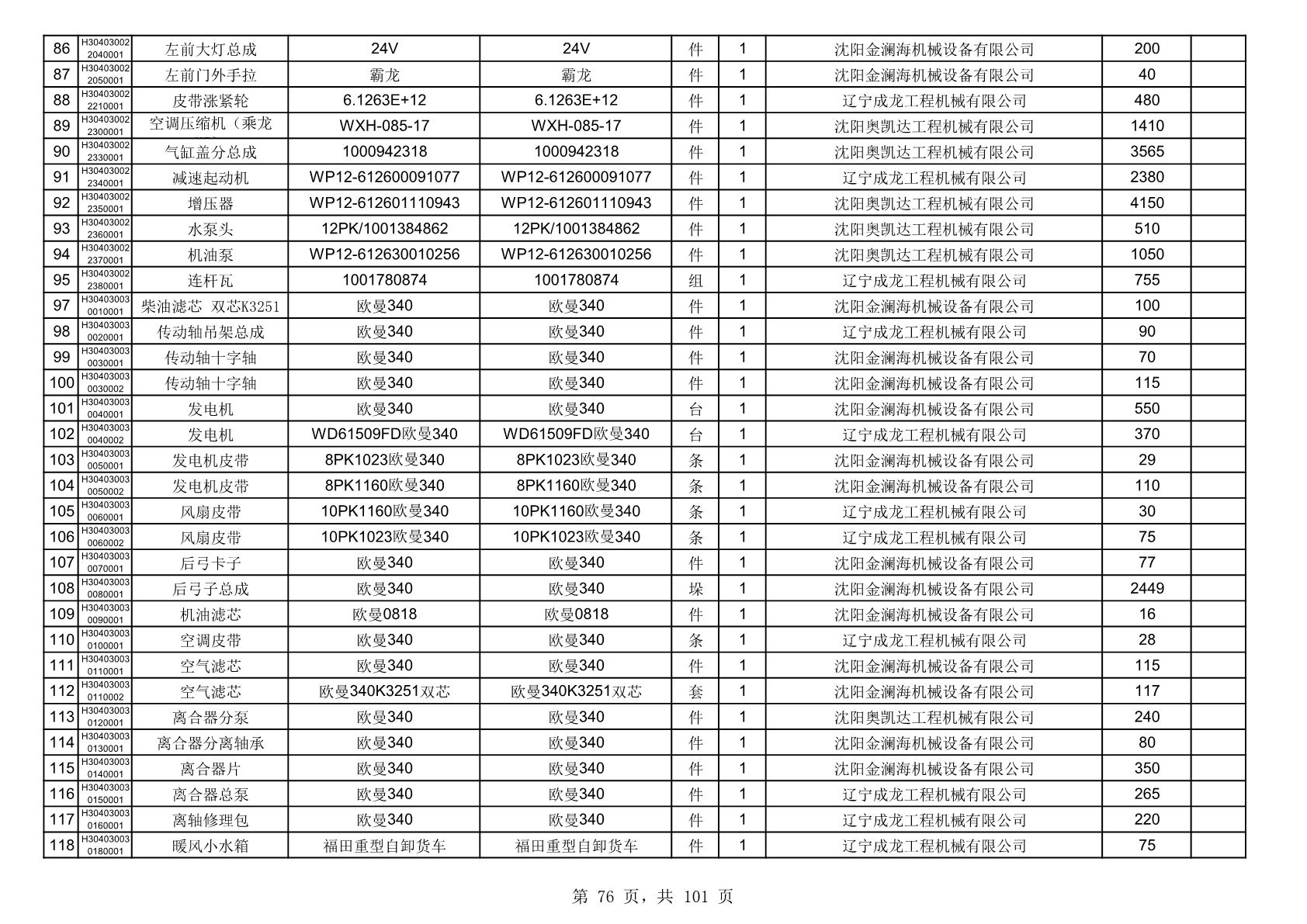 2025年10月30日配件中标结果公告(0070P)