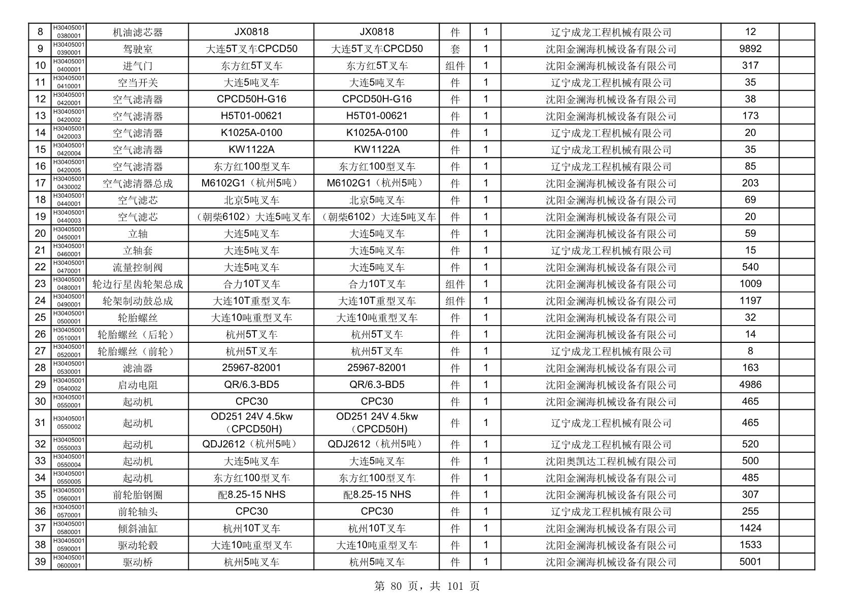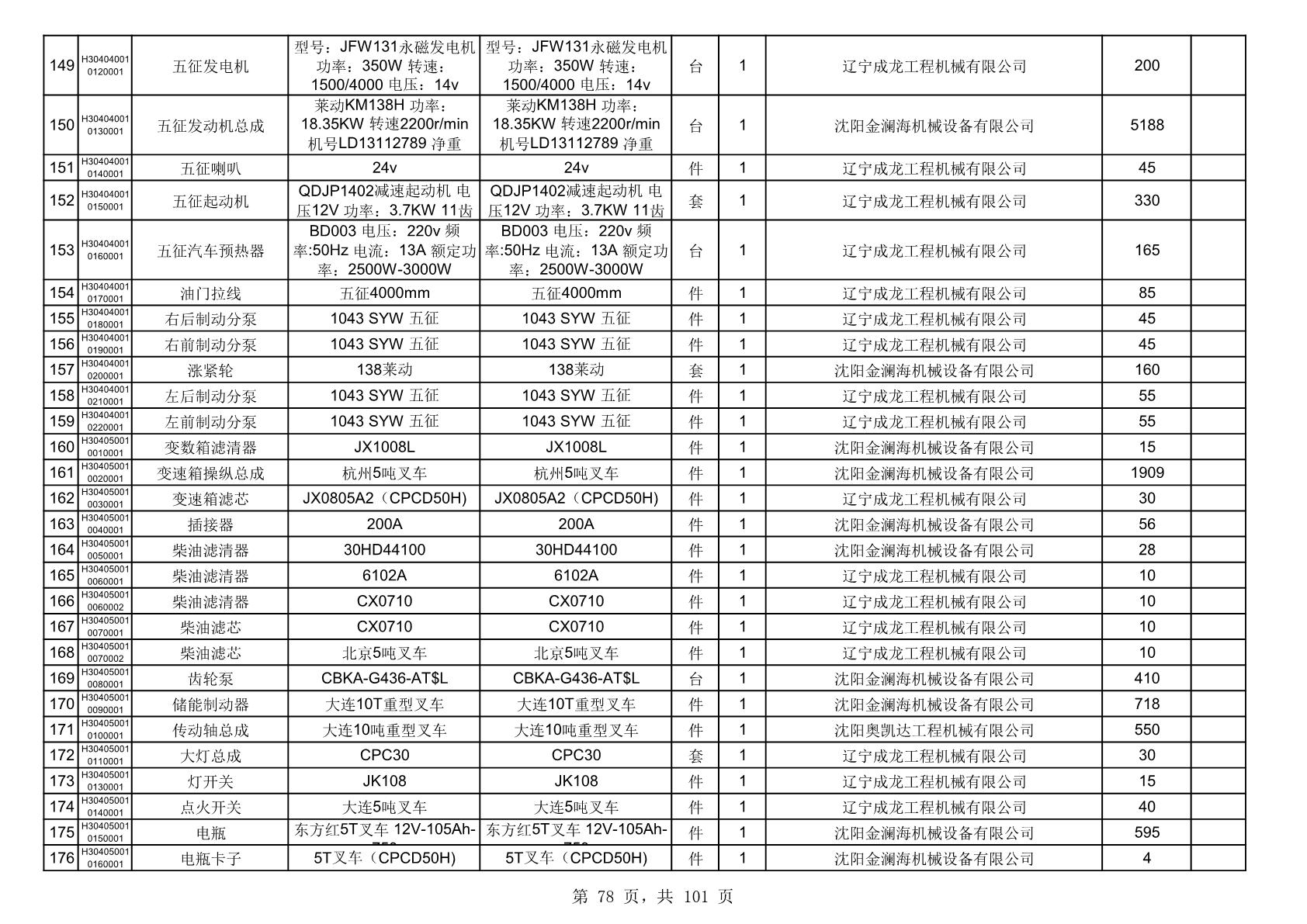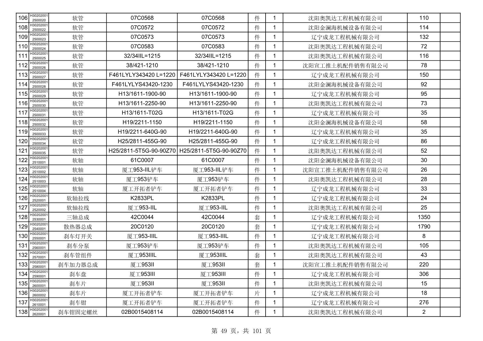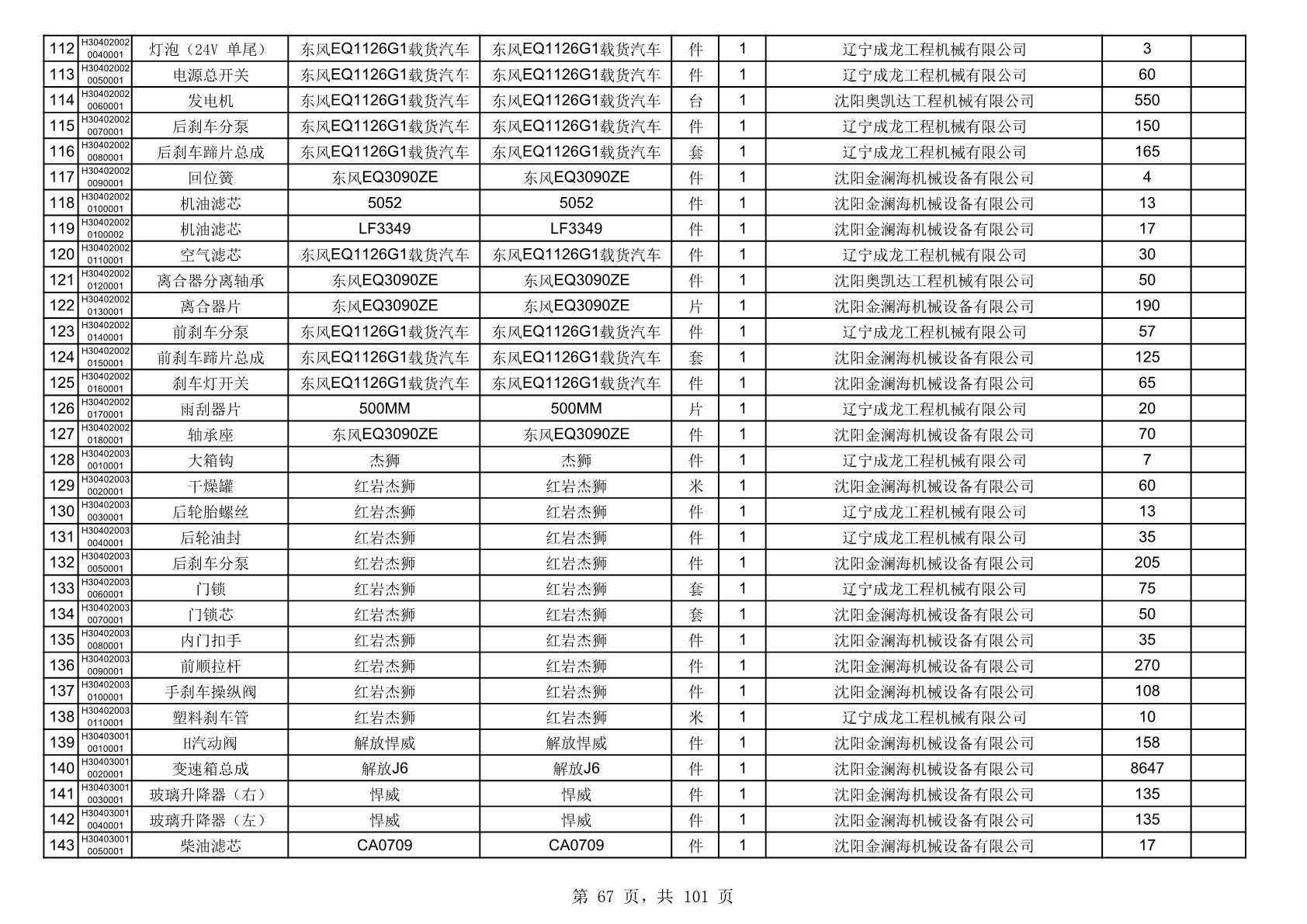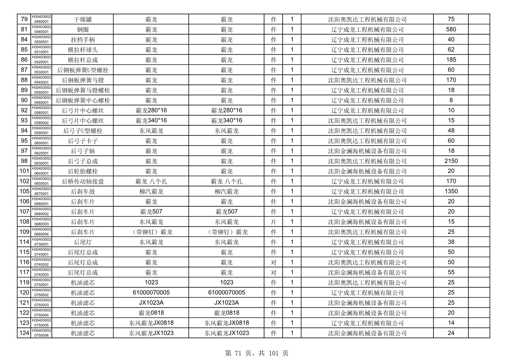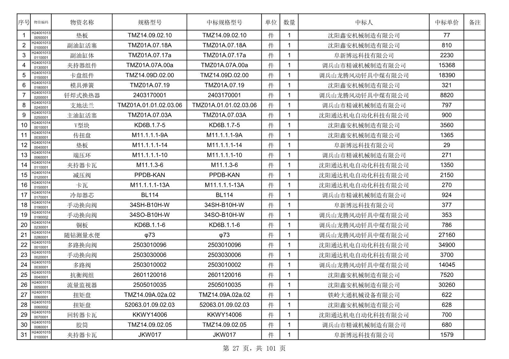 2025年10月30日配件中标结果公告(0070P)