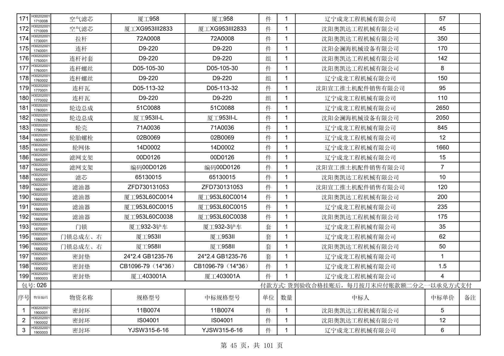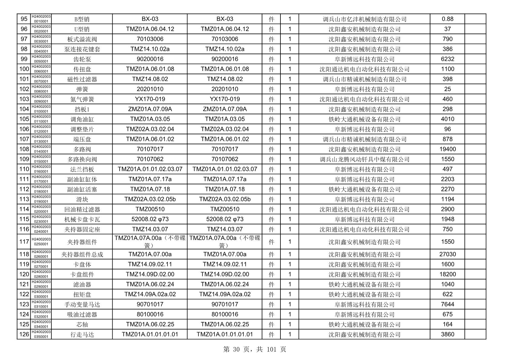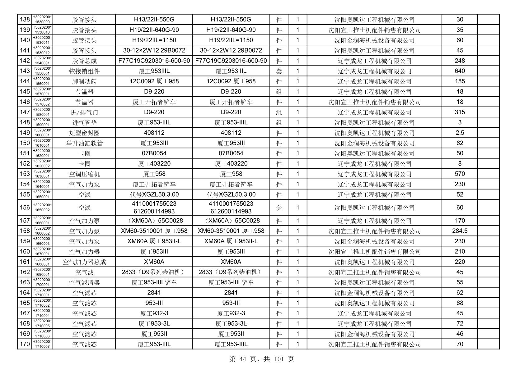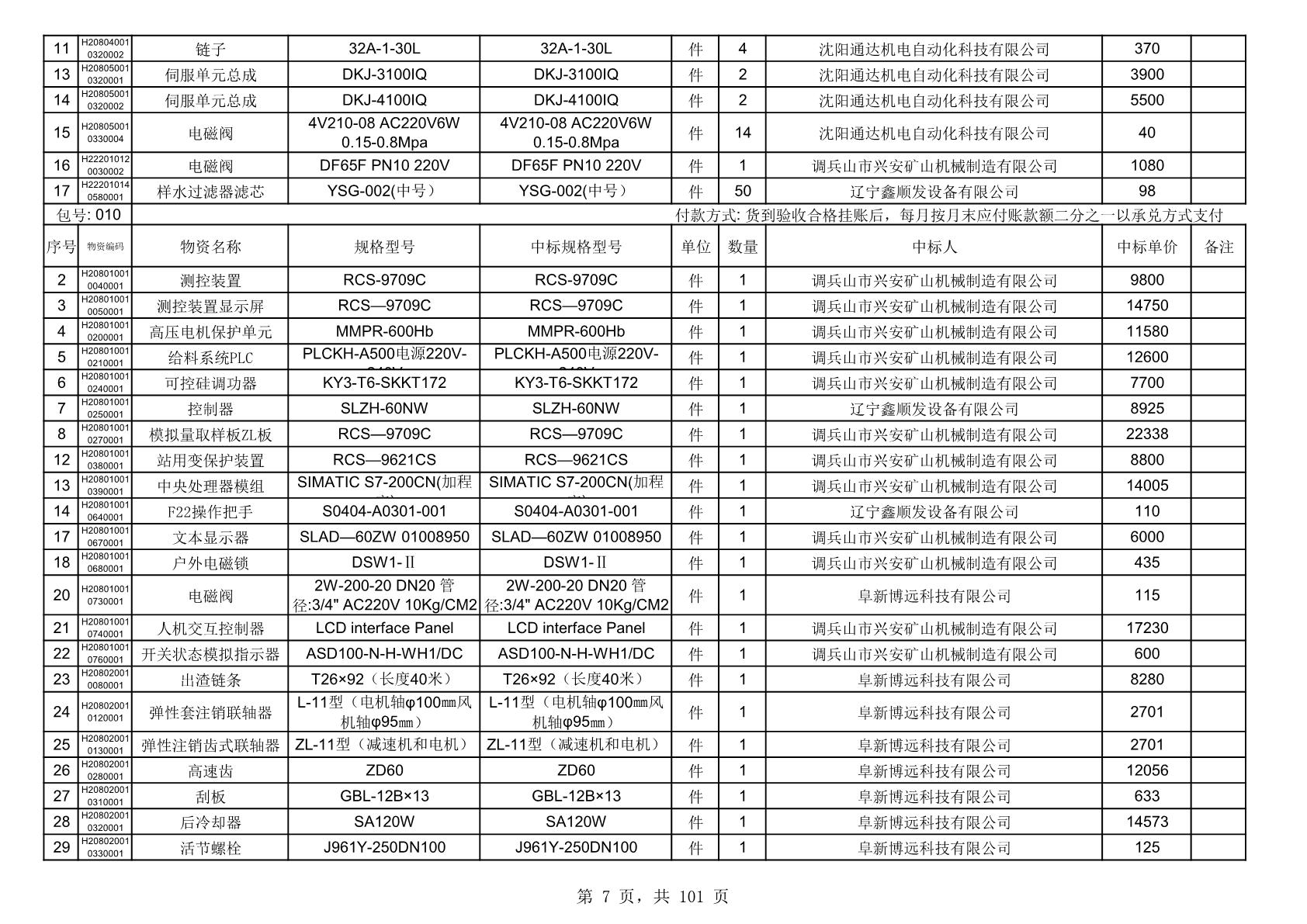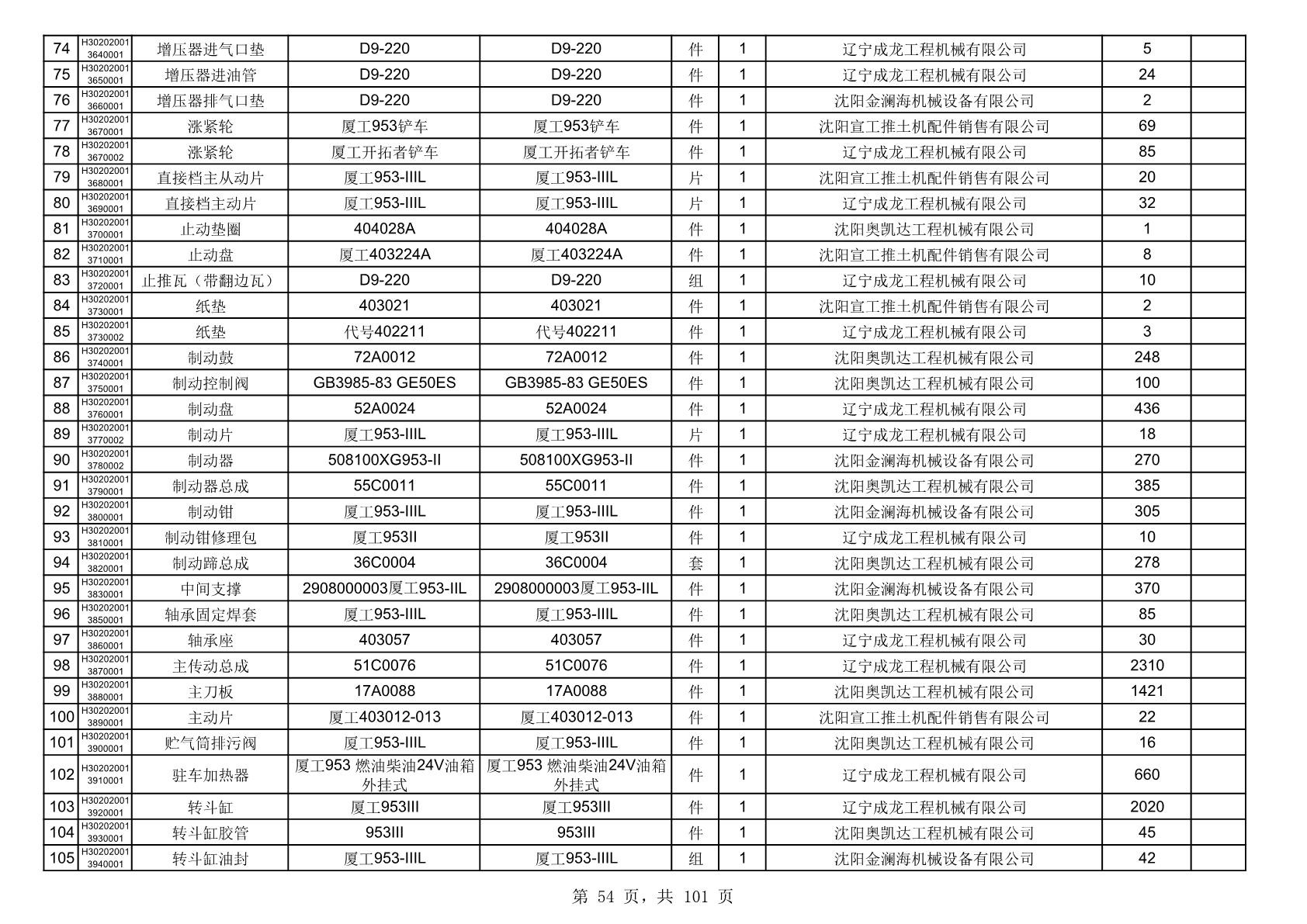 2025年10月30日配件中标结果公告(0070P)