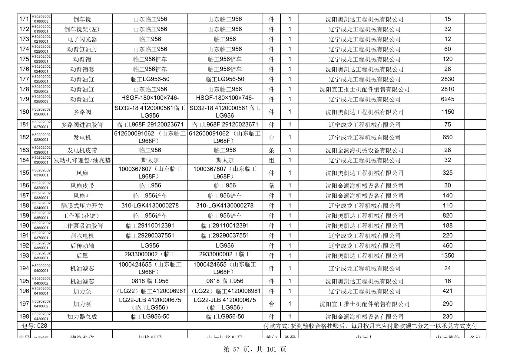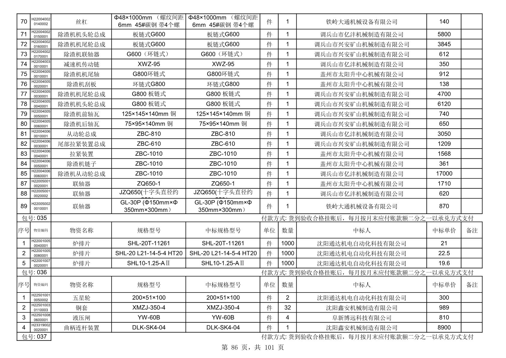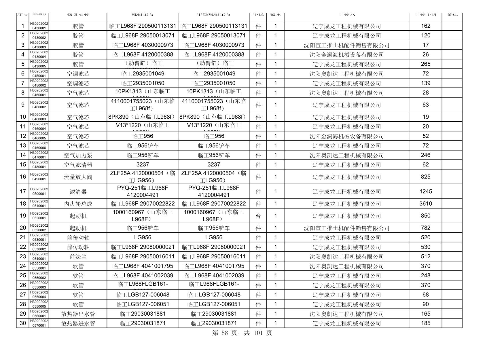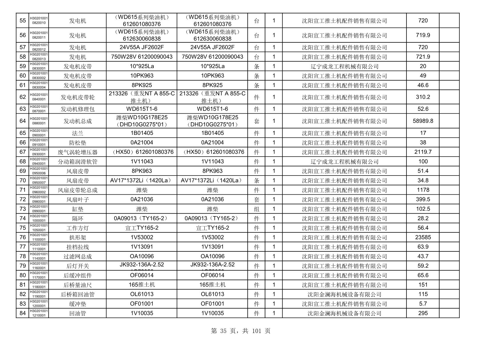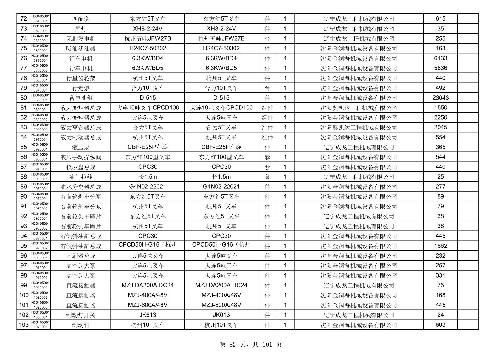 2025年10月30日配件中标结果公告(0070P)
