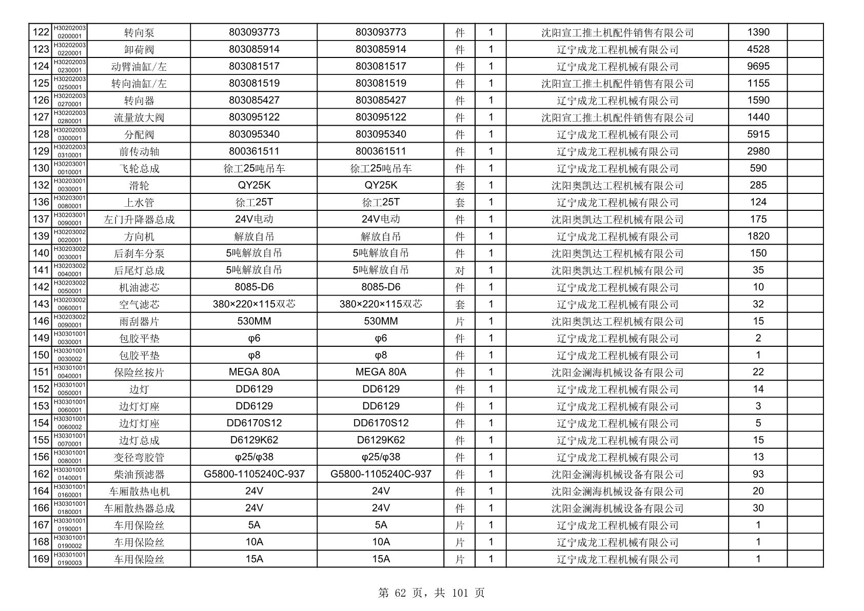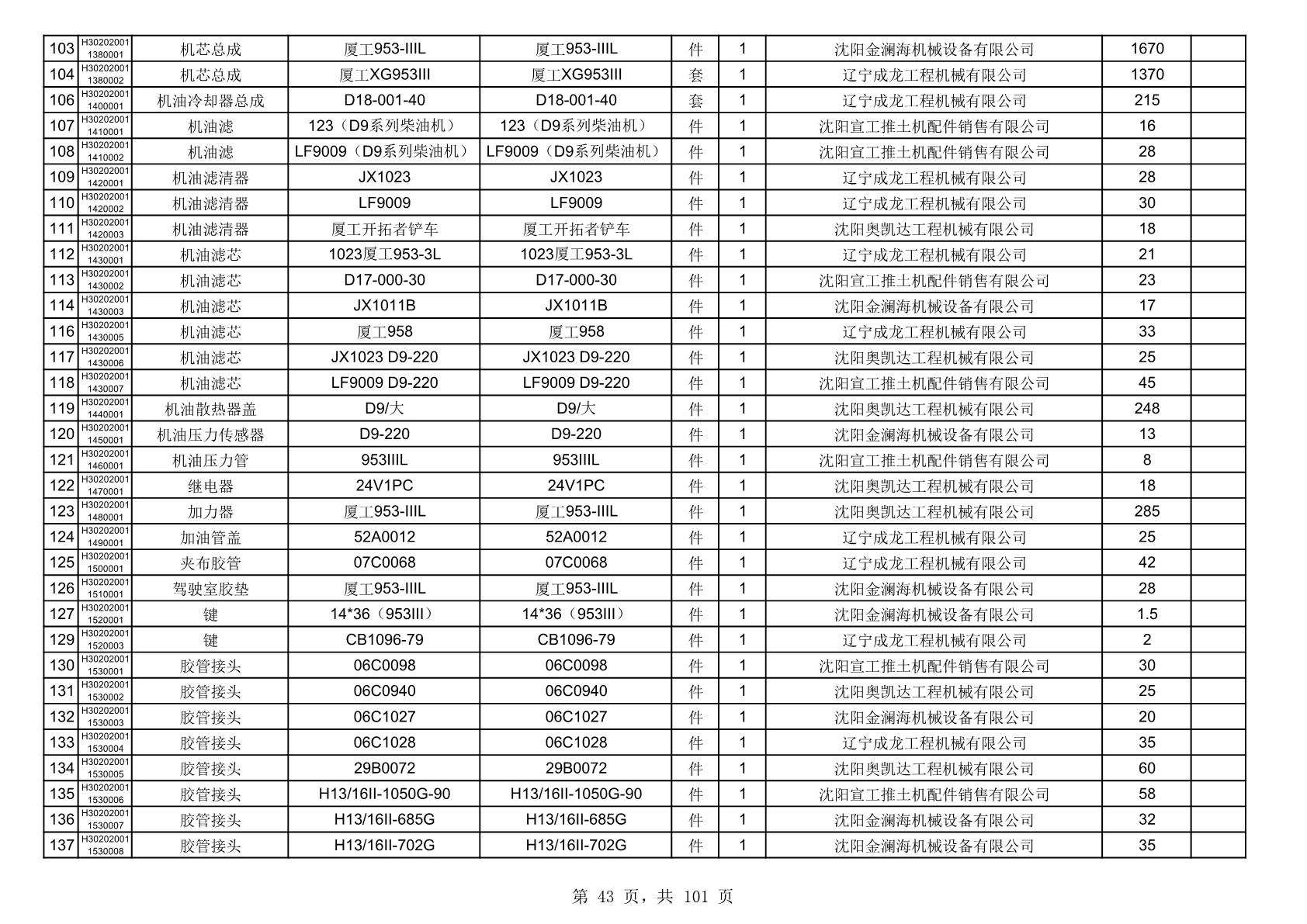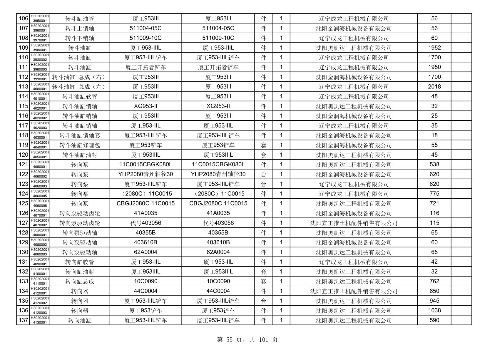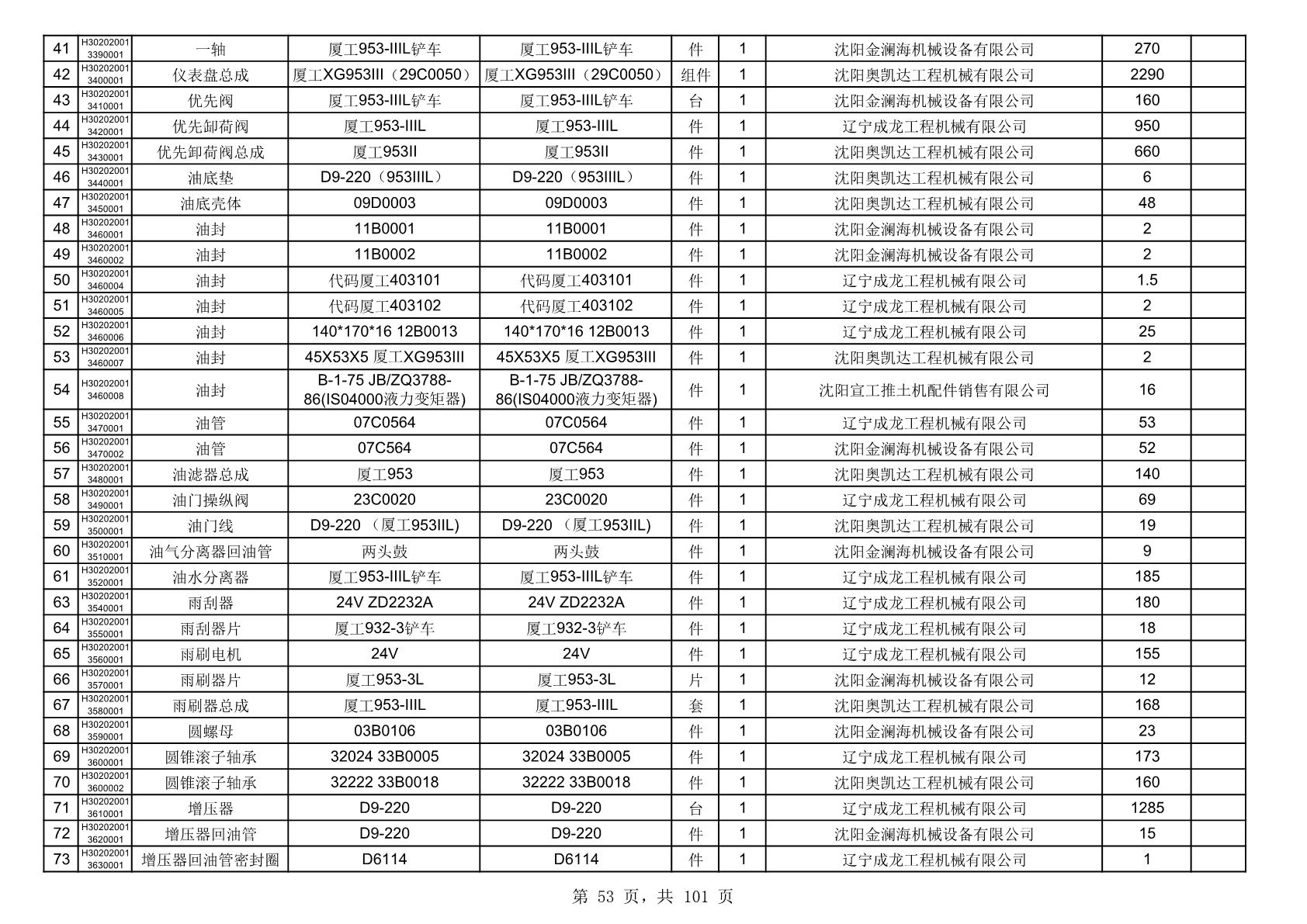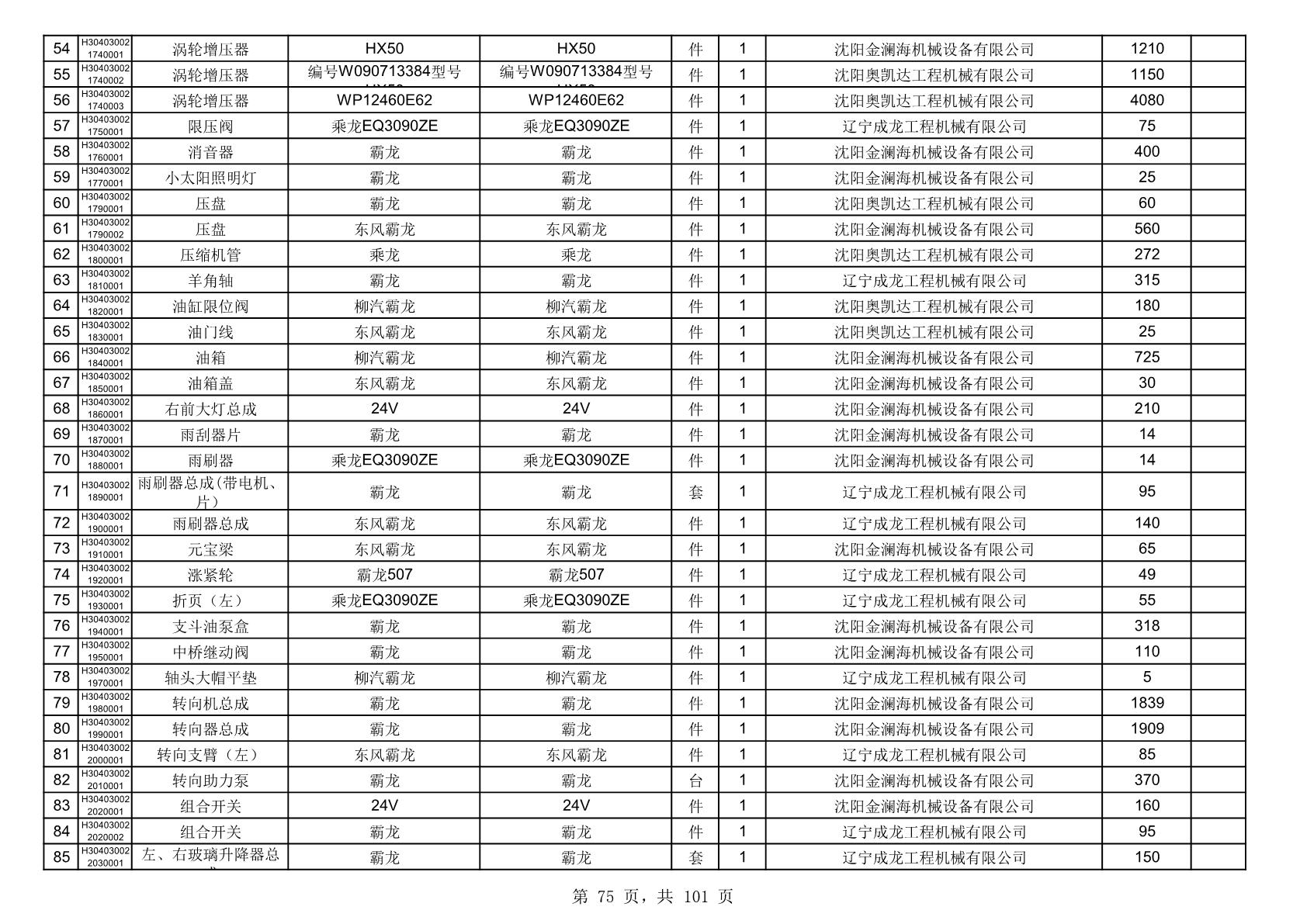 2025年10月30日配件中标结果公告(0070P)