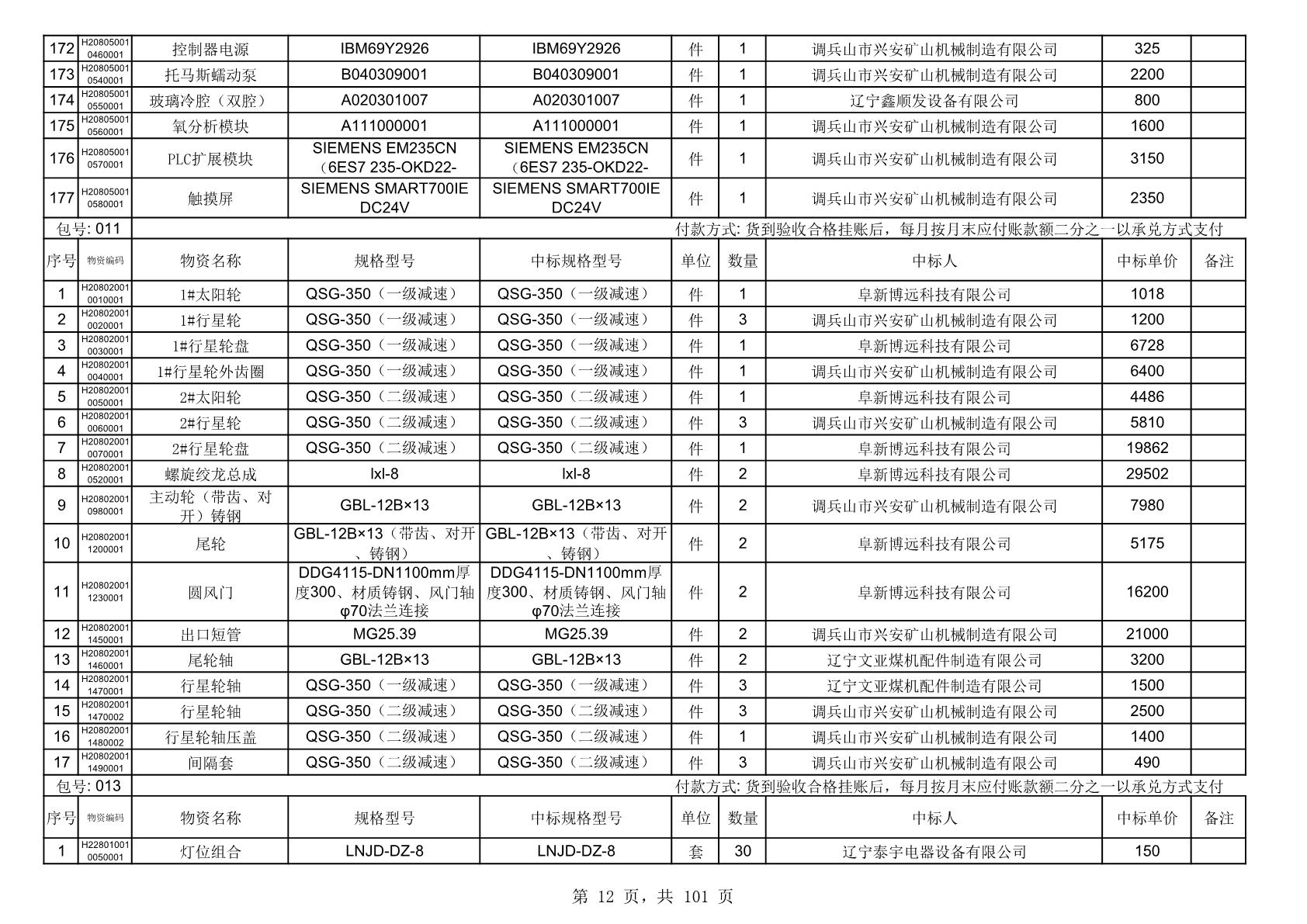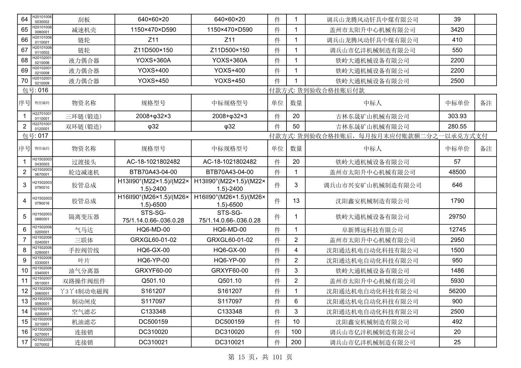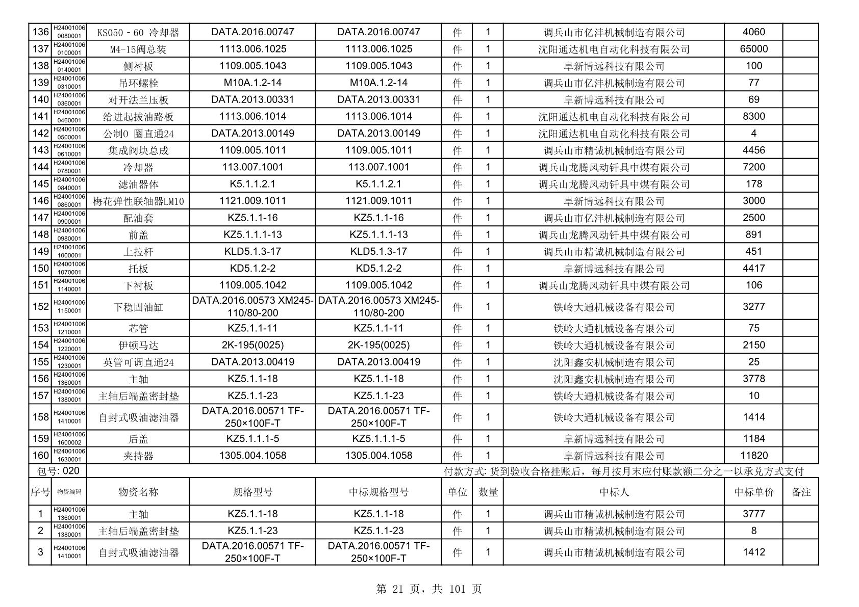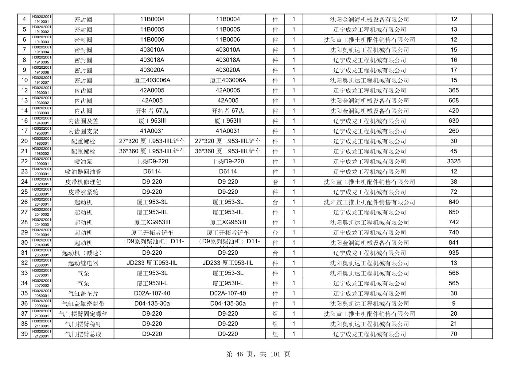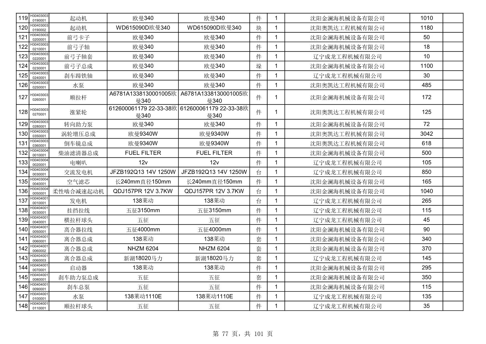 2025年10月30日配件中标结果公告(0070P)
