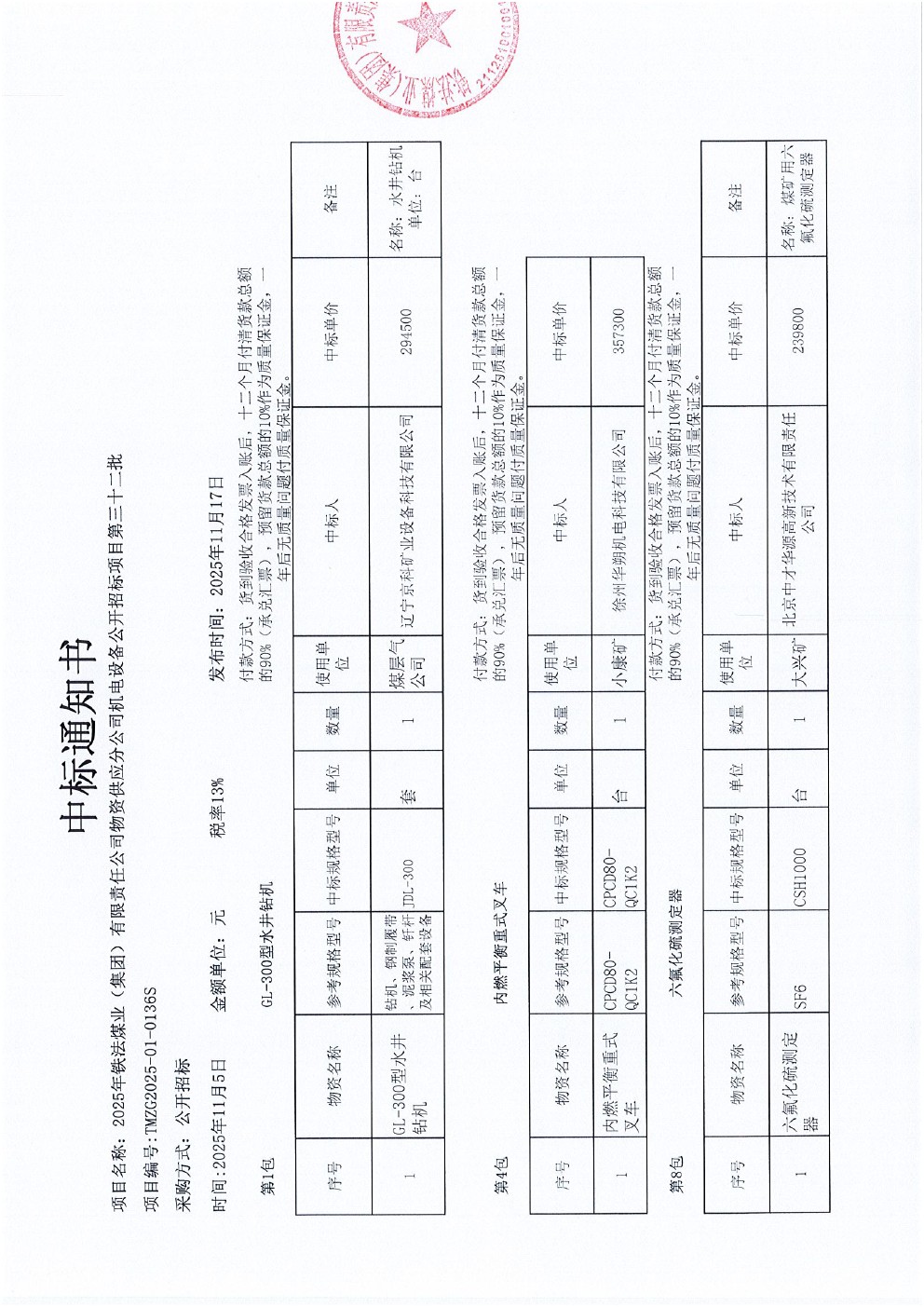 2025年11月5日设备公开招标中标通知书(0136S)1