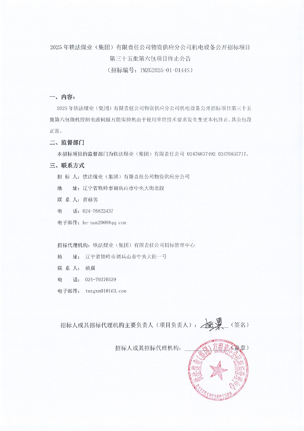 2025年11月26日设备第三十五批公开招标第6包终止公告(0144S)
