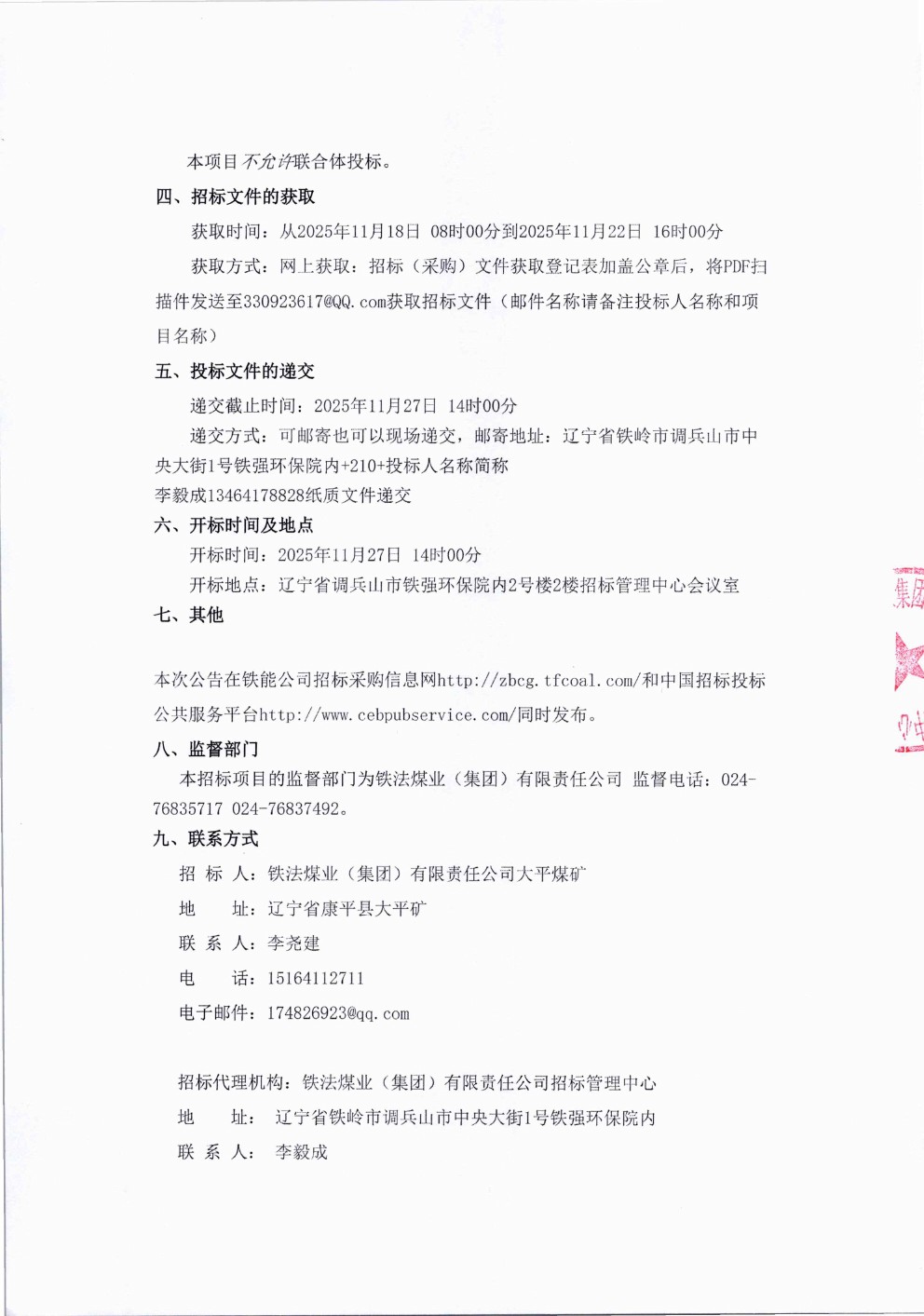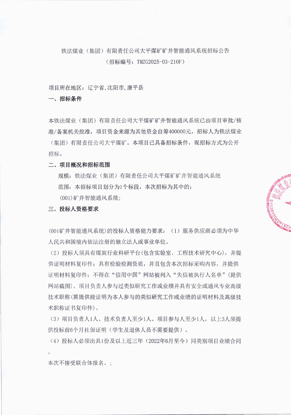 铁法煤业(集团)有限责任公司大平煤矿矿井智能通风系统招标公告