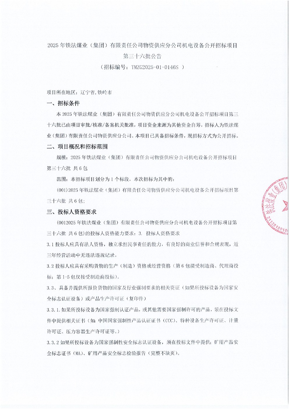 2025年12月3日设备第三十六批公开招标公告(0146S)