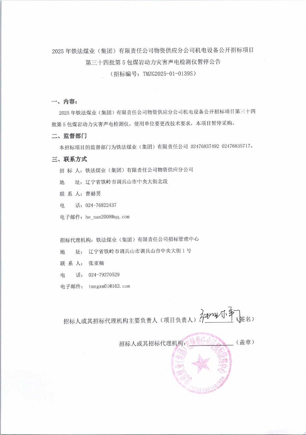2024年11月25日设备公开招标第5包项目终止公告(0139S)