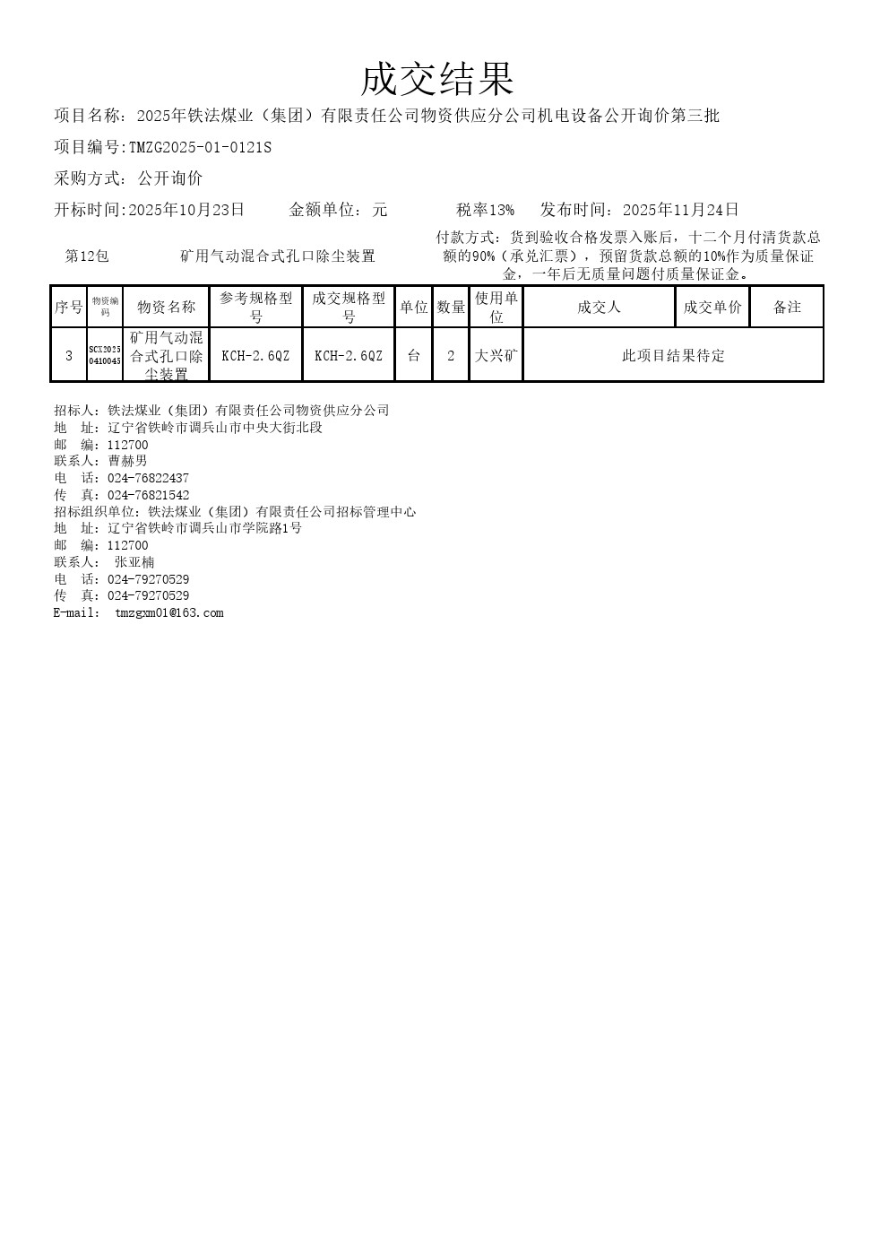 2025年10月23日机电设备公开询价成交结果变更公示(0121S)