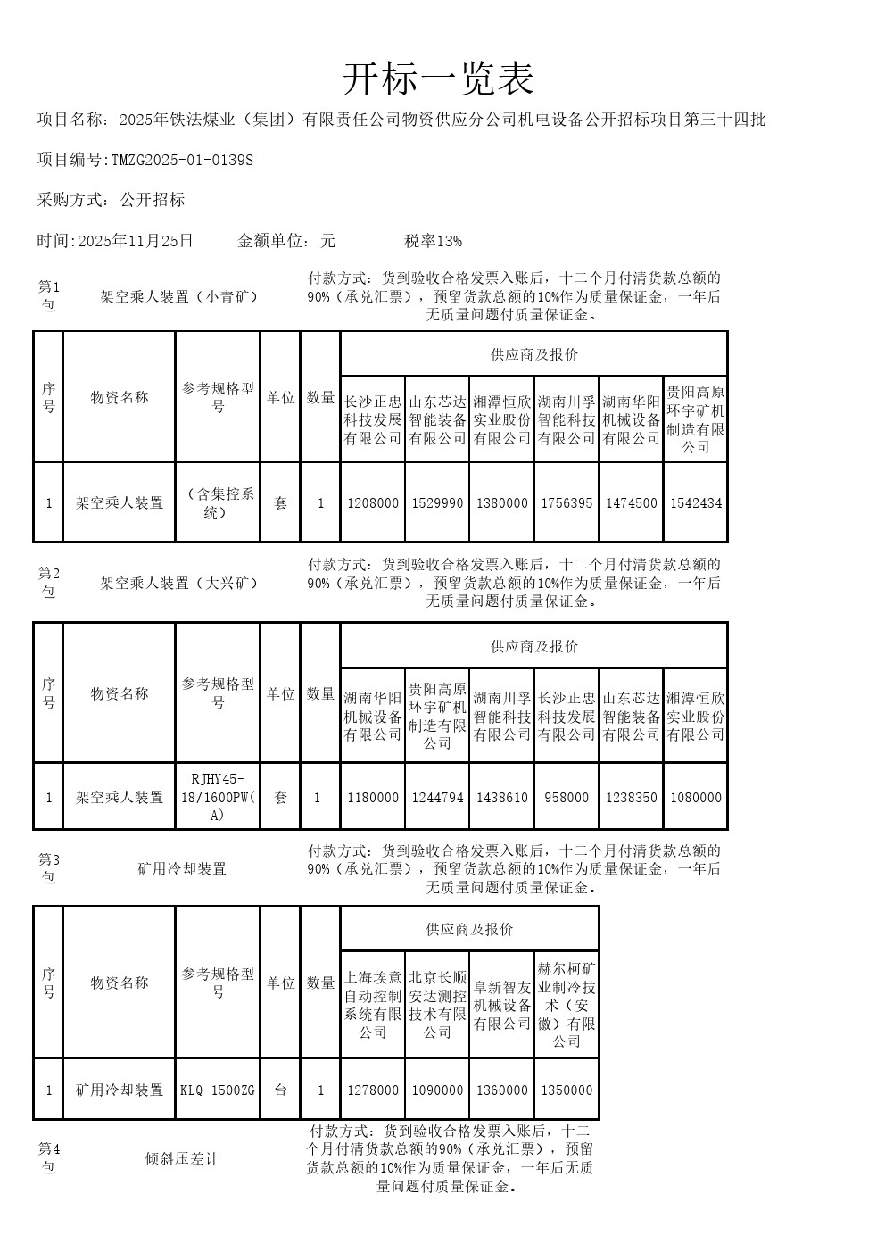 2025年11月25日设备第三十四批公开招标报价一览表(0139S)