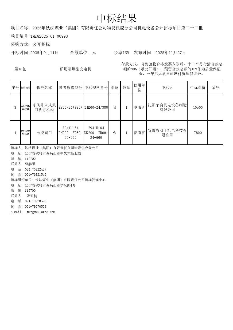 2025年9月11日机电设备公开招标中标结果公示(0099S)-3