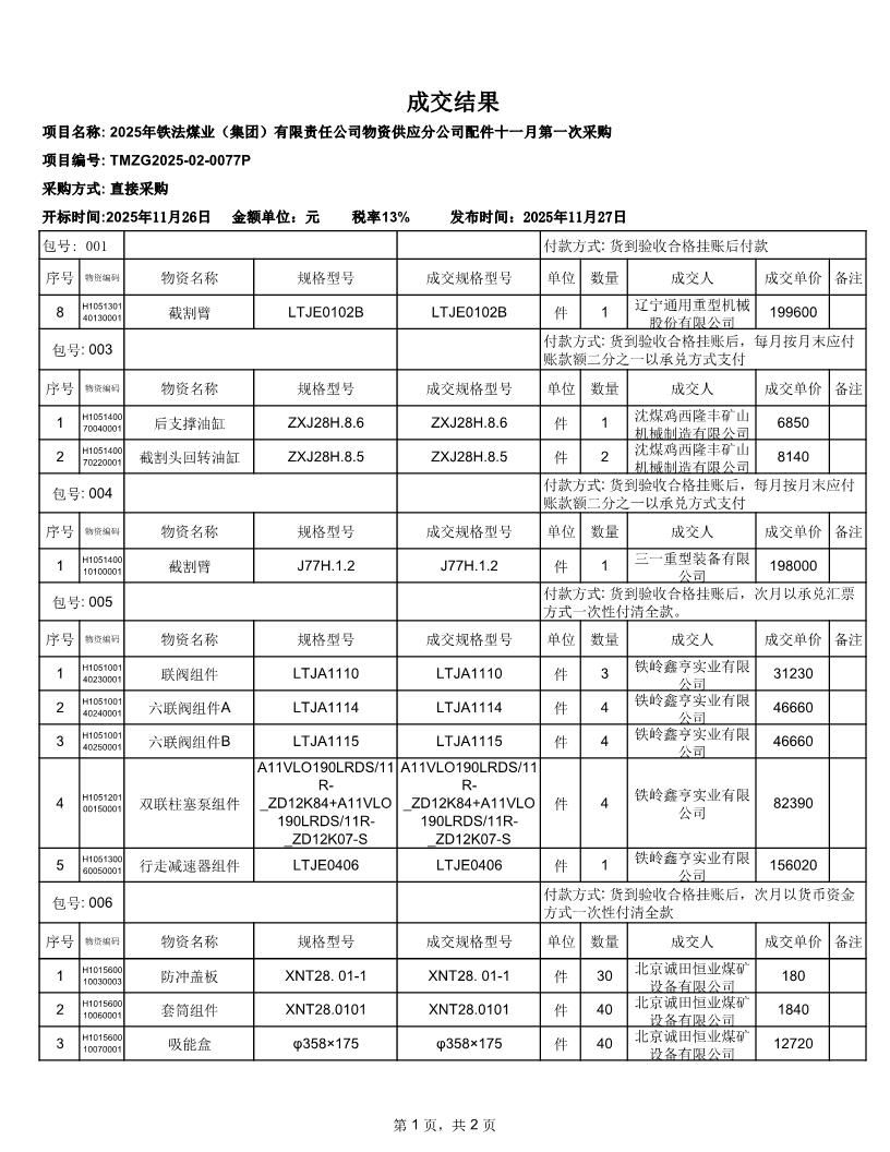 2025年11月26日配件成交结果公告(0077P)