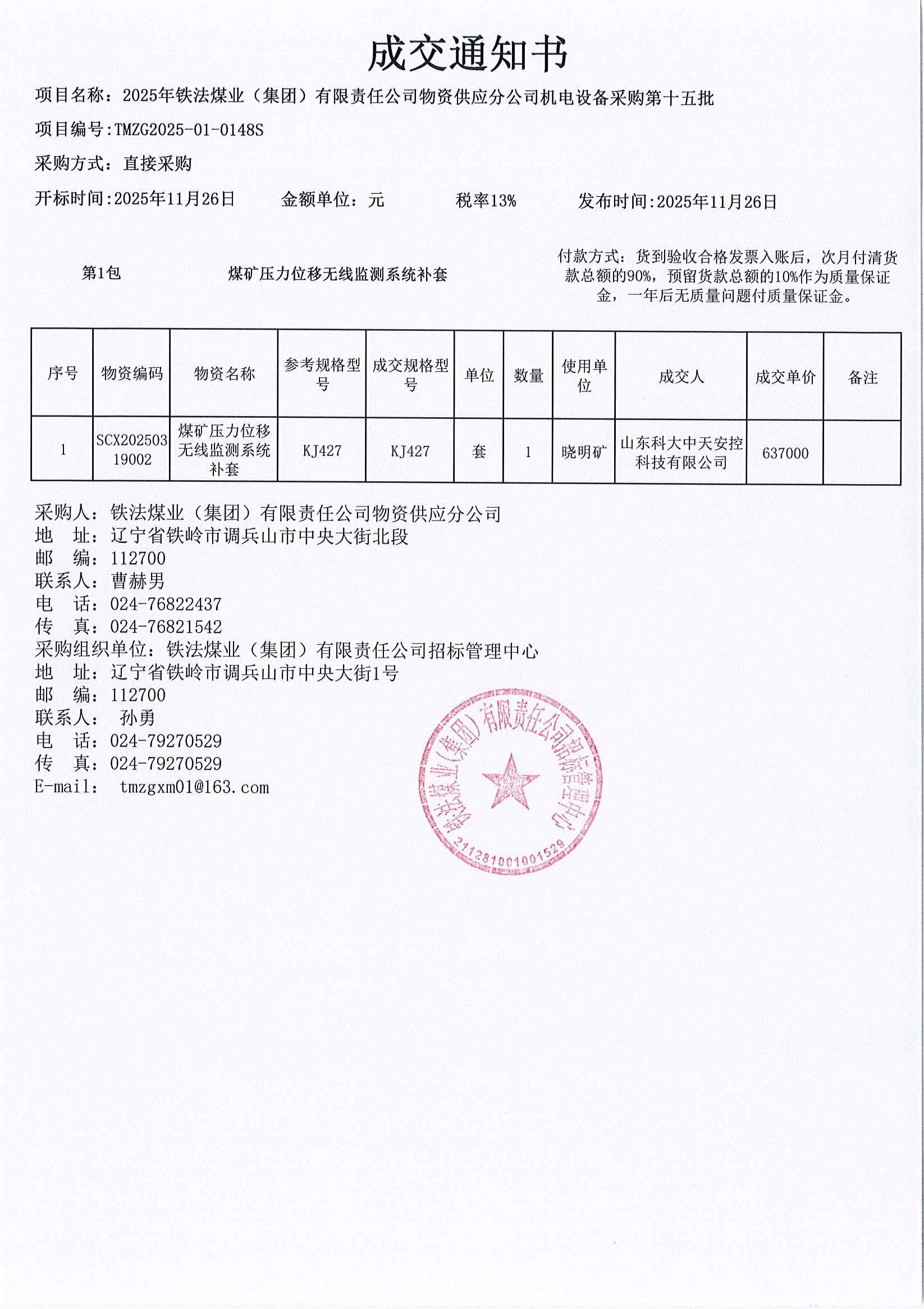 2025年11月26日机电设备成交通知书(0148S)