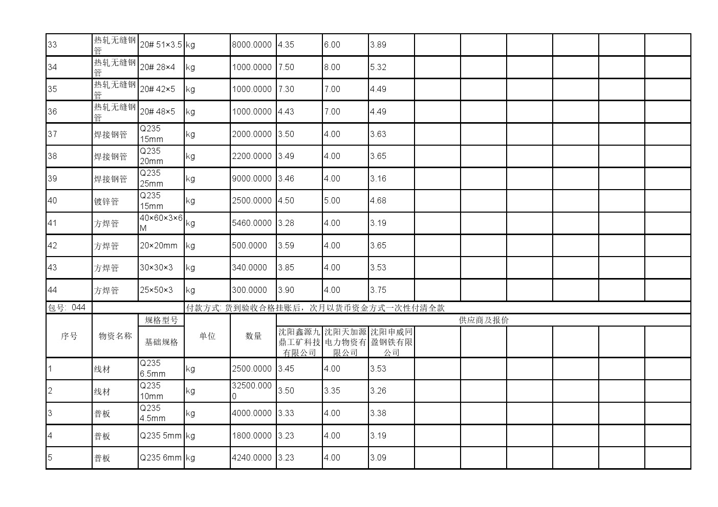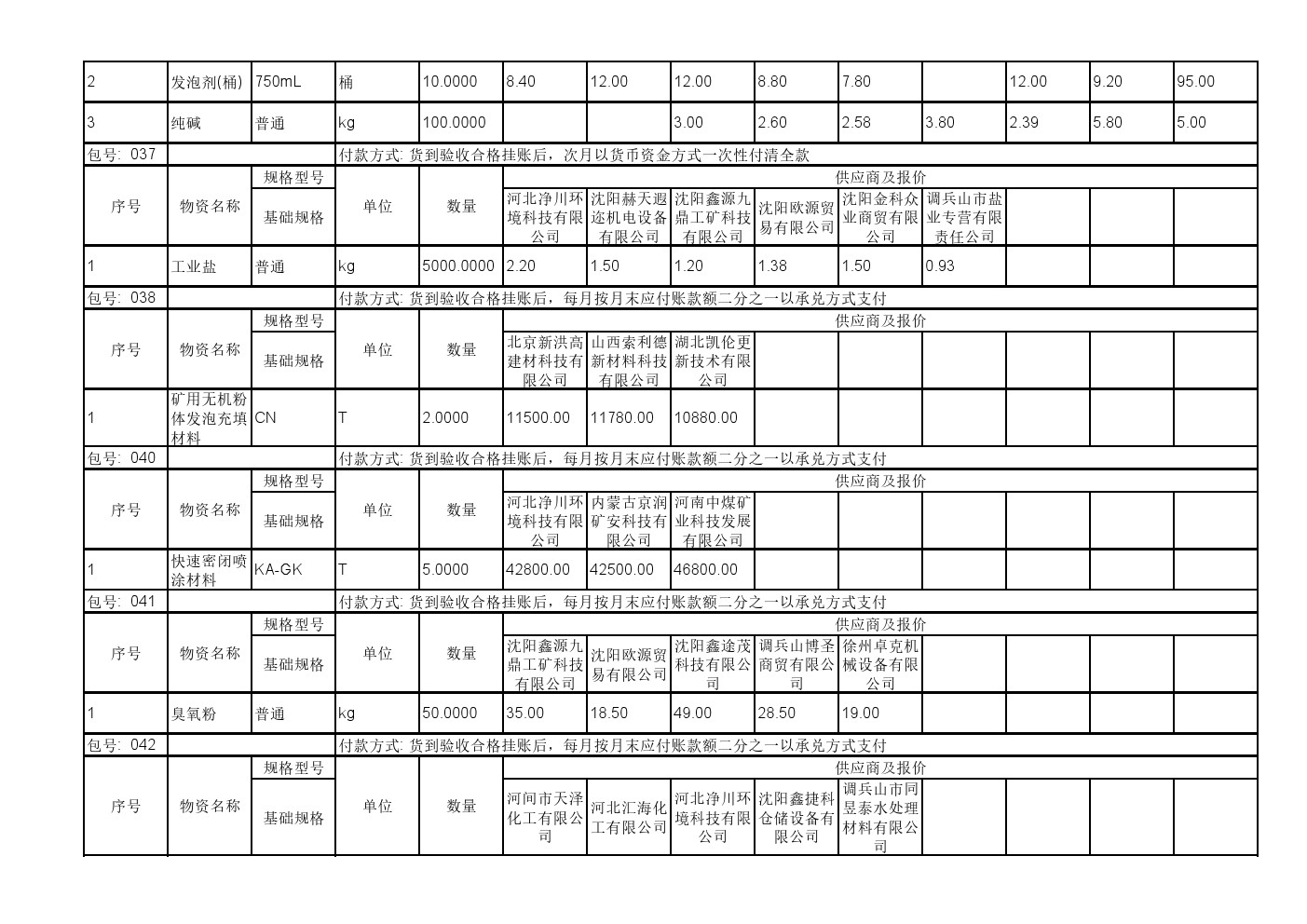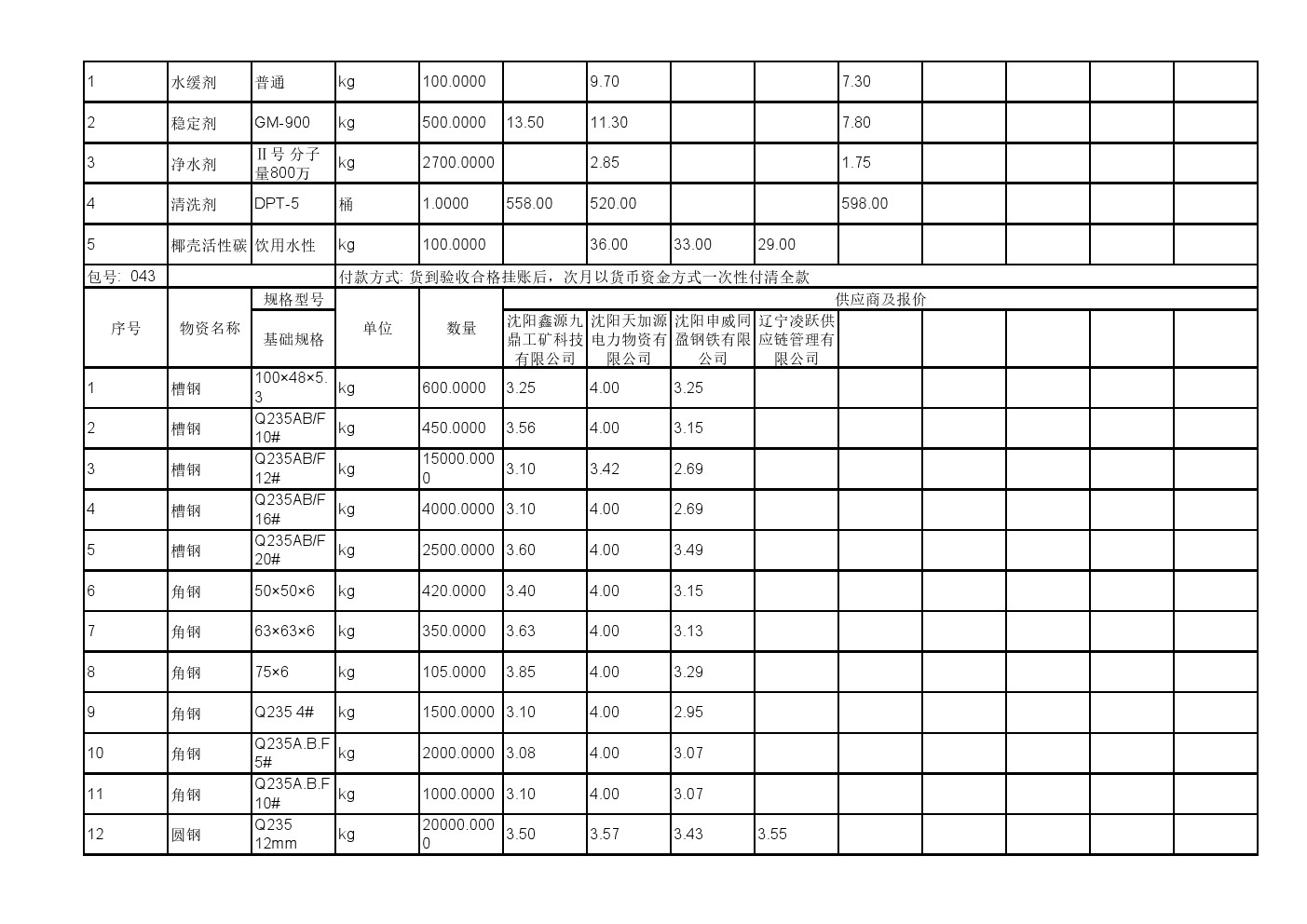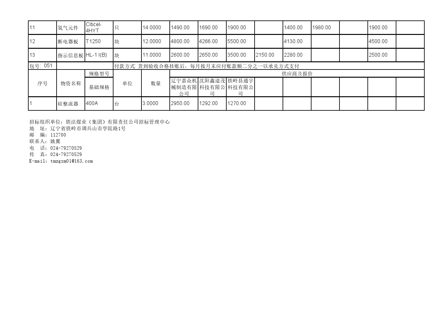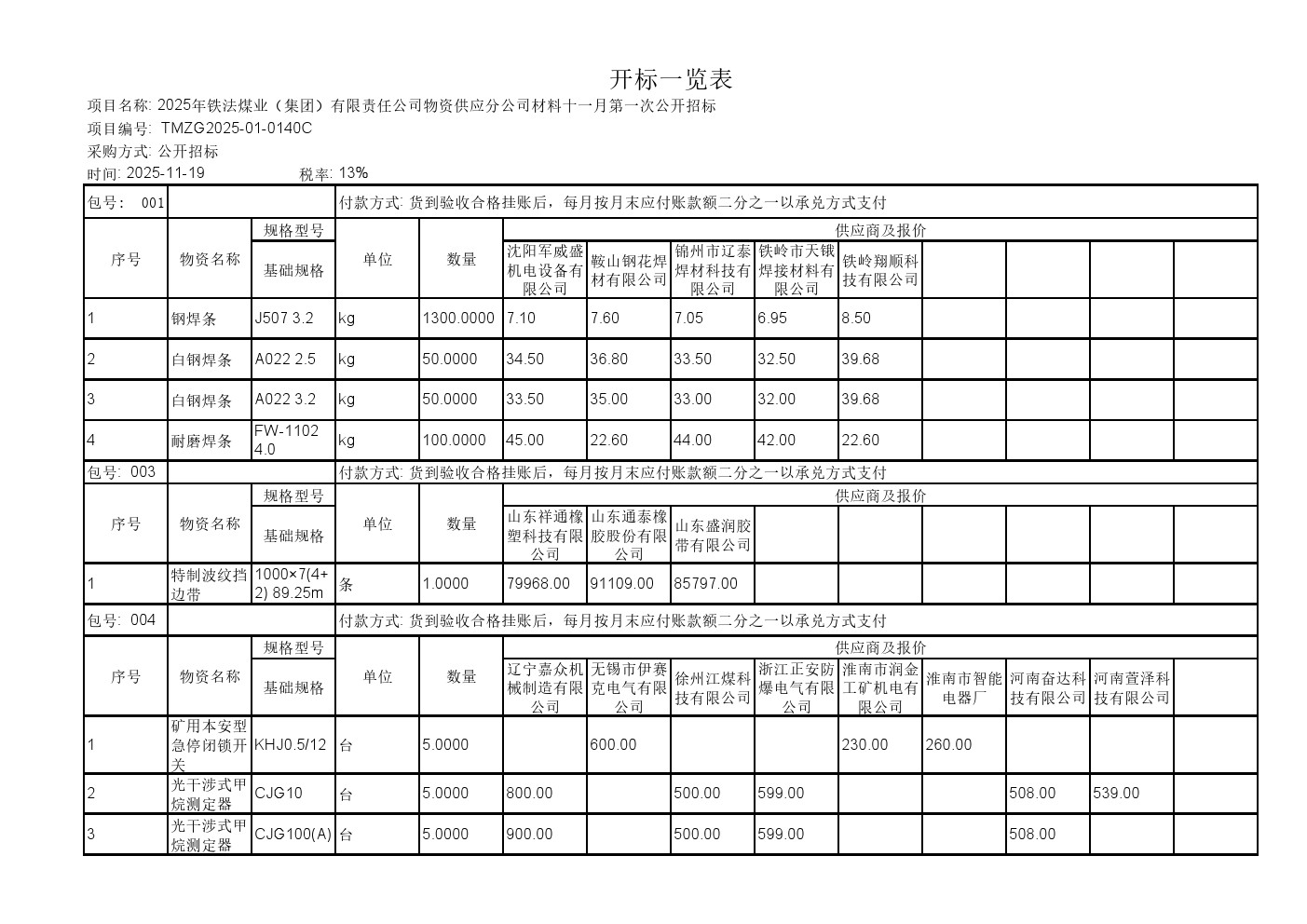 2025年11月19日材料公开招标报价一览表(0140C)
