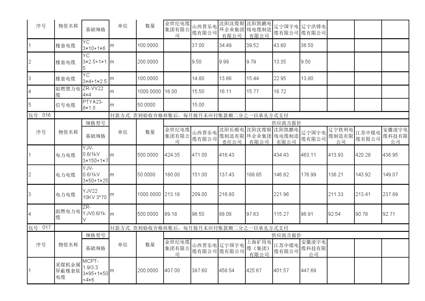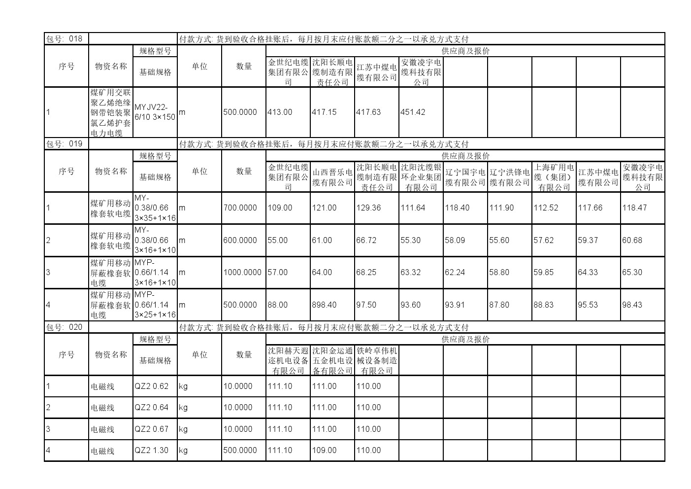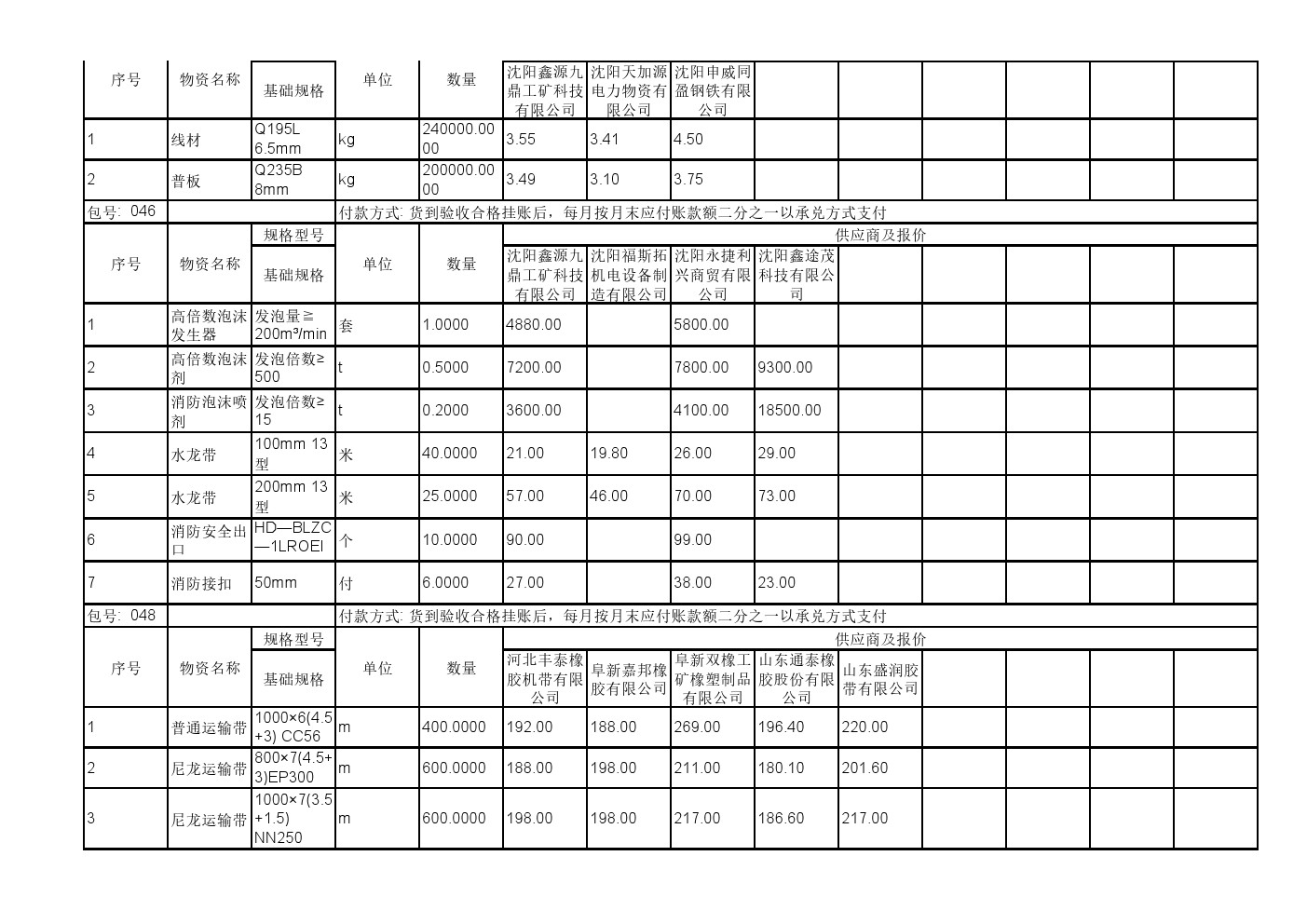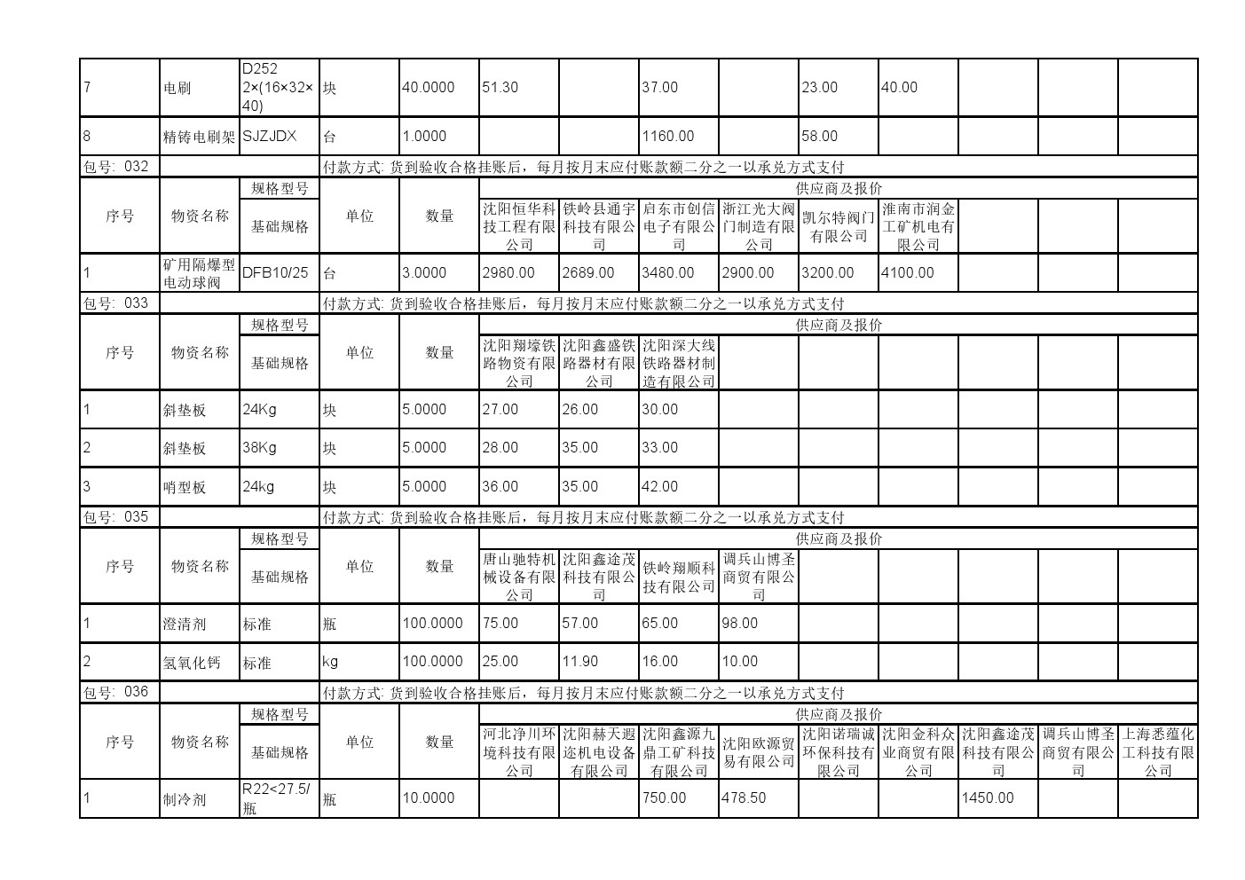 2025年11月19日材料公开招标报价一览表(0140C)