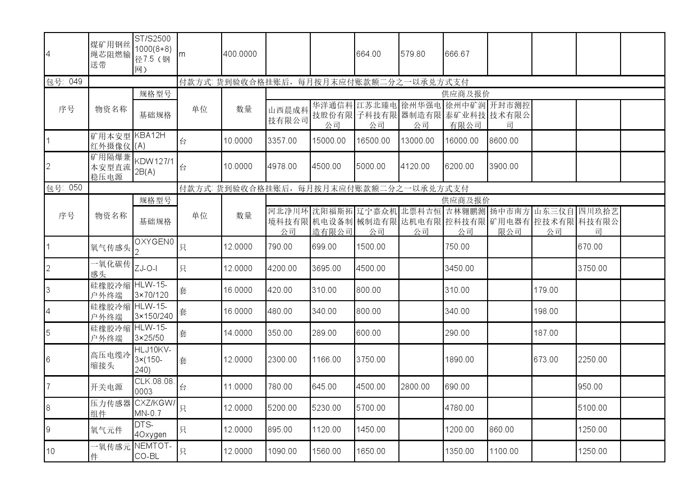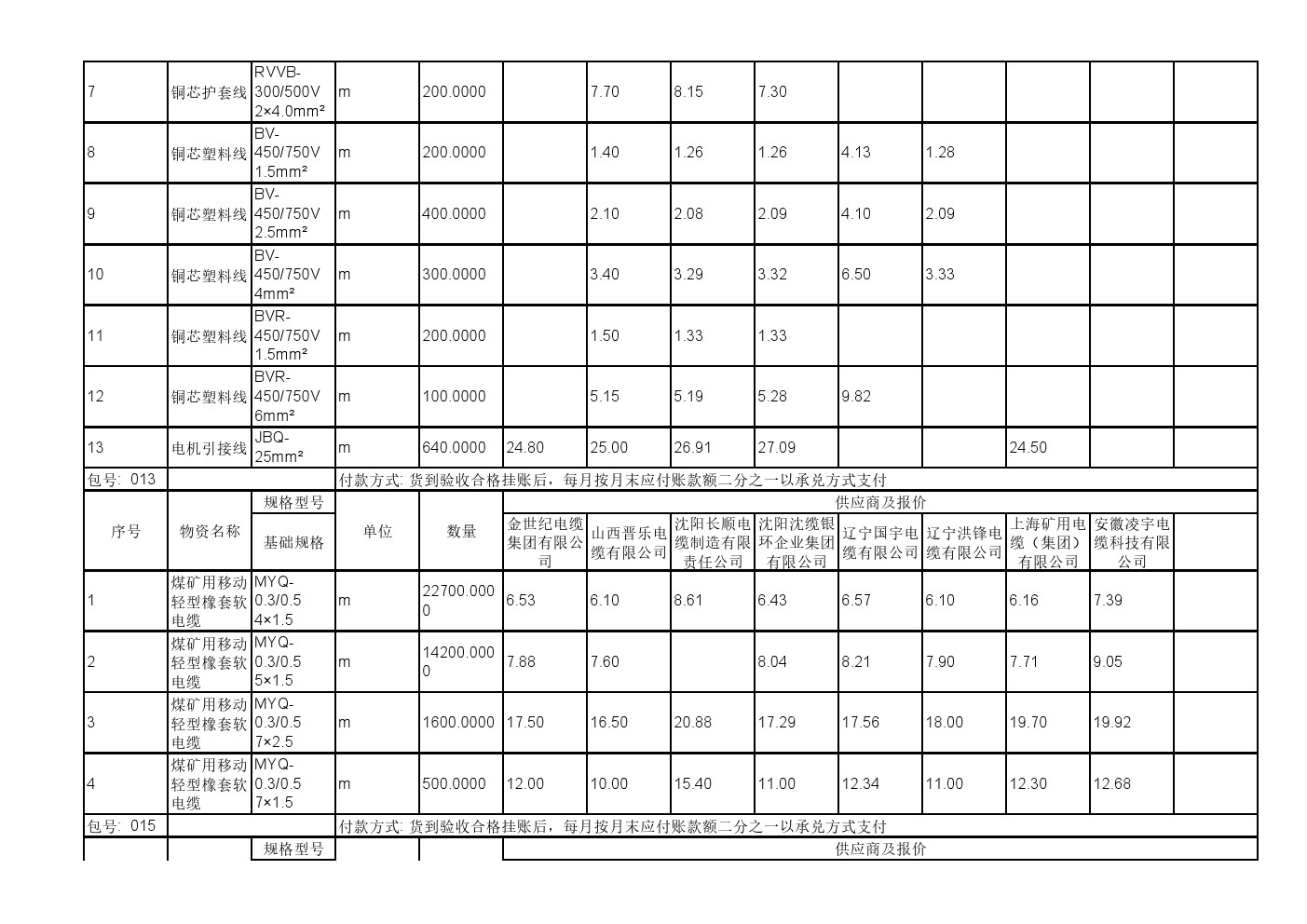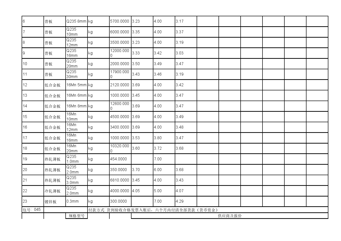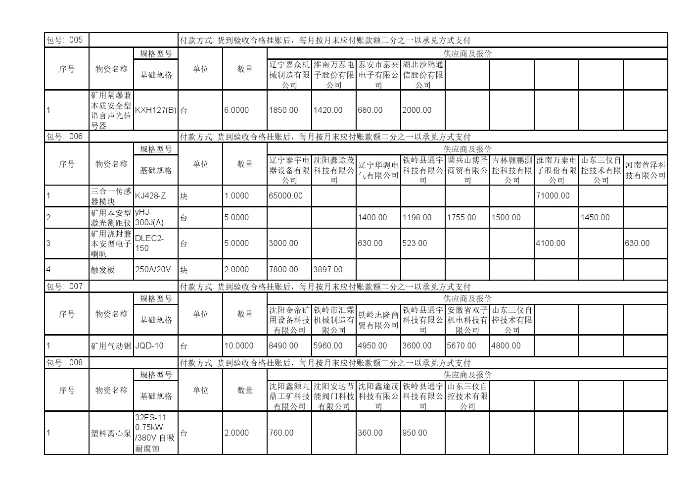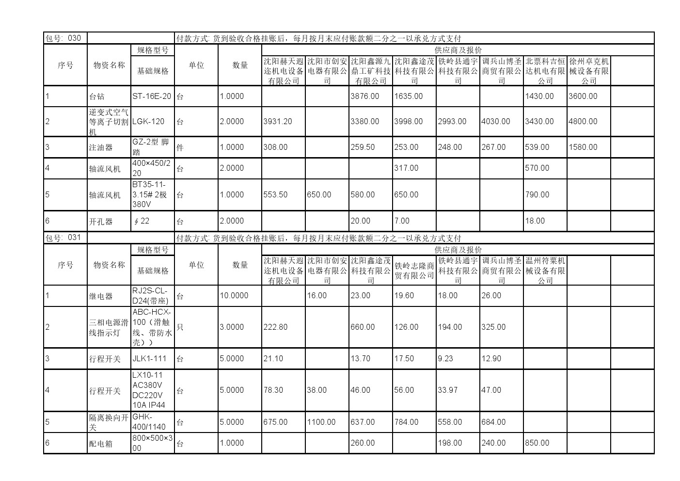 2025年11月19日材料公开招标报价一览表(0140C)