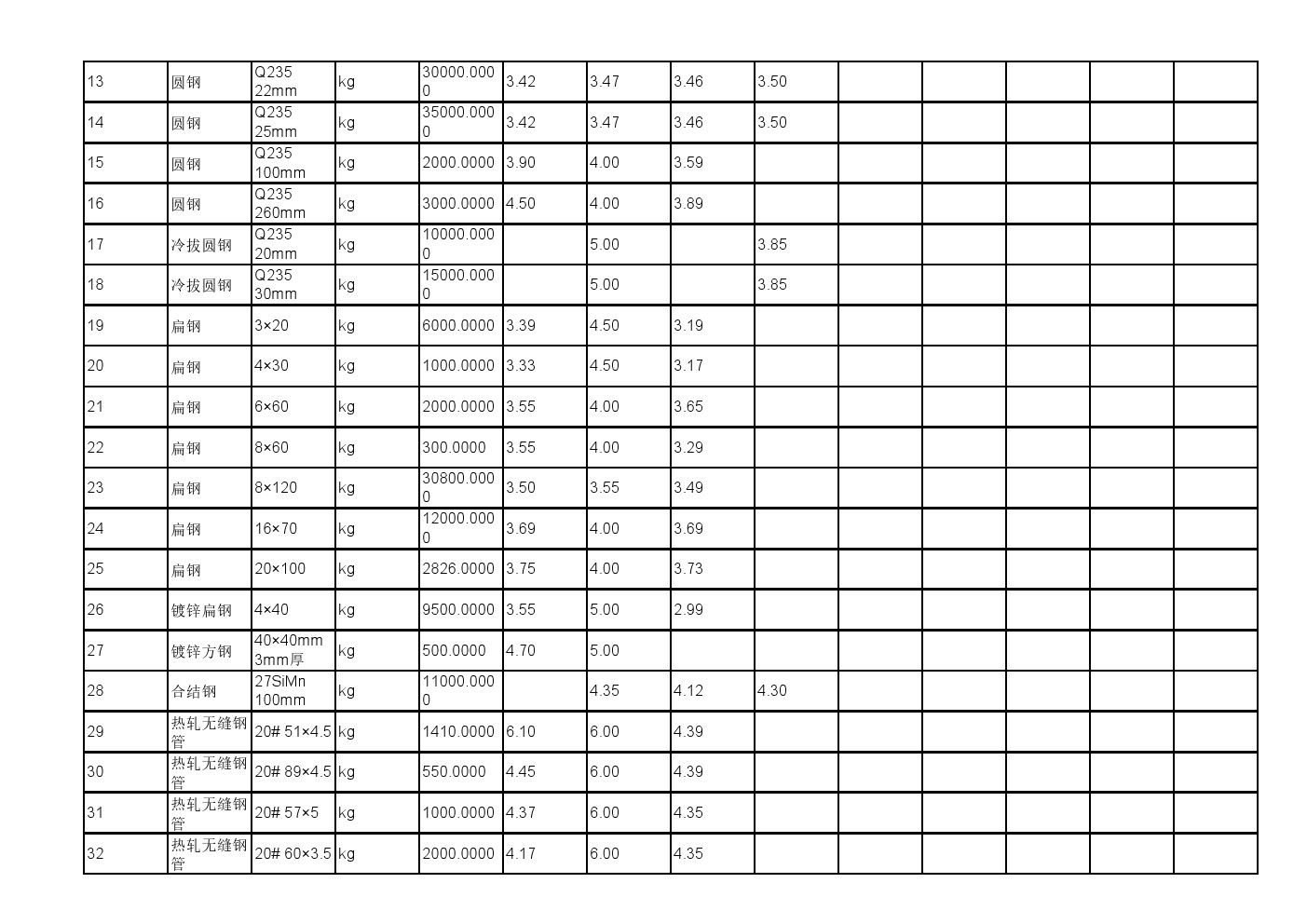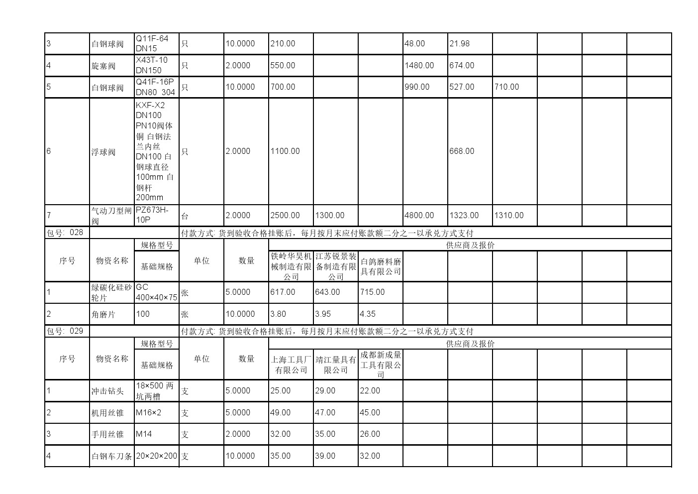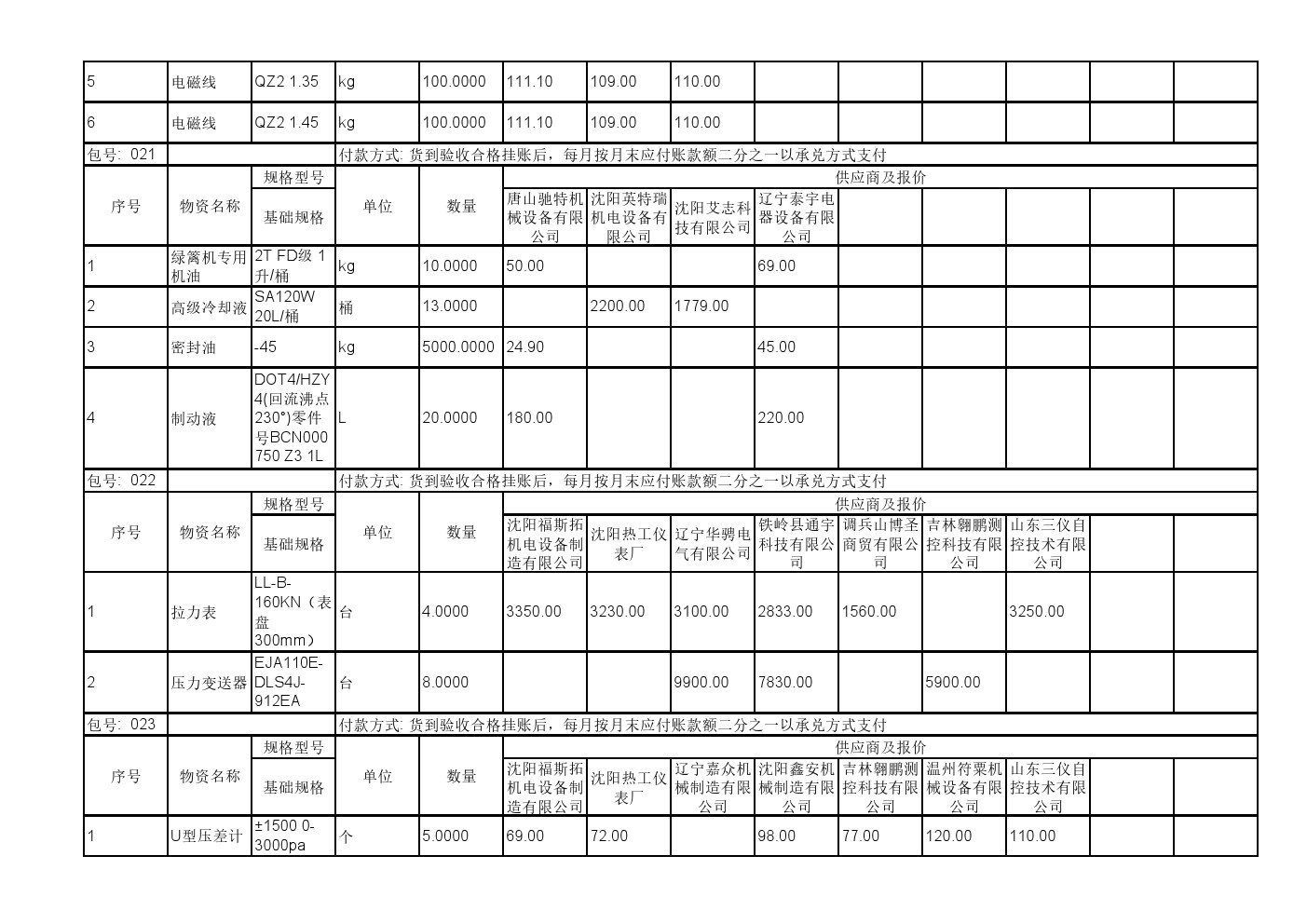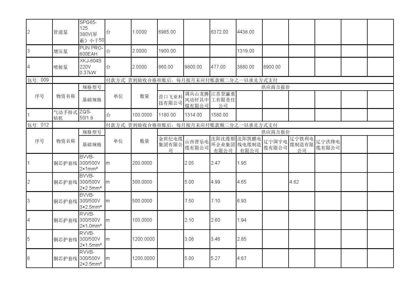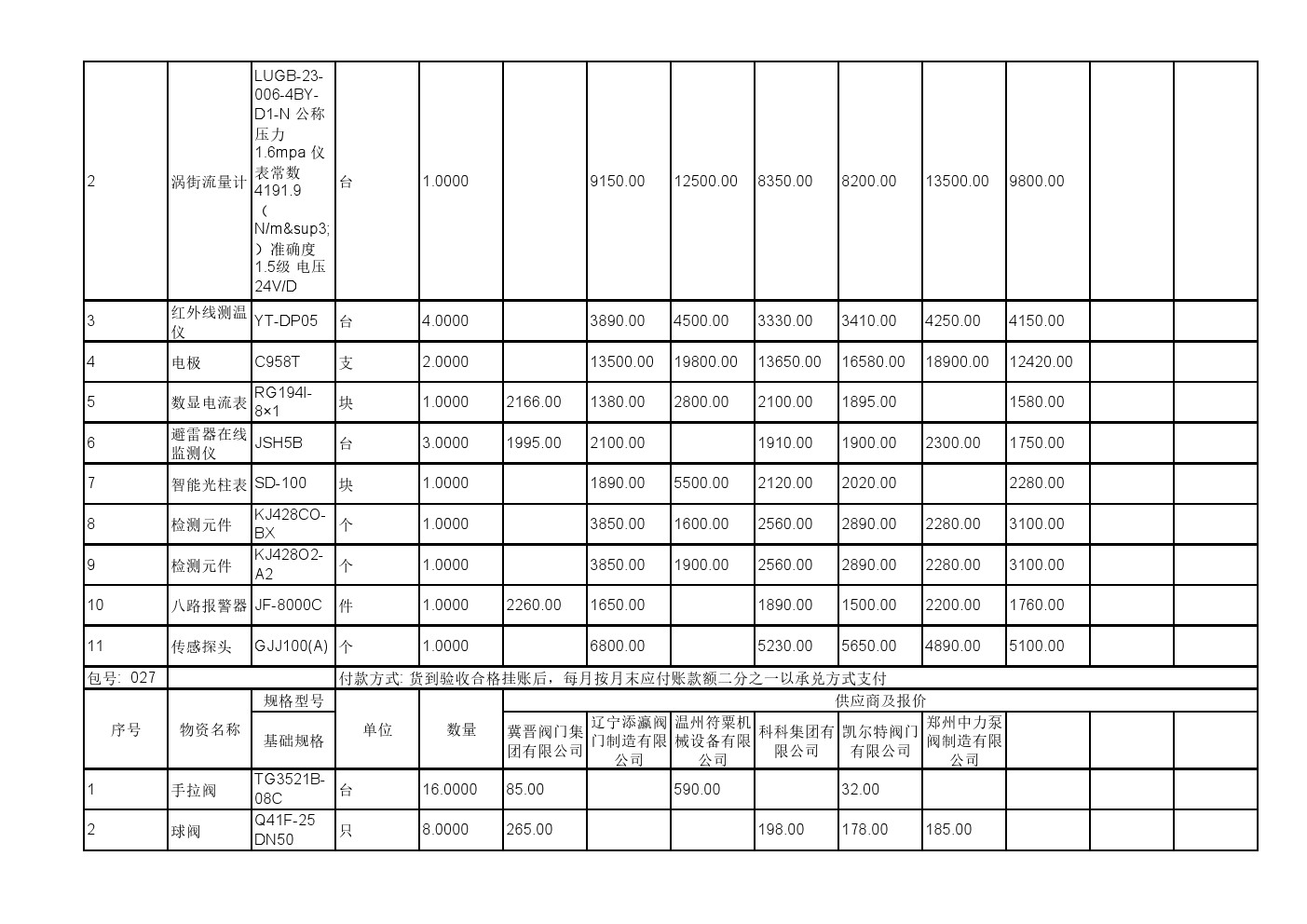 2025年11月19日材料公开招标报价一览表(0140C)