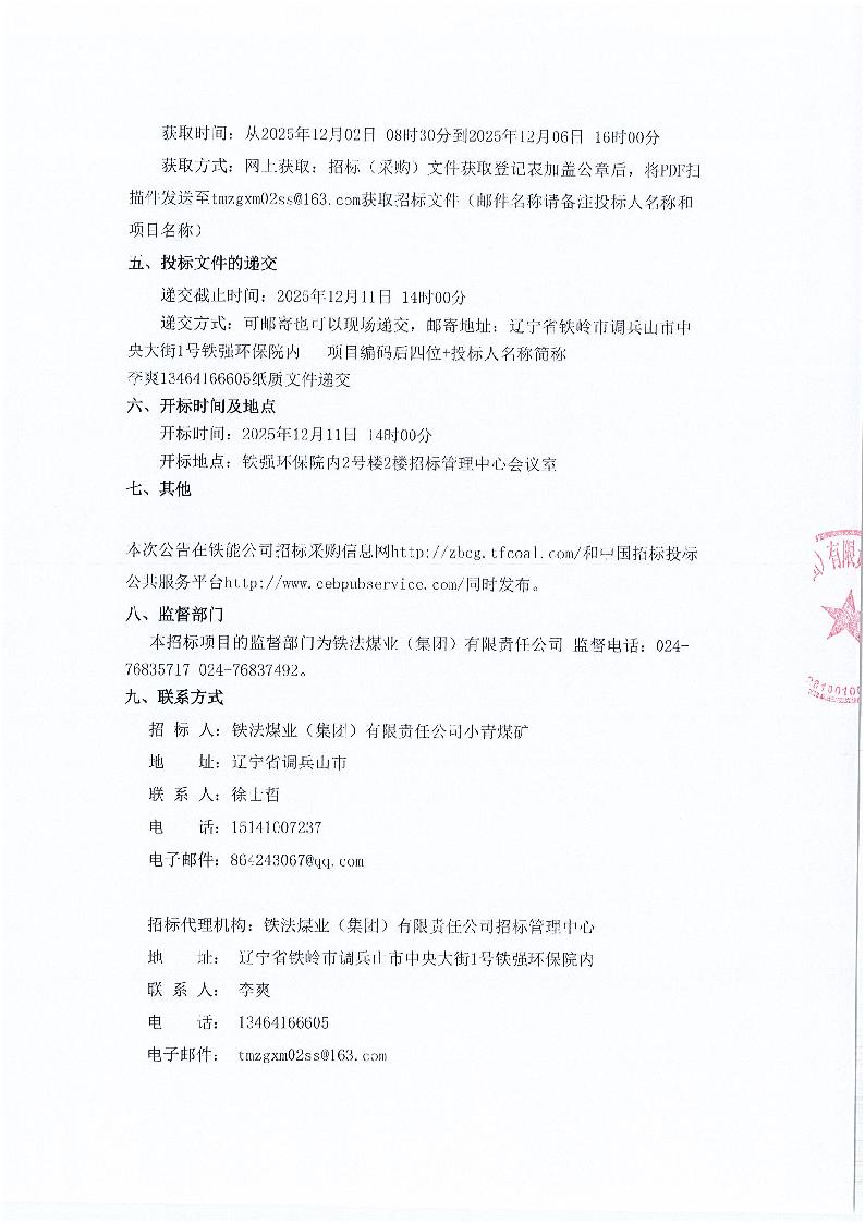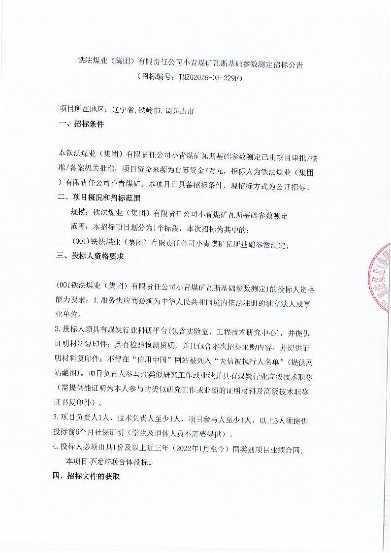 铁法煤业(集团)有限责任公司小青煤矿煤层基础参数测定招标公告