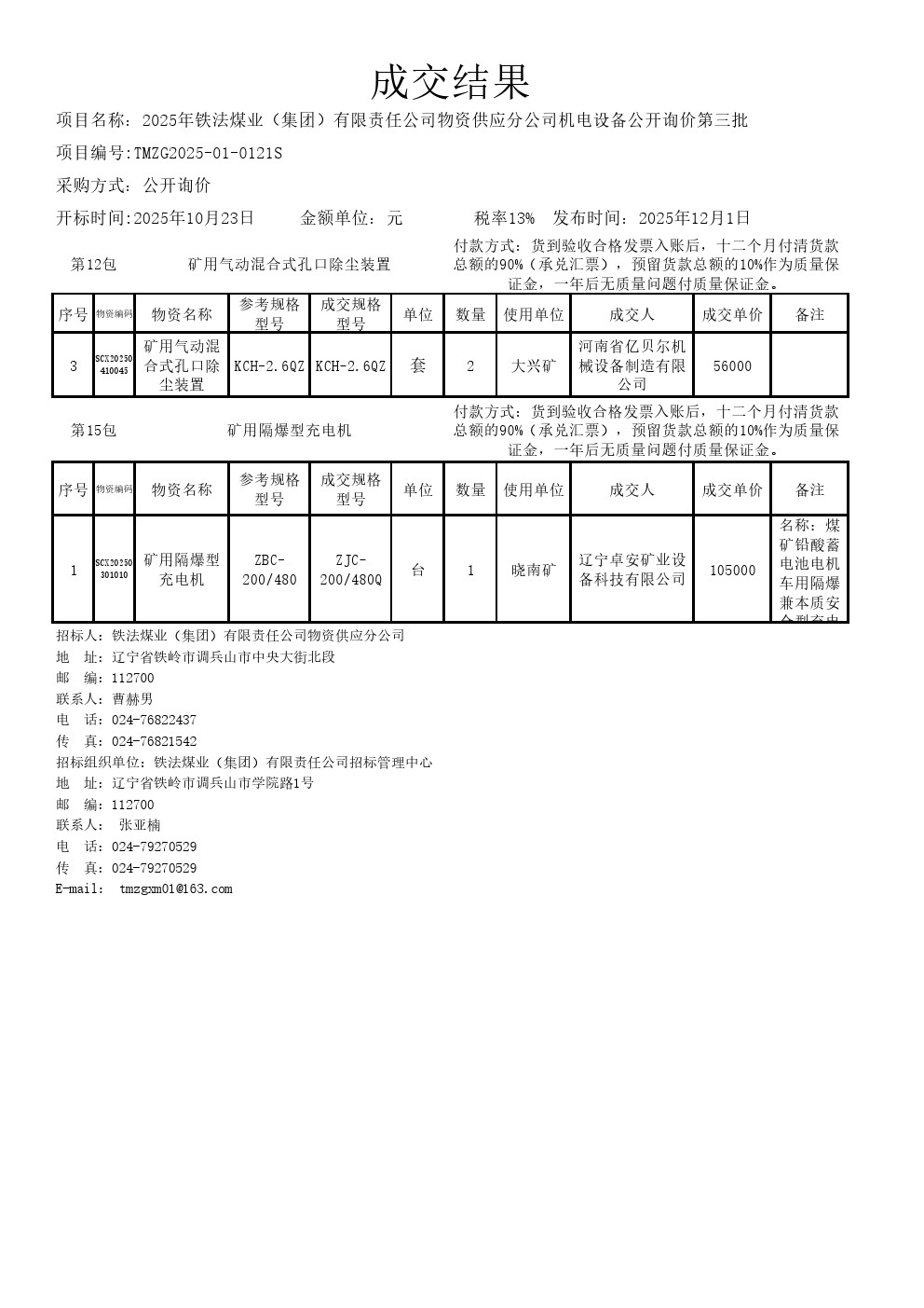 2025年10月23日机电设备公开询价成交结果公示(0121S)-
