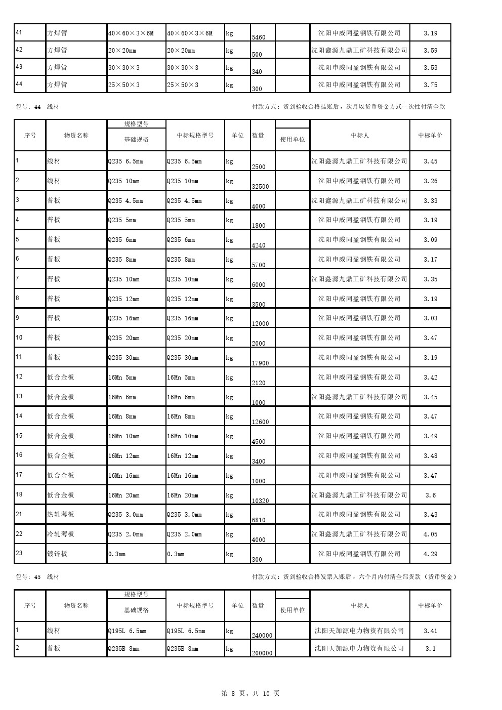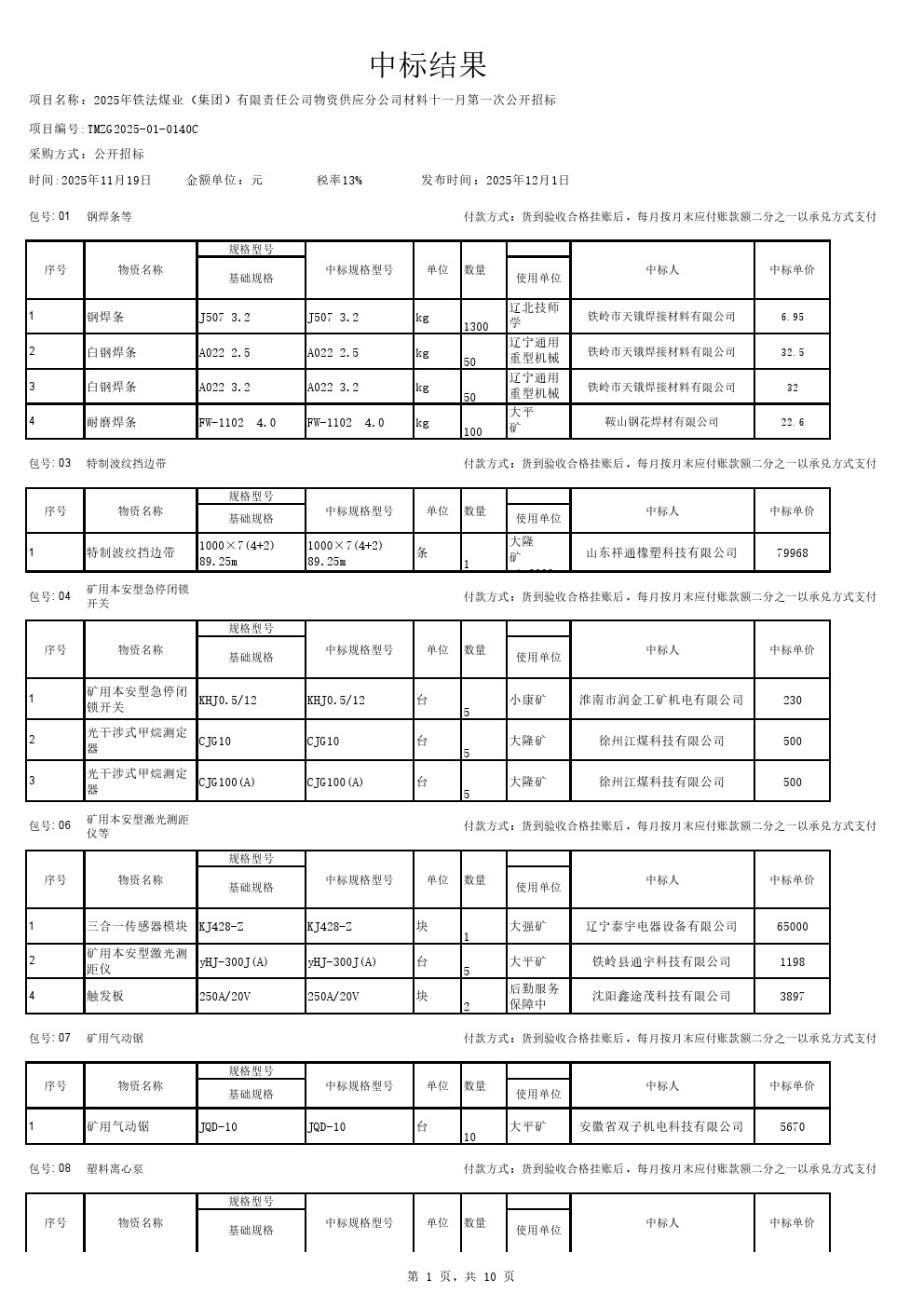2025年11月19日材料公开招标中标结果公告(0140C)1