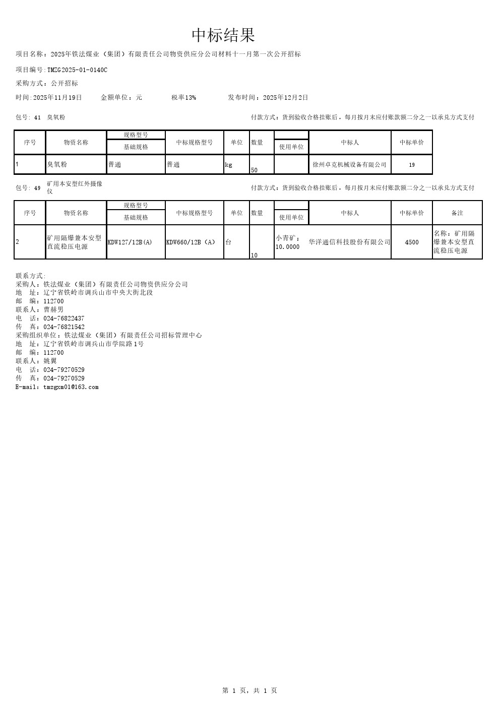 2025年11月19日材料公开招标中标结果变更公告(0140C)