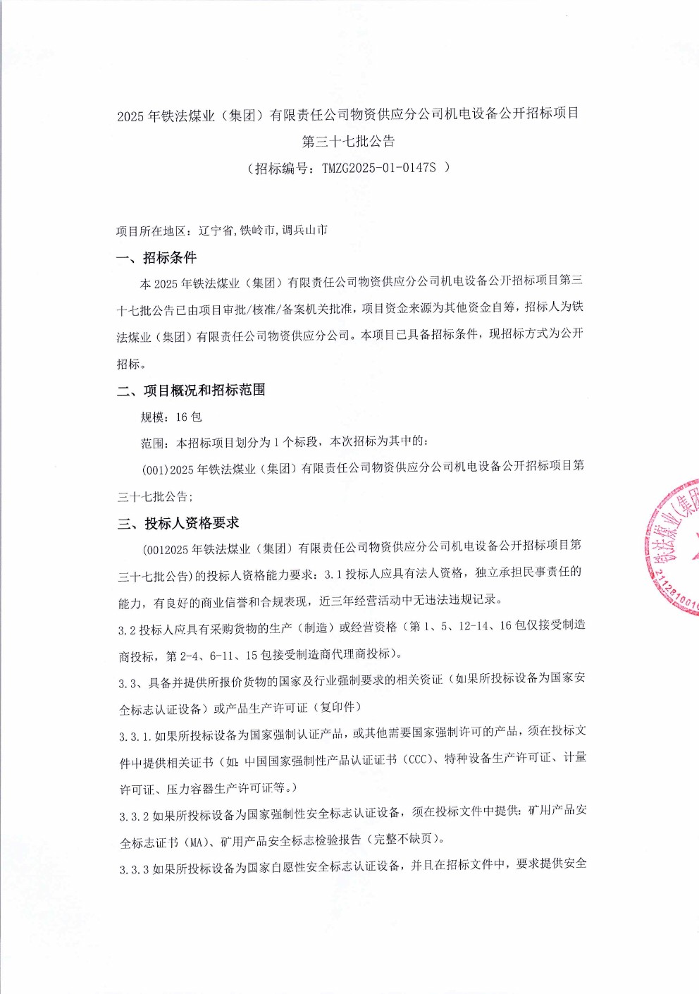 2025年12月12日设备第三十七批公开招标公告(0147S)