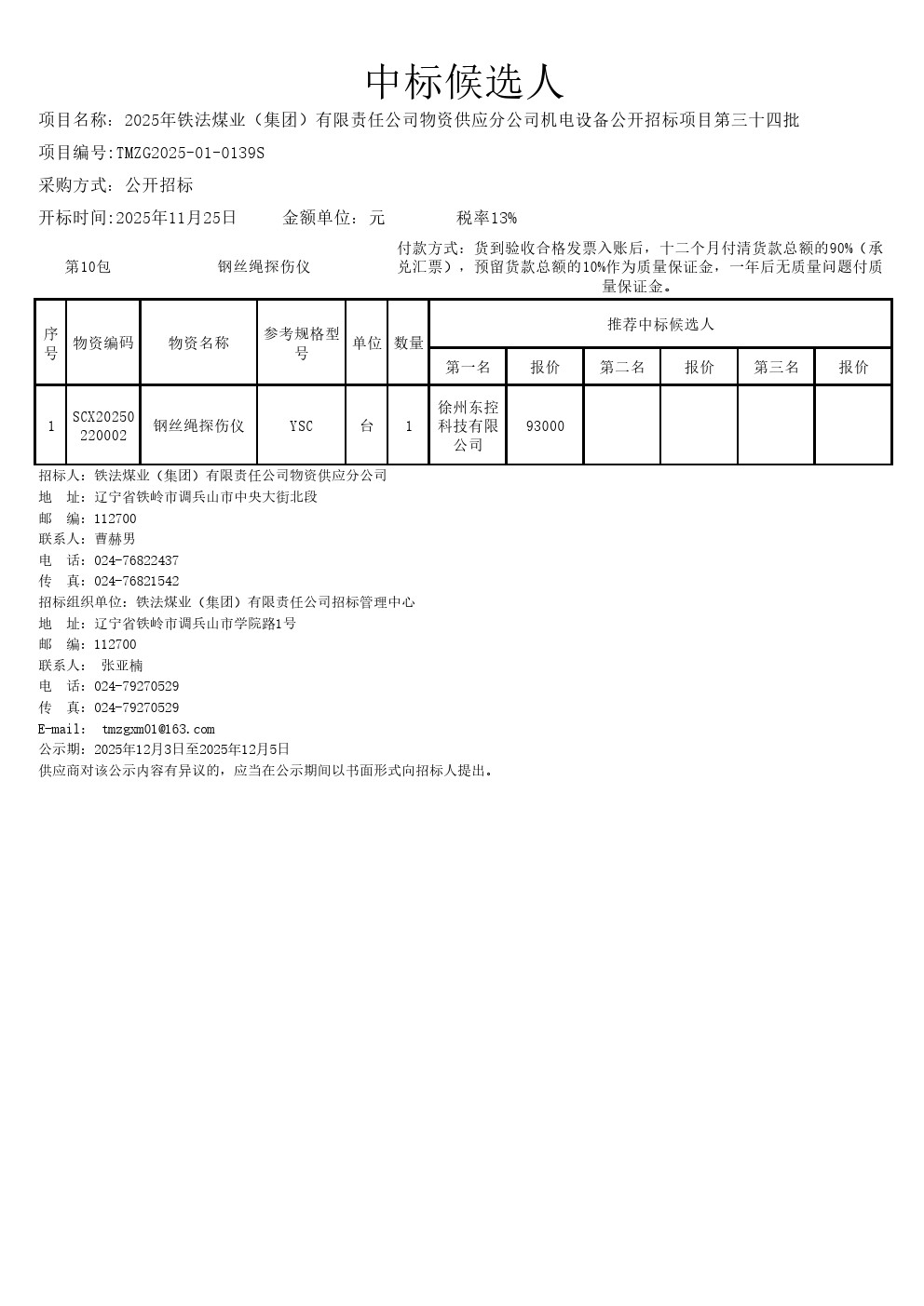 2025年11月25日机电设备公开招标中标候选人变更(0139S)