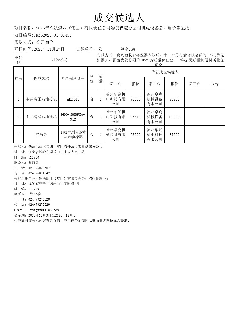 2025年11月27日机电设备公开询价成交候选人公示(0143S)-2