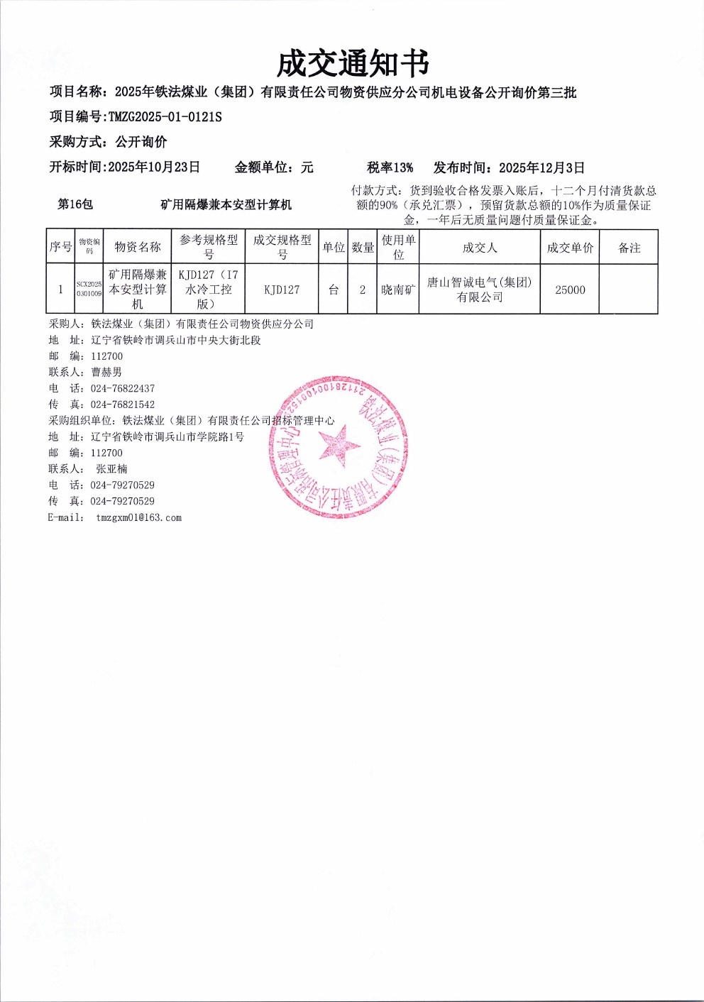 2025年10月23日机电设备公开询价成交通知书变更(0121S)