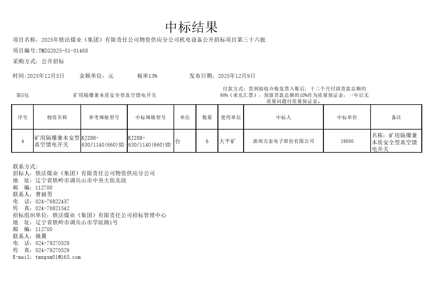 2025年12月3日设备公开招标中标结果公告(更正)(0146S)