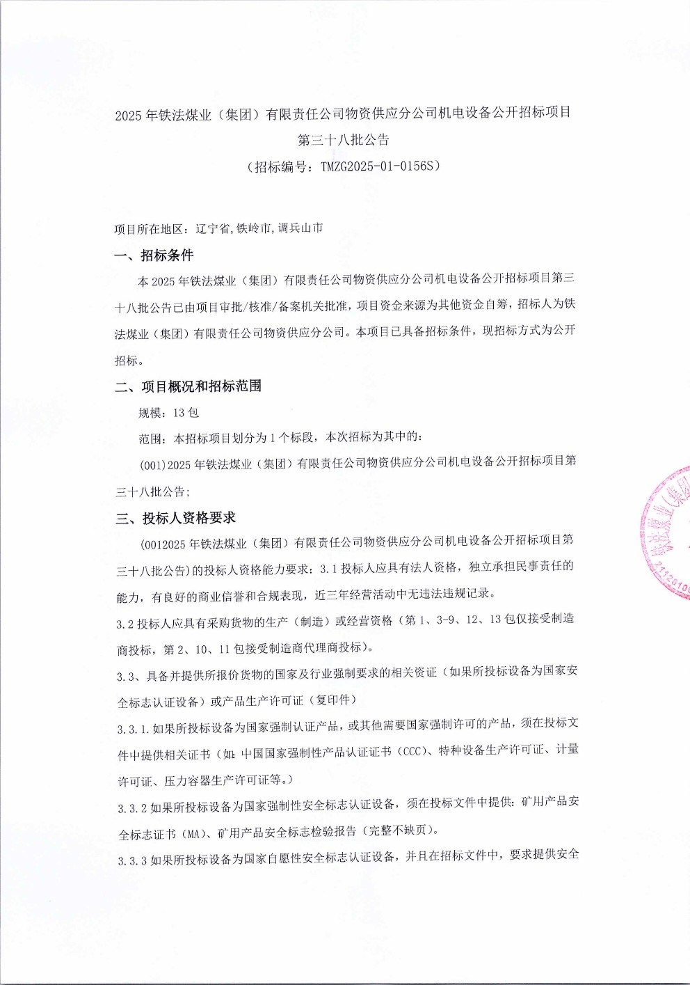 2025年12月22日设备第三十八批公开招标公告(0156S)