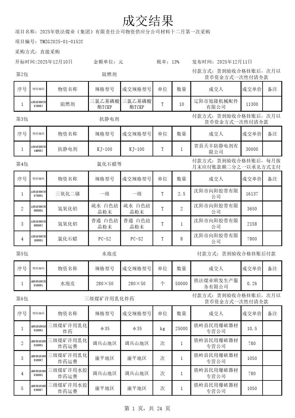 2025年12月10日材料直接采购成交结果公示(0152C)-2