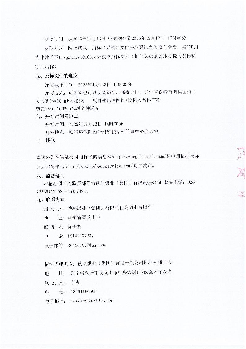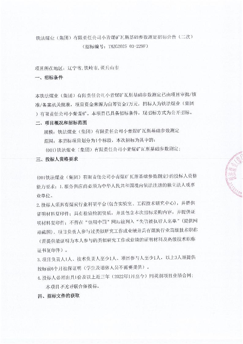 铁法煤业(集团)有限责任公司小青煤矿煤层基础参数测定招标公告(二次)