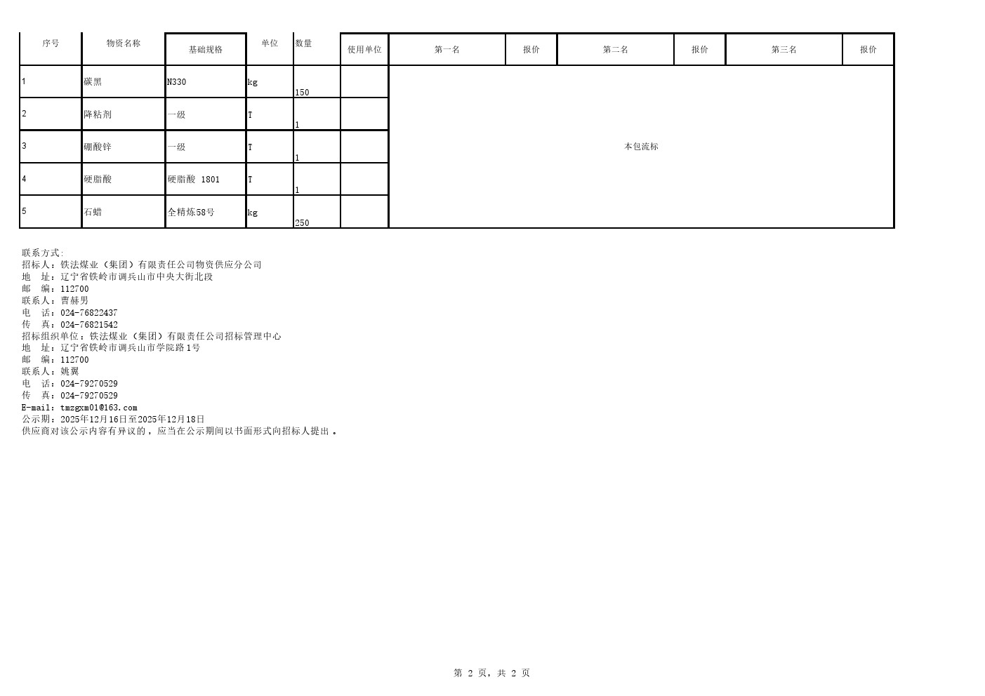 物资招标一科 电话、传真:024-79270529 邮箱:tmzgxm01@163.com 物资招标二科 电话、传真:024-79270522 邮箱:tmzgxm02@163.com 工程服务招标科 电话、传真:024-79270521 邮箱:tmzgxm03@163.com