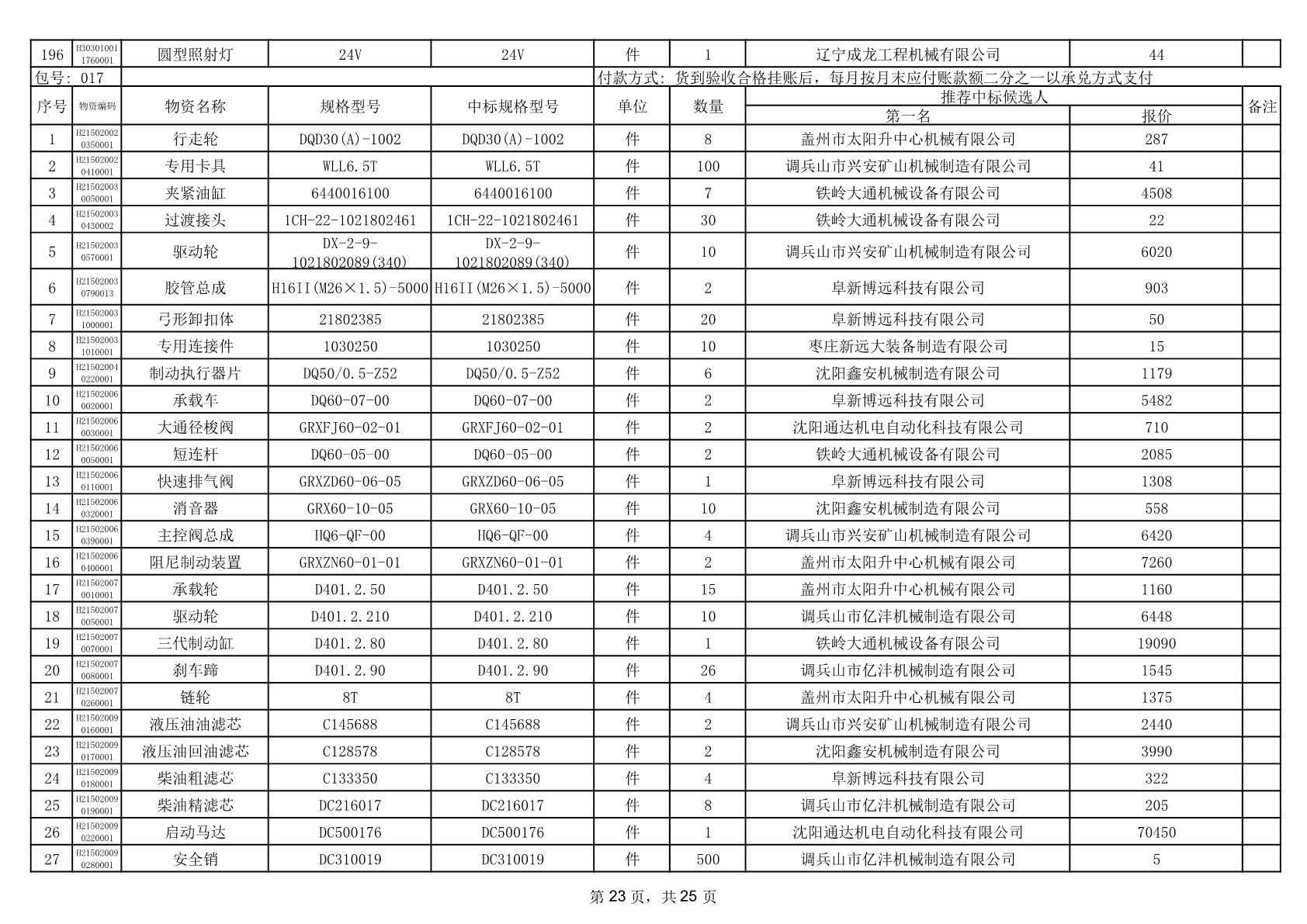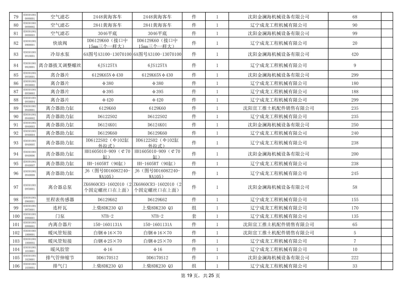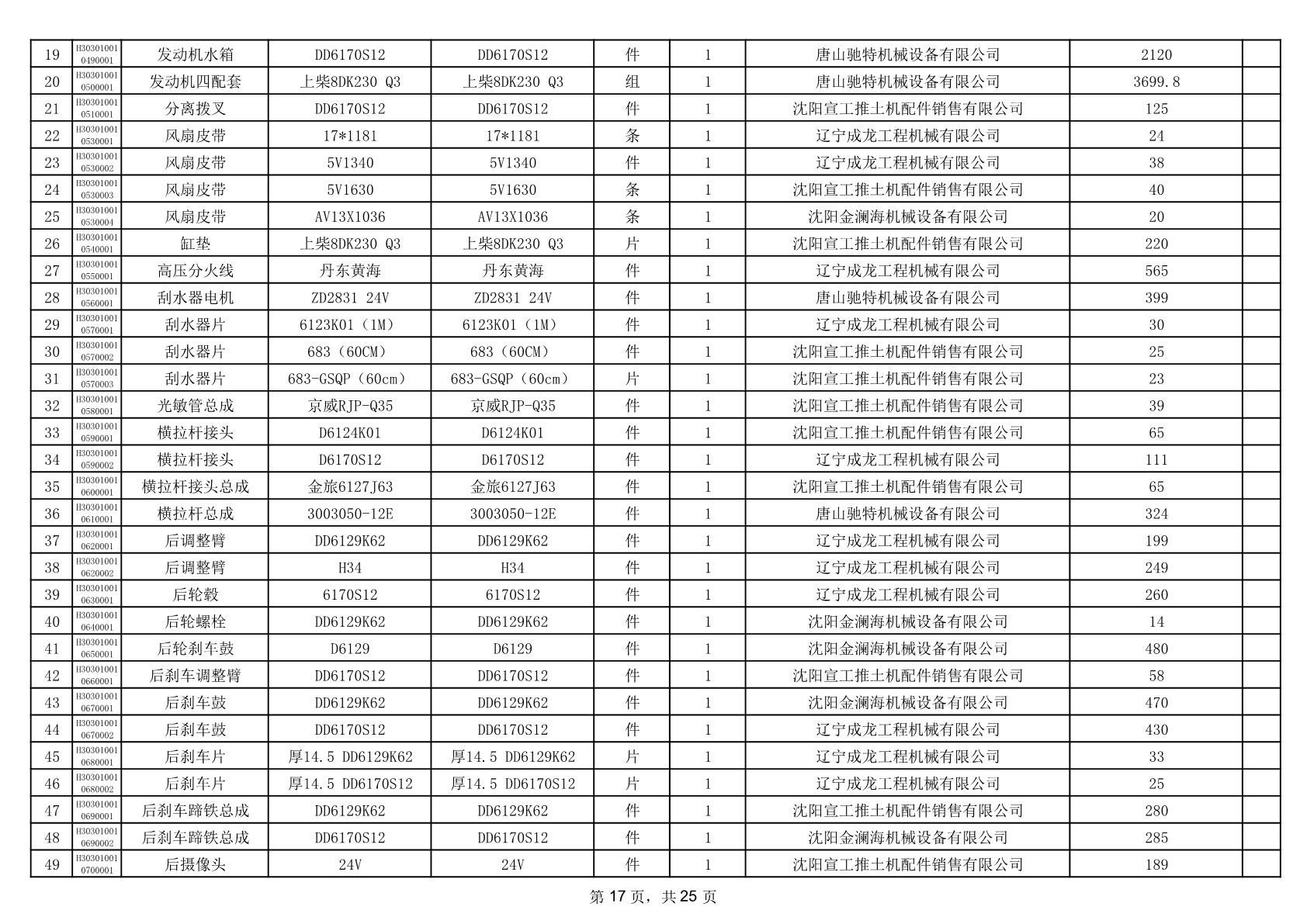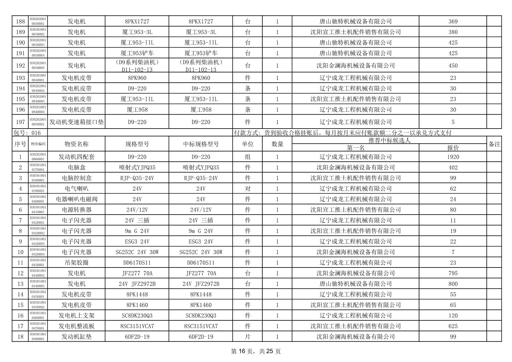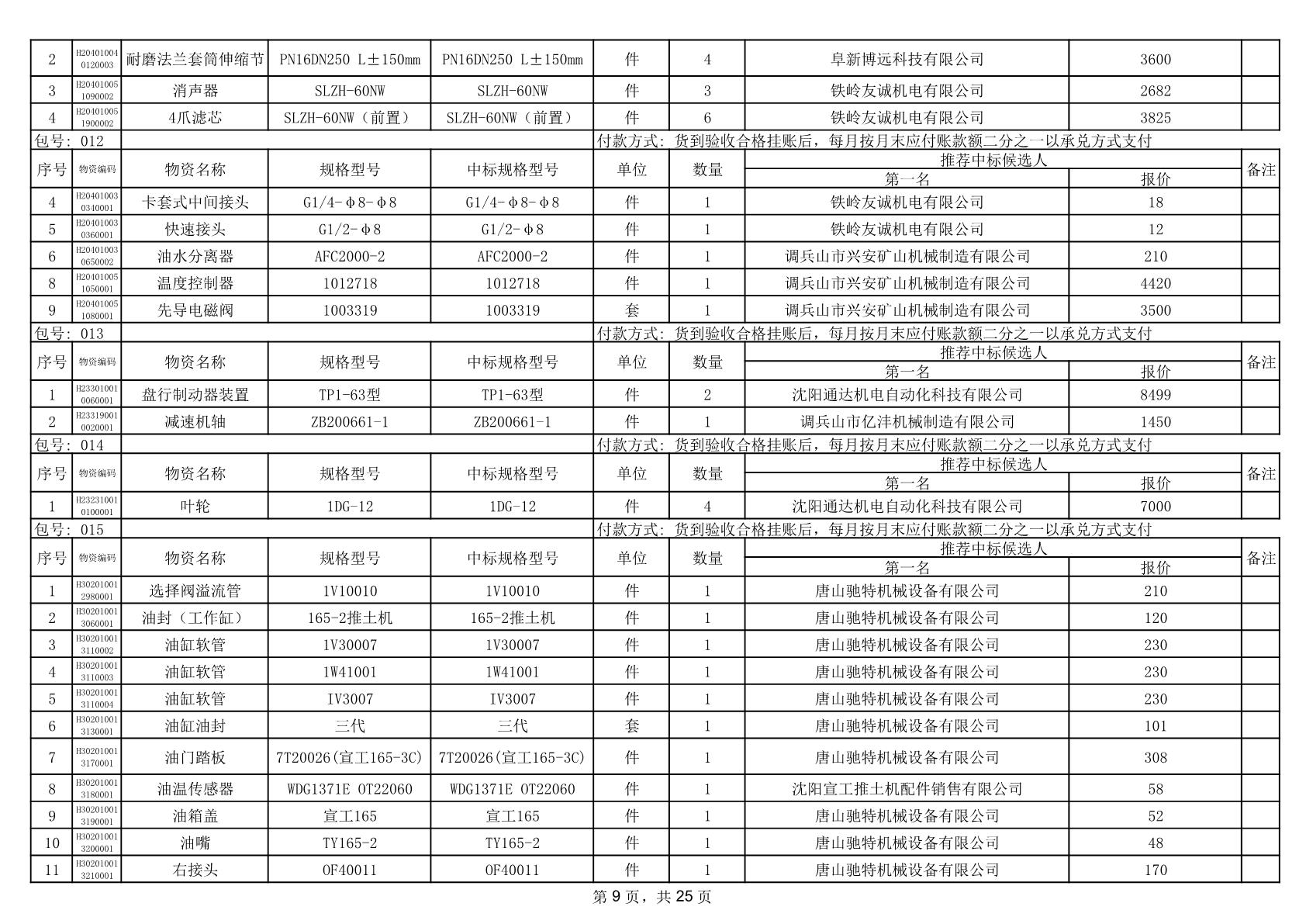 2025年12月9日配件中标结果公告(0079P)