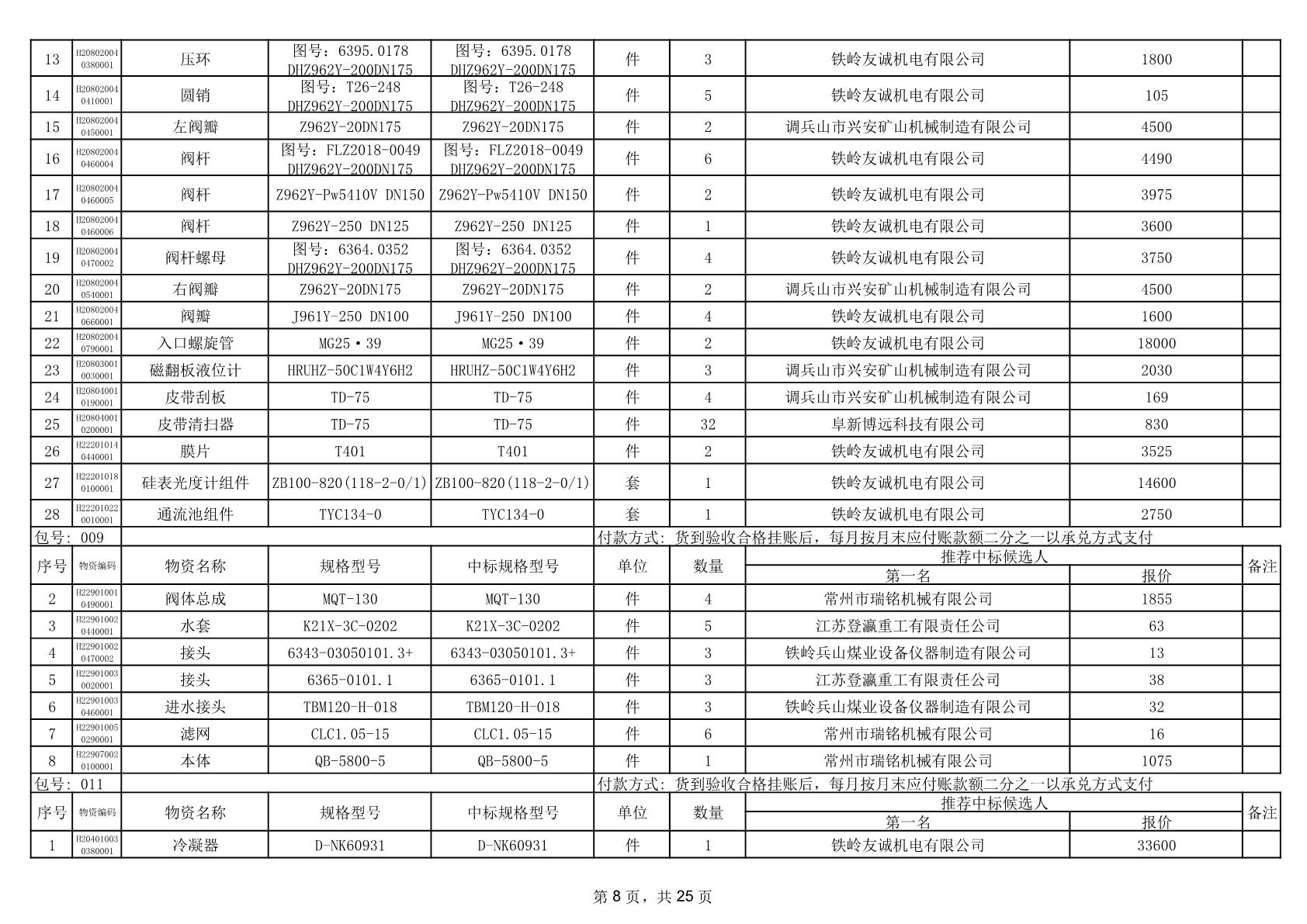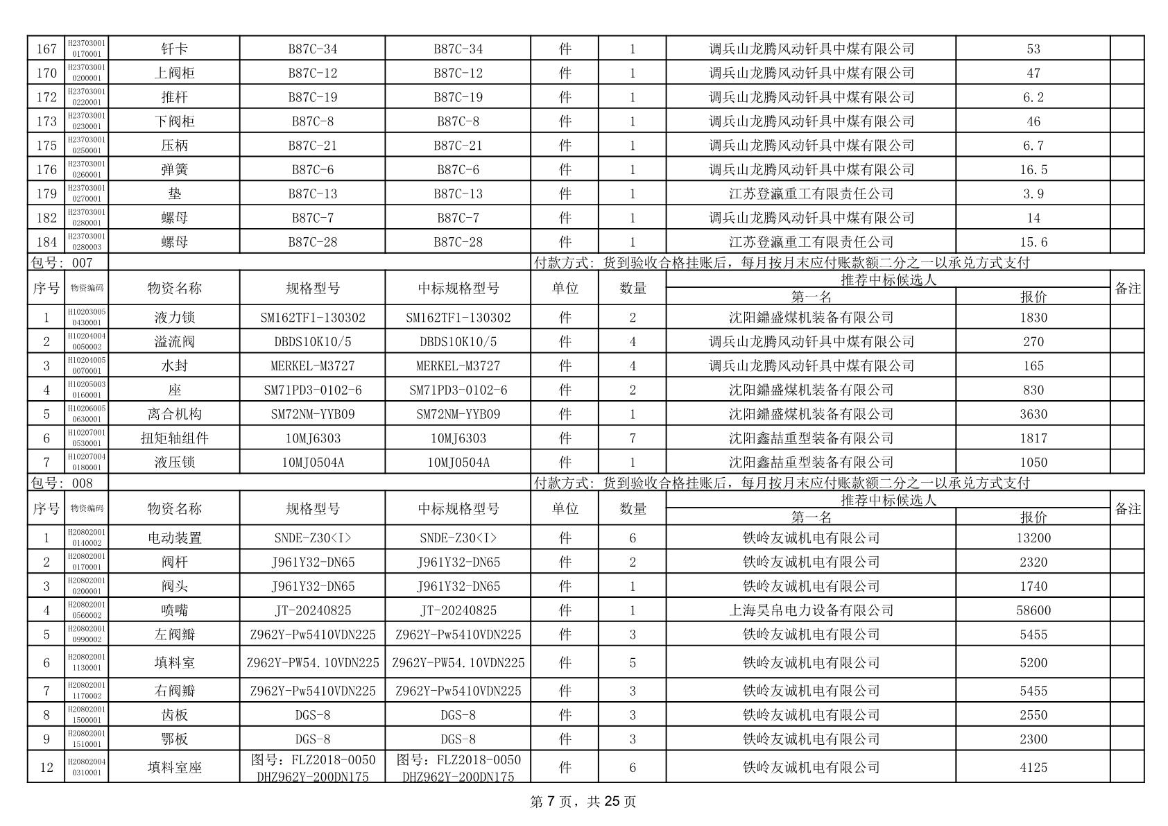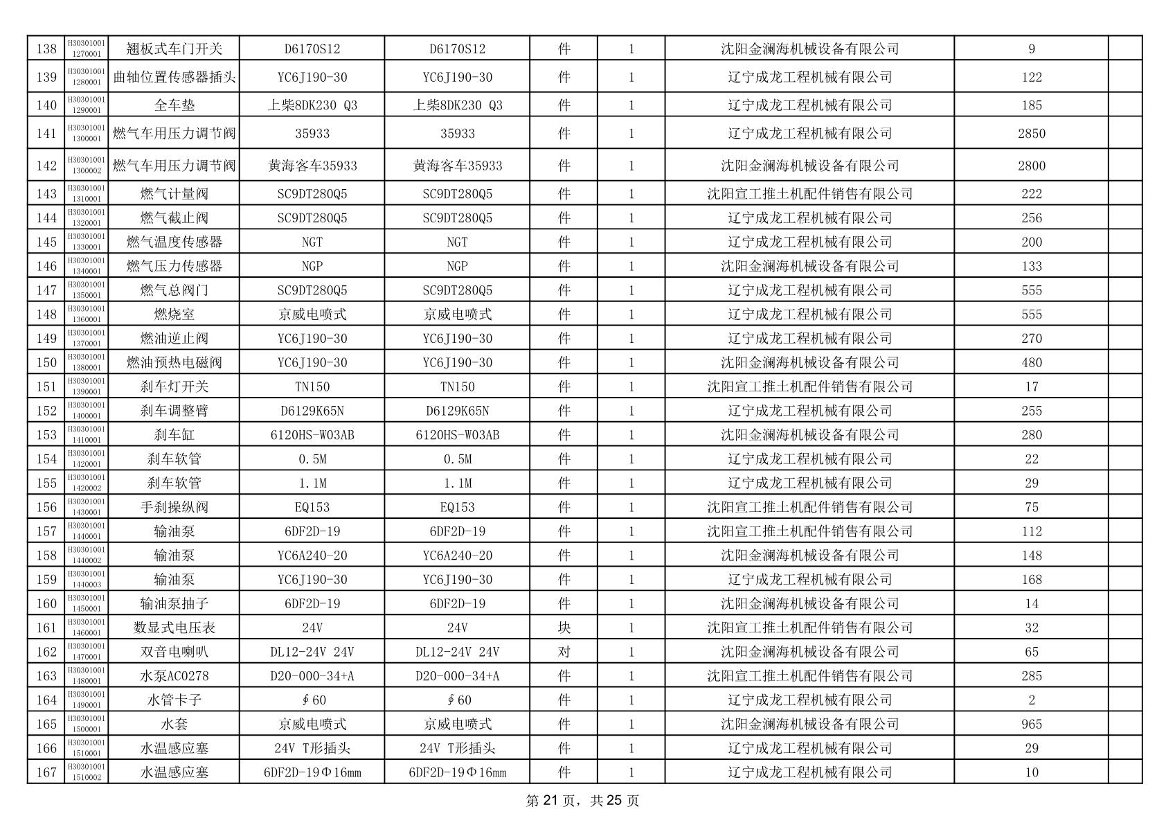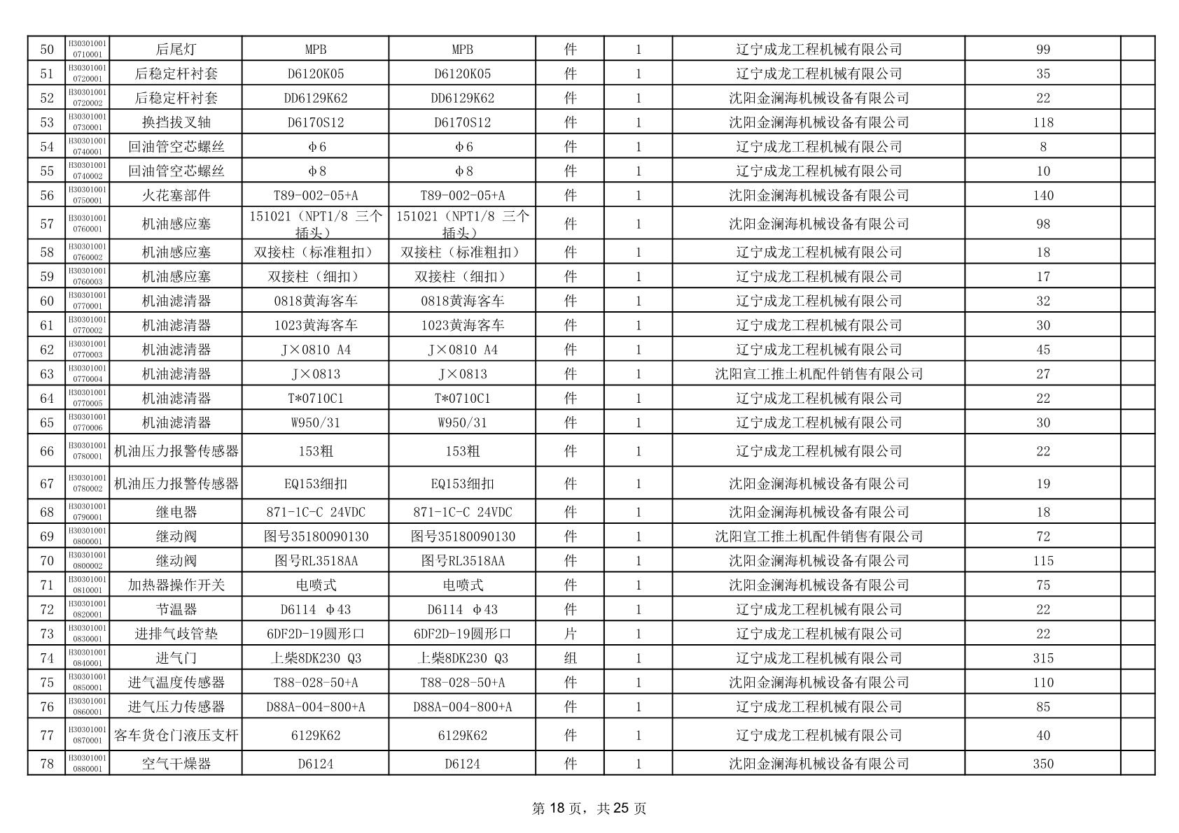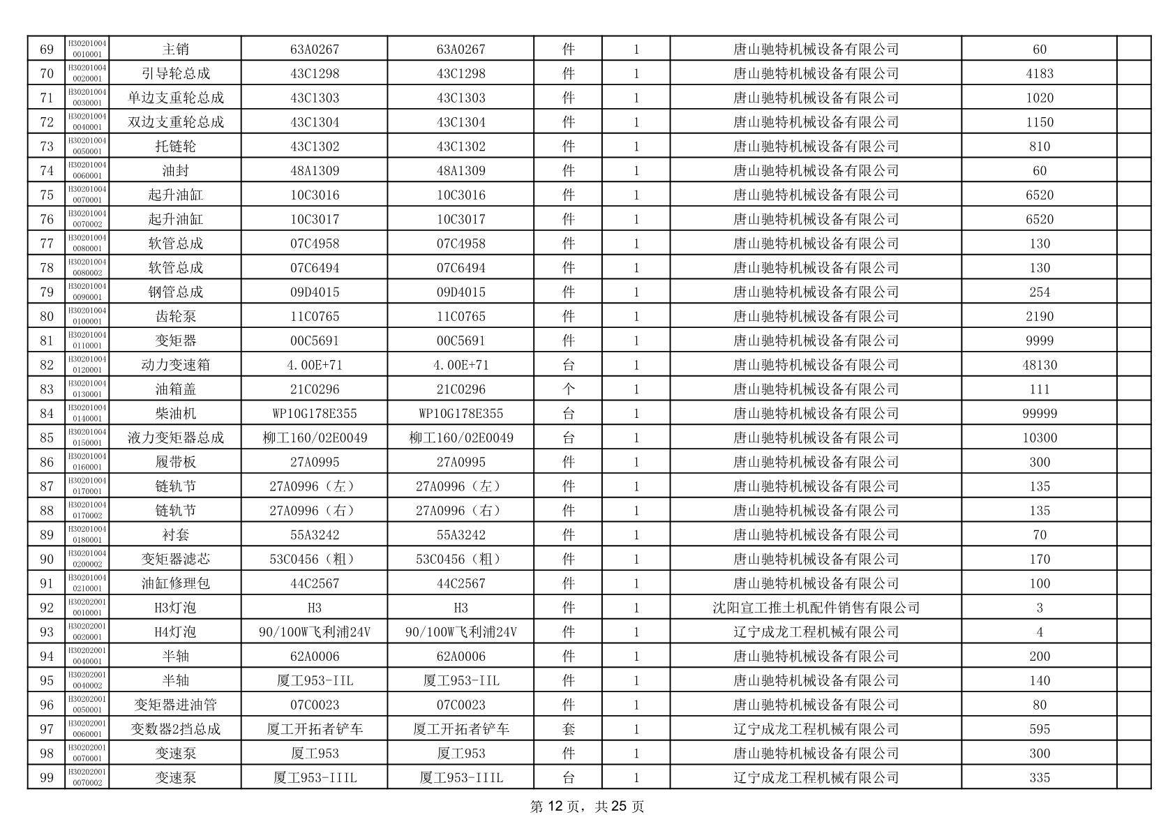 2025年12月9日配件中标结果公告(0079P)