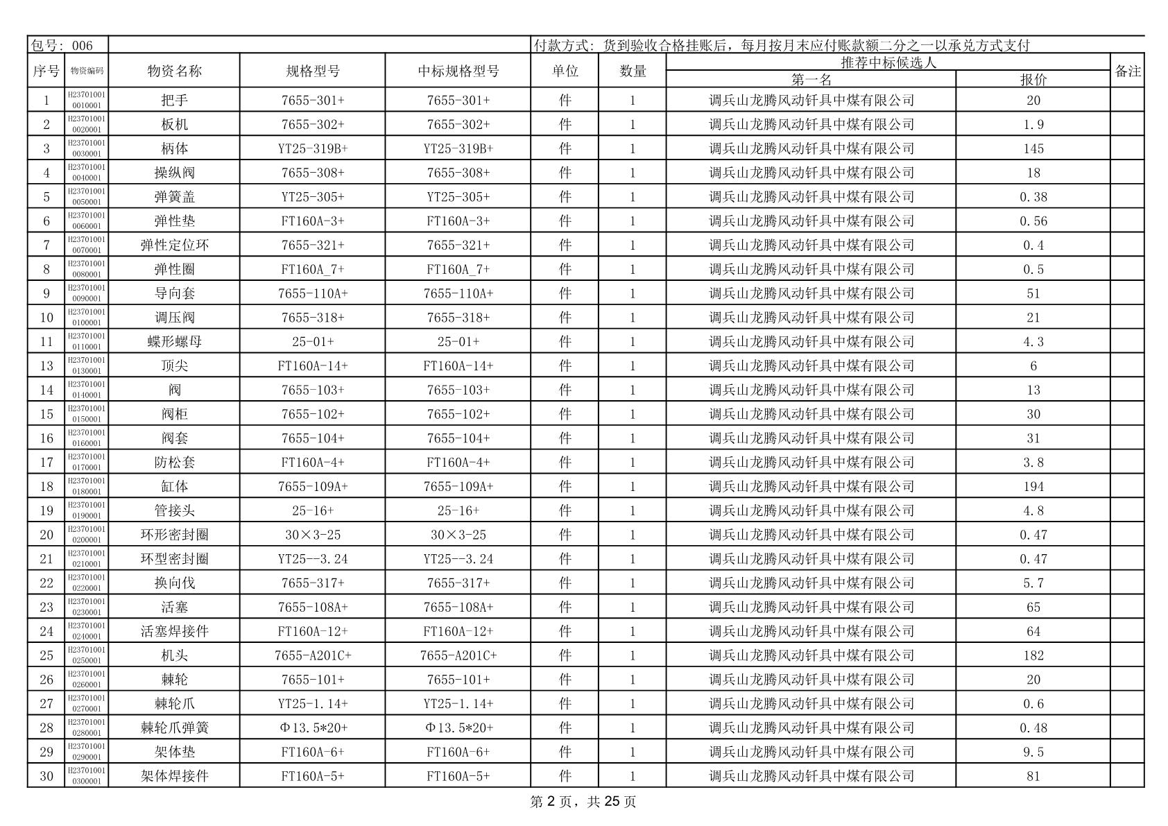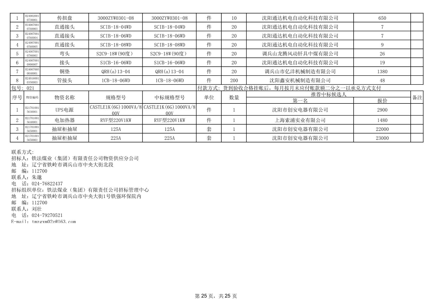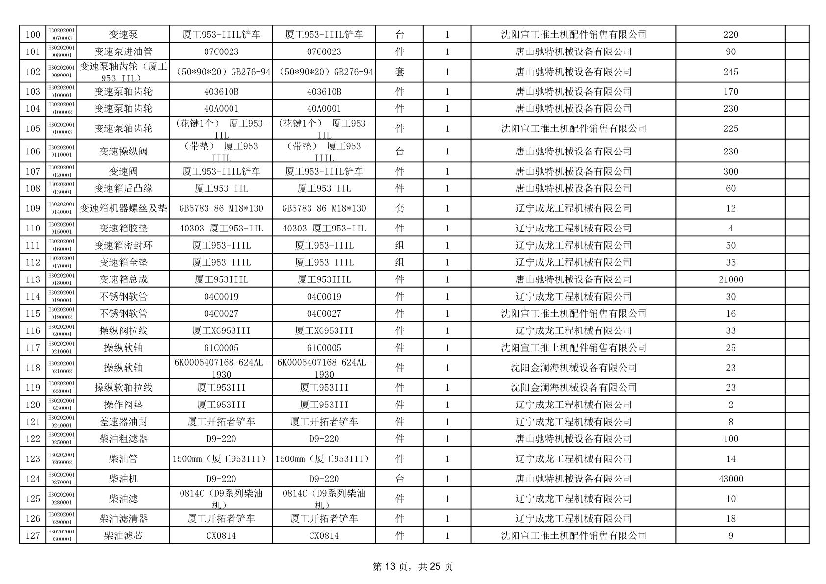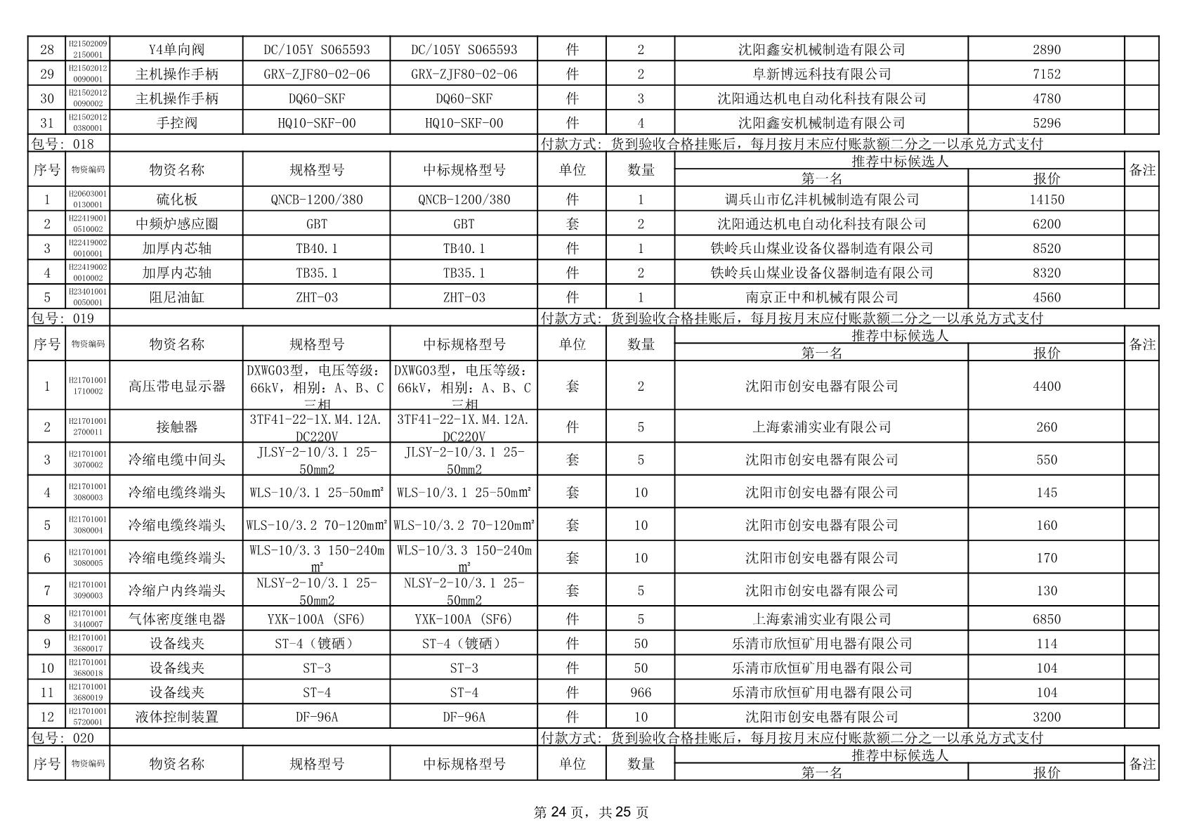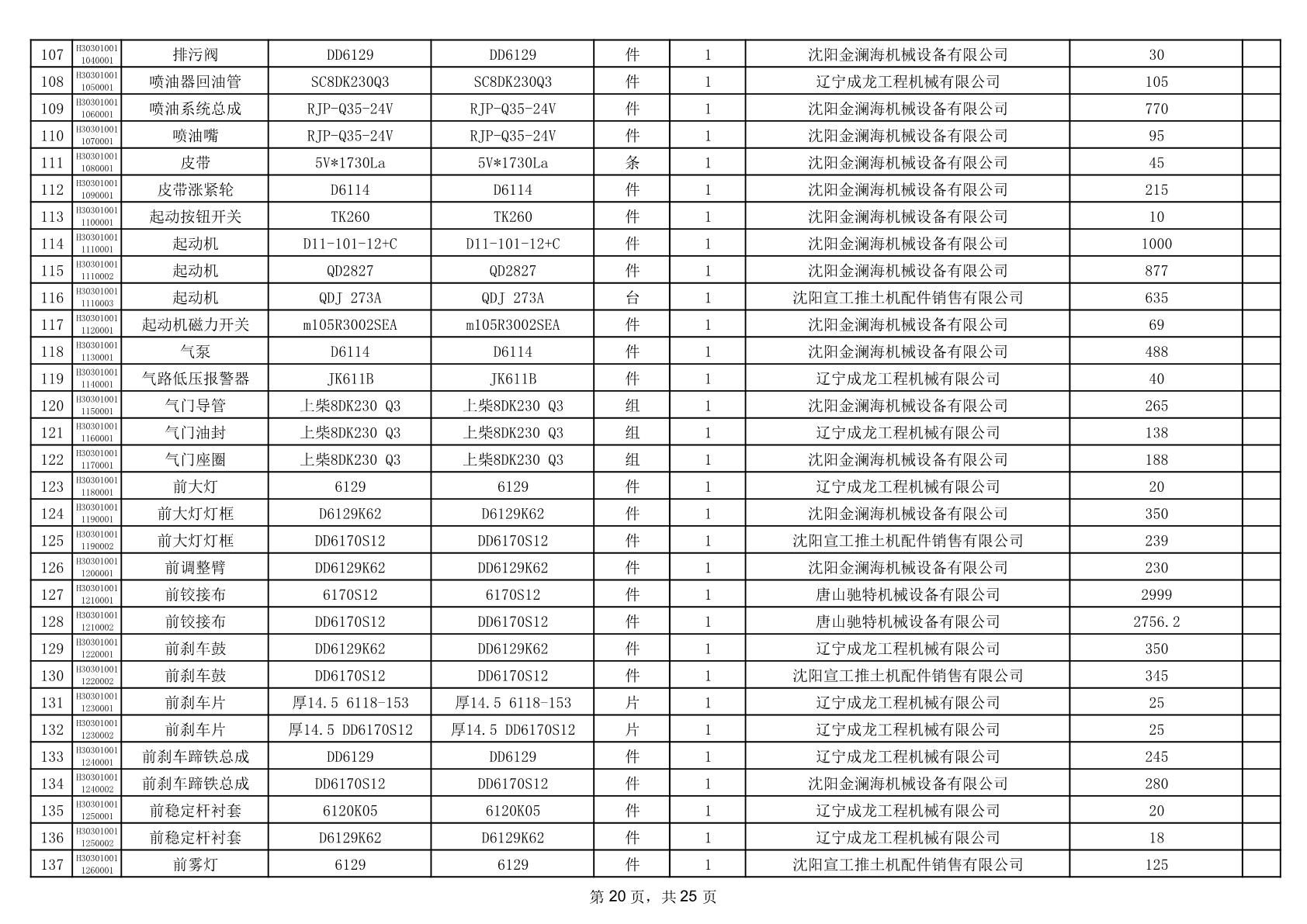 2025年12月9日配件中标结果公告(0079P)