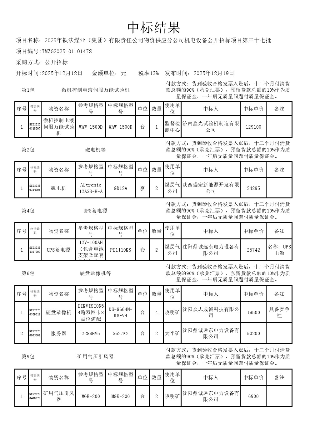 2025年12月12日机电设备公开招标中标结果公示(0147S)-1