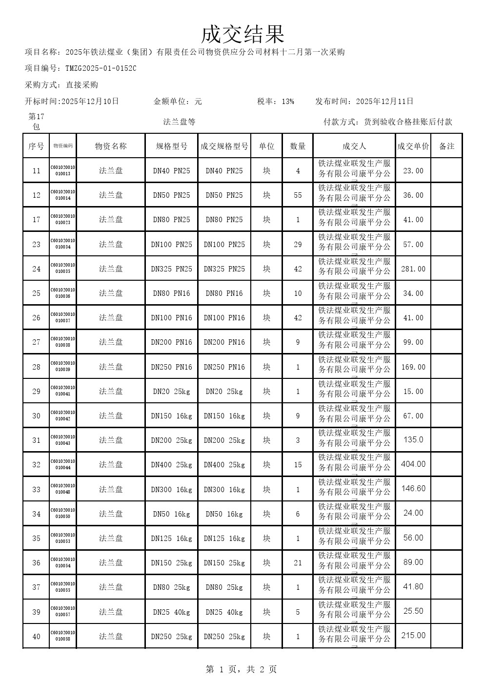2025年12月10日材料直接采购成交结果公示(0152C)