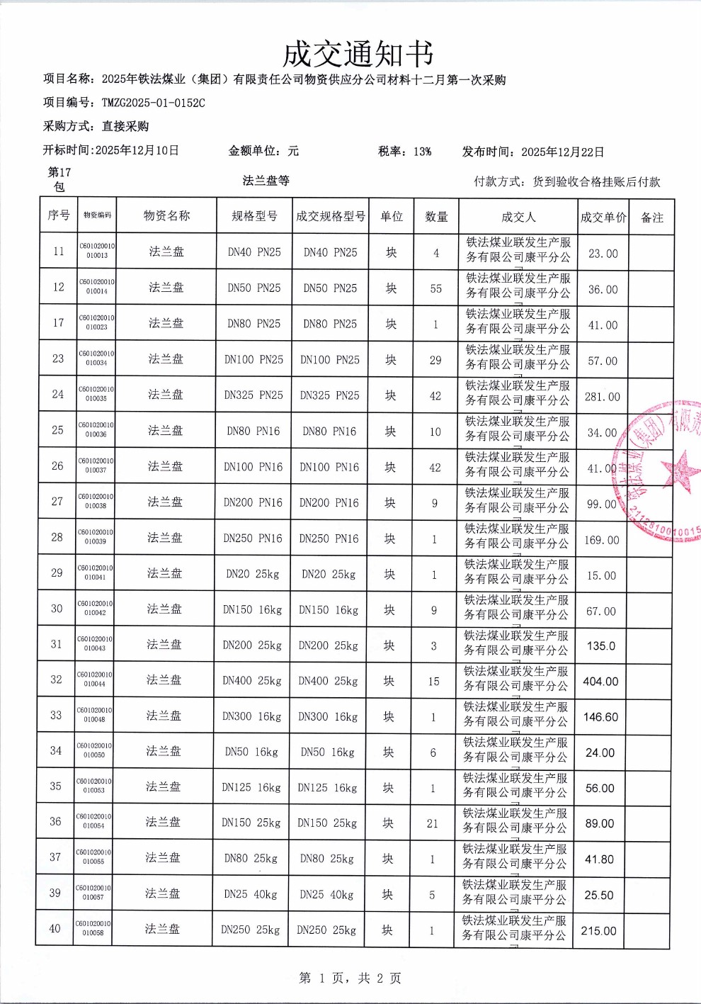 2025年12月10日材料直接采购成交通知书公示(0152C)-2