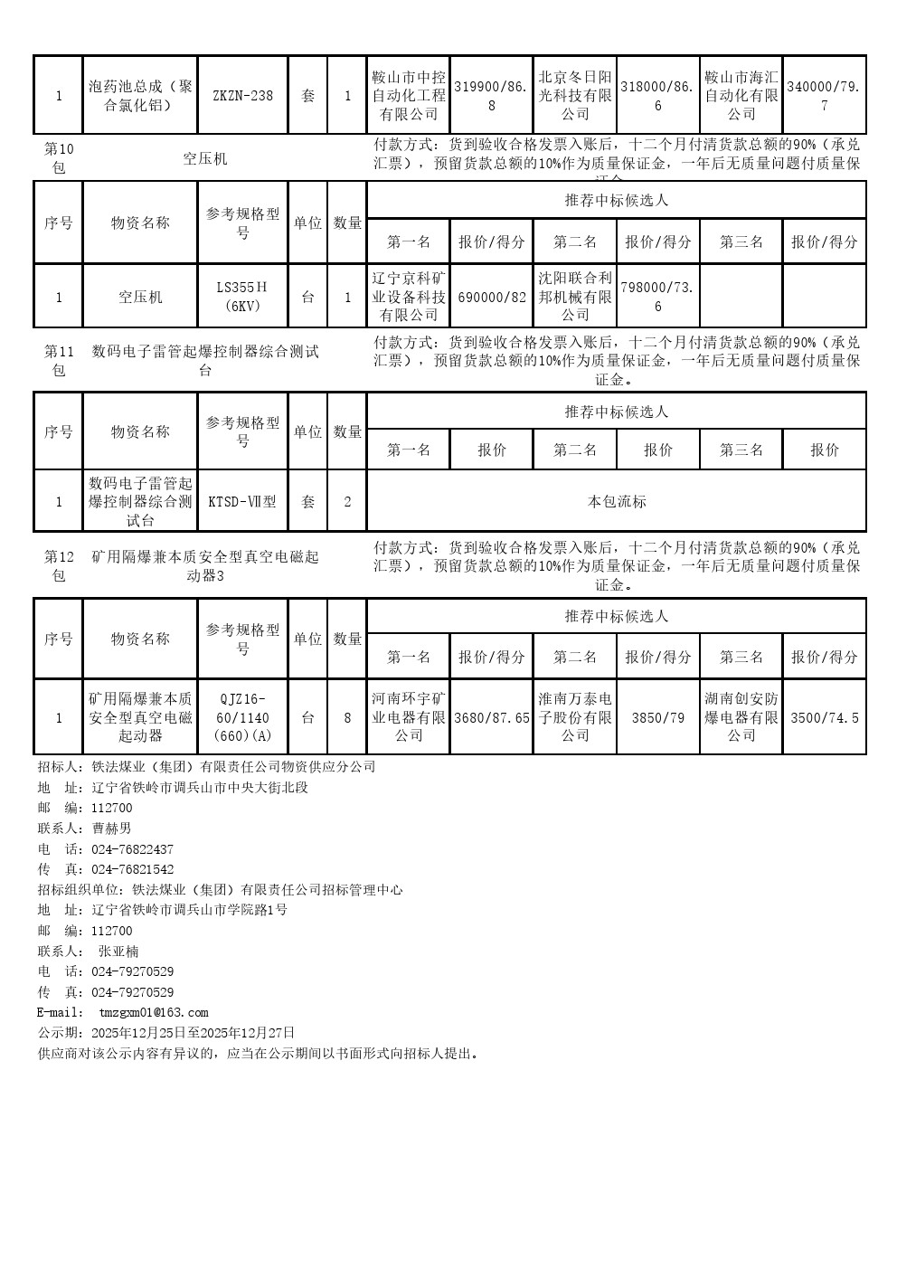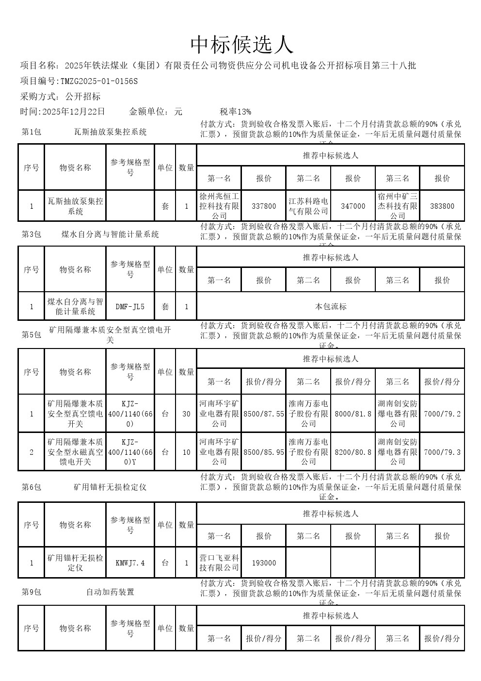 2025年12月22日机电设备公开招标中标候选人(0156S)